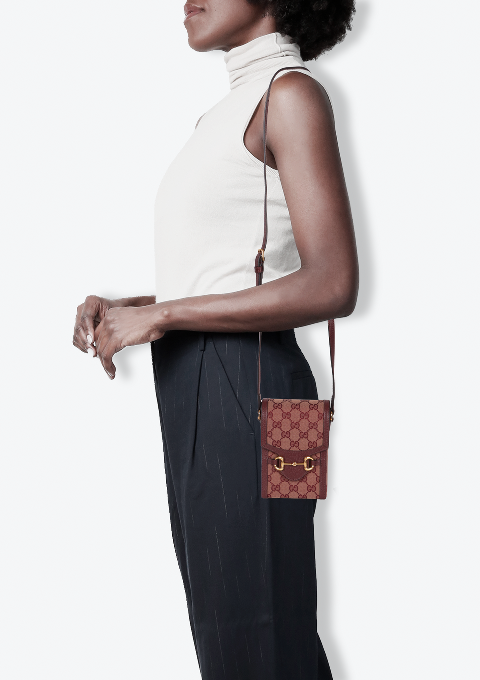 Descrição do Material: Canvas GG Supreme bordô com detalhes em couro calfskin bordô