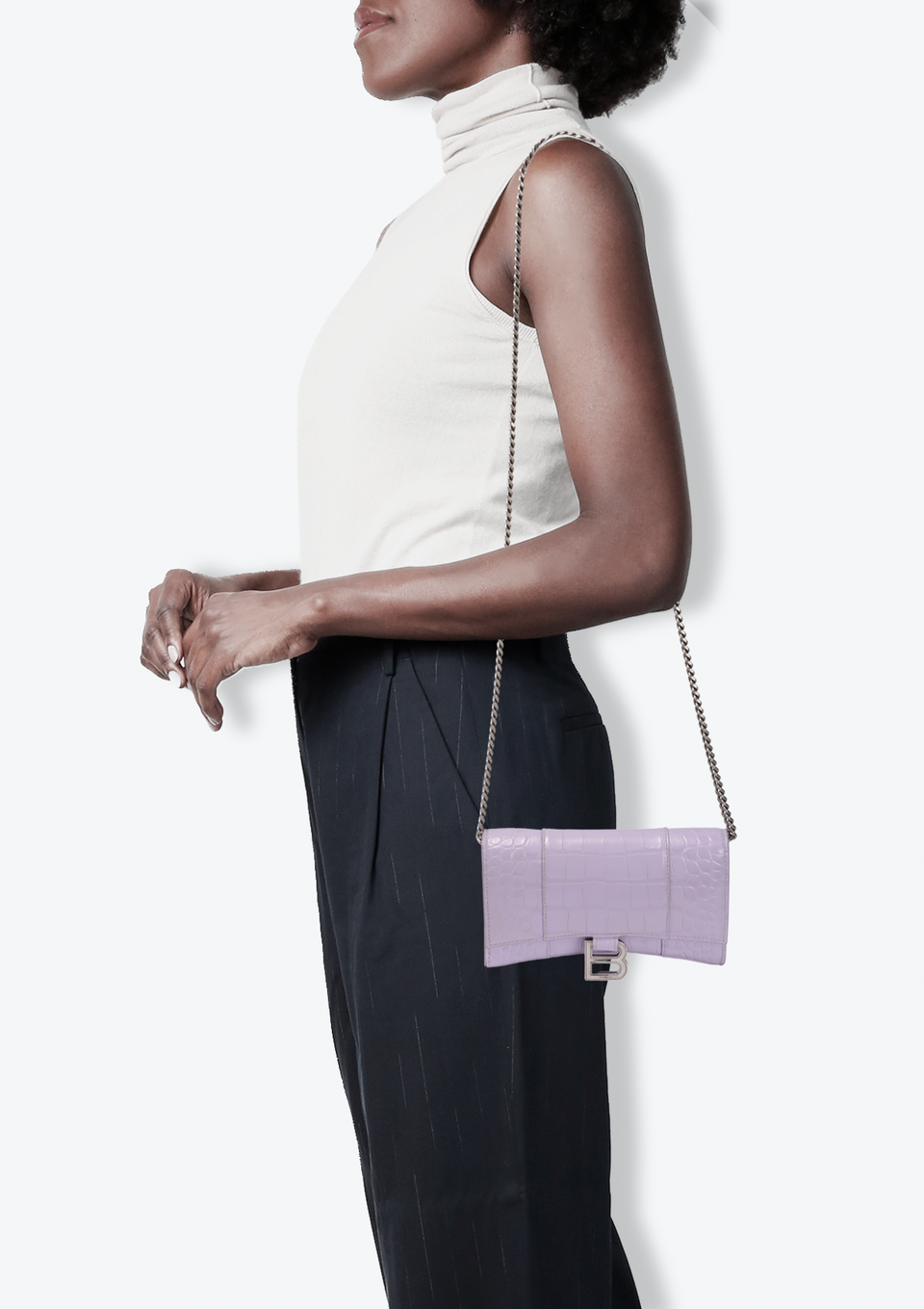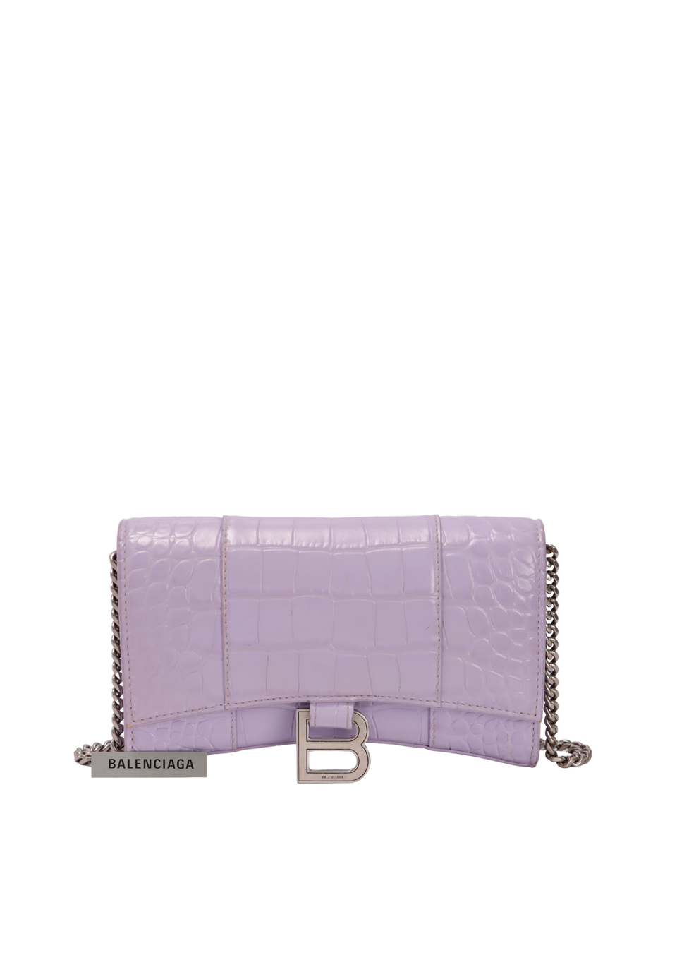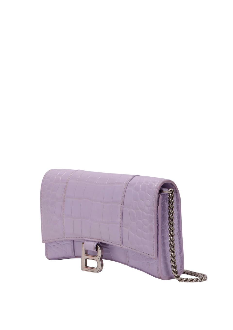 HOURGLASS WALLET ON CHAIN CROCODILE EMBOSSED