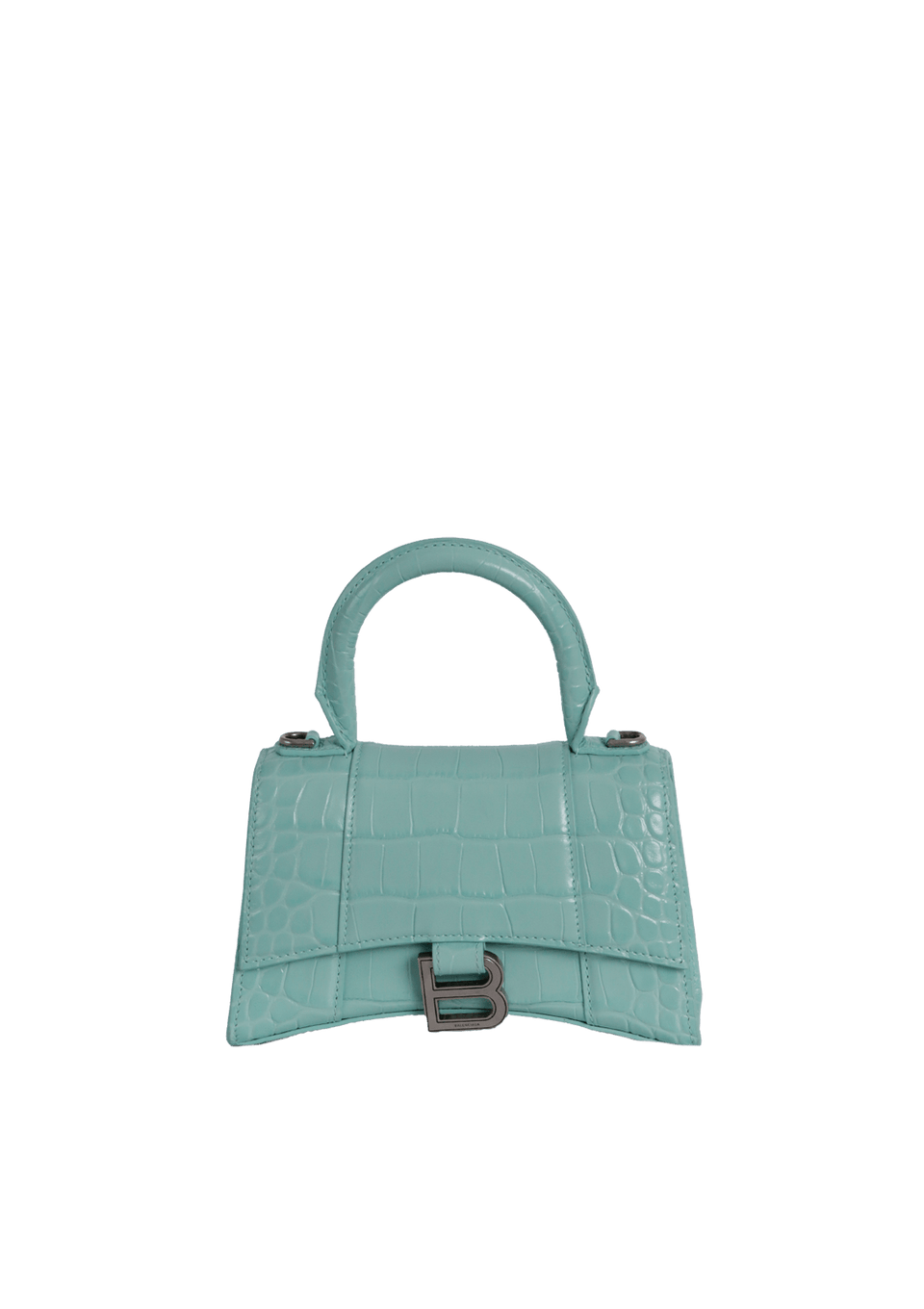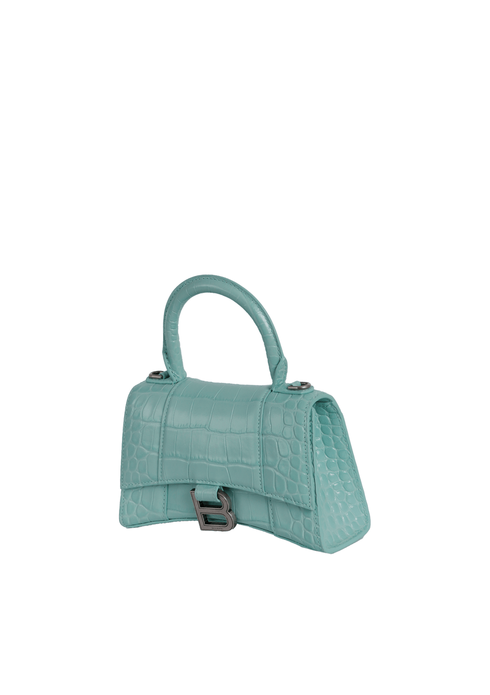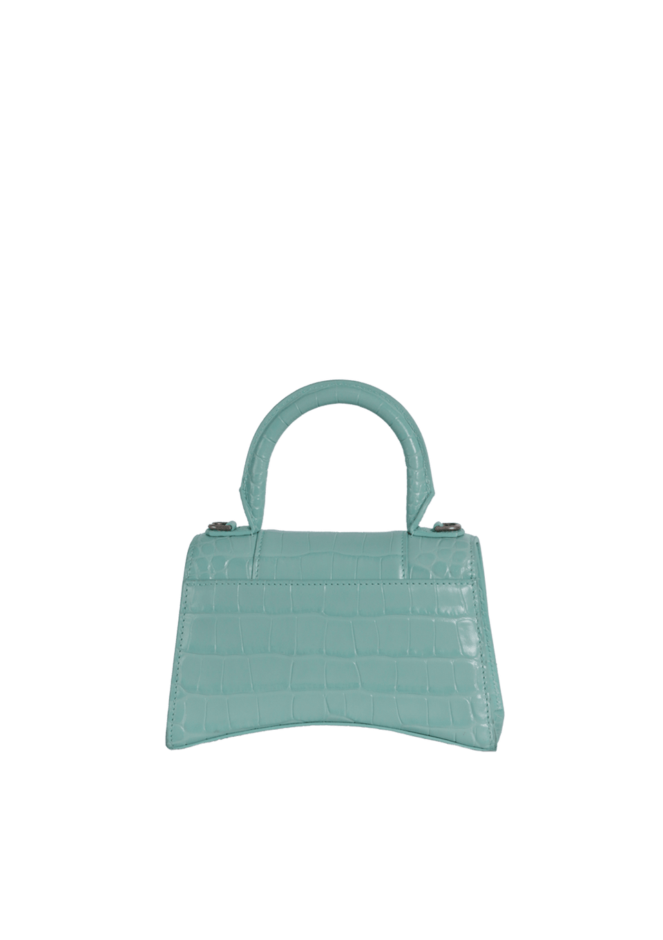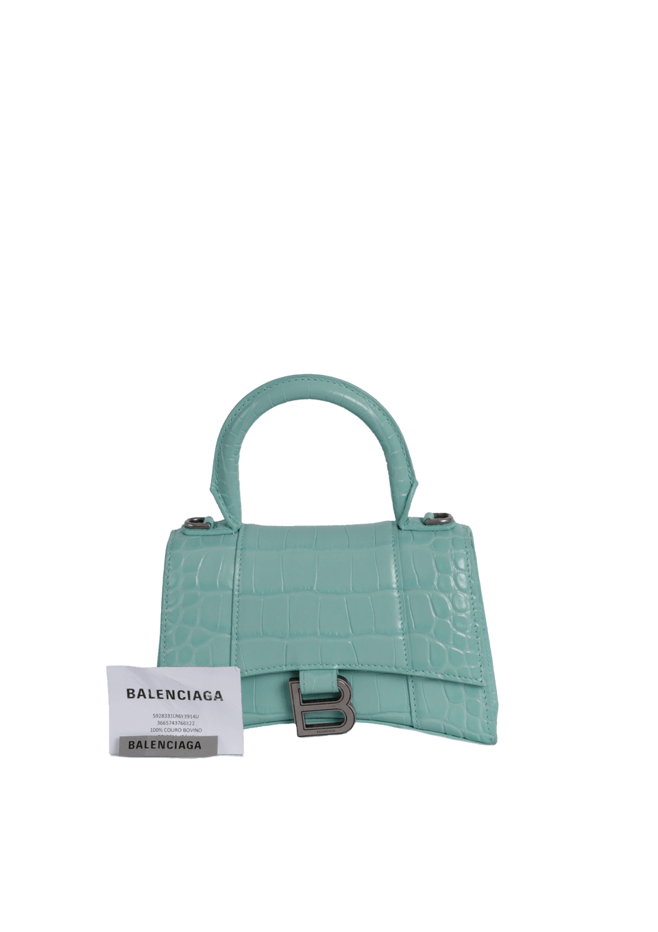 - Couro calfskin verde com acabamento de textura de pele de crocodilo;