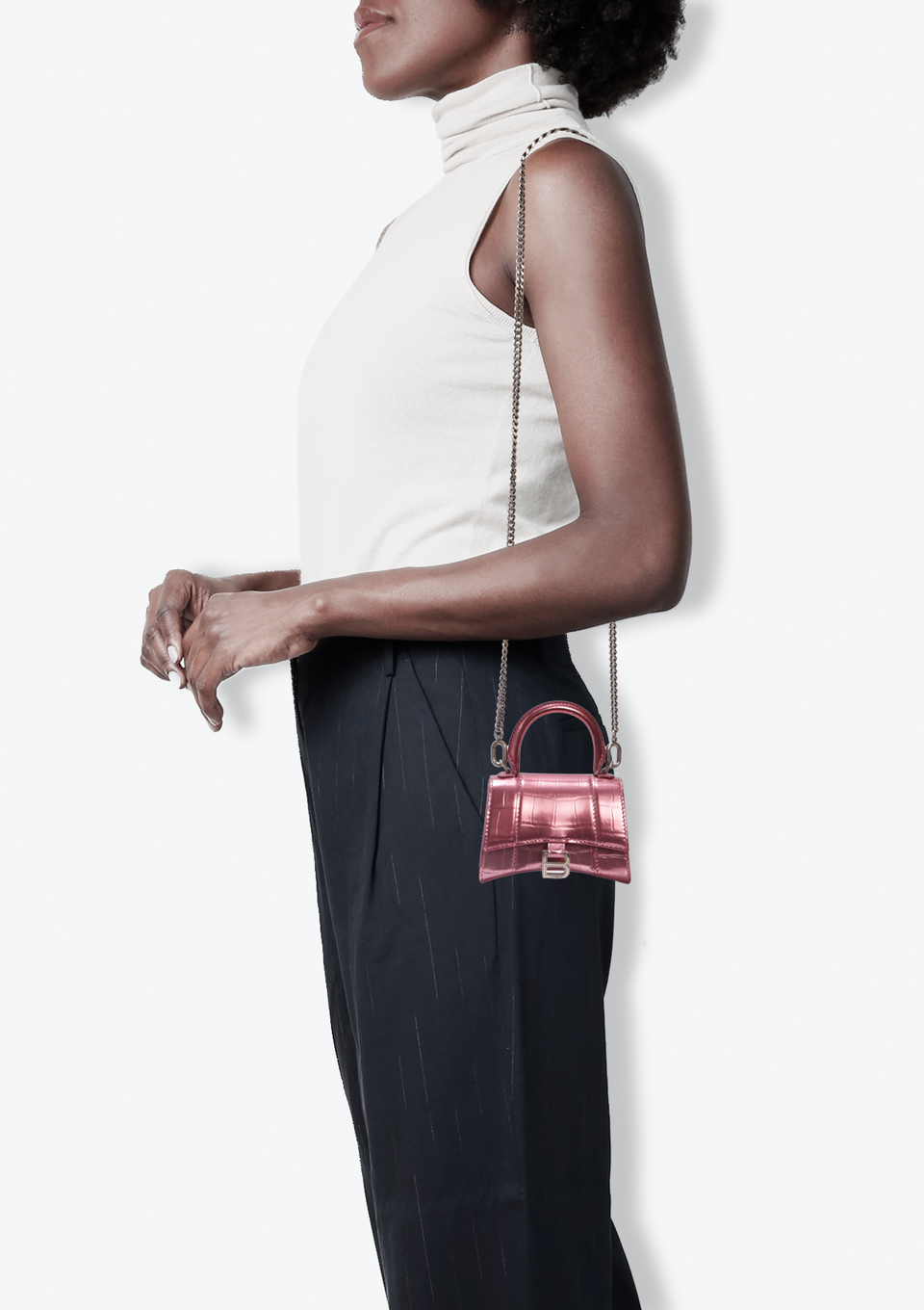 Descrição do Material: Couro calfskin rosa com acabamento Embossed;