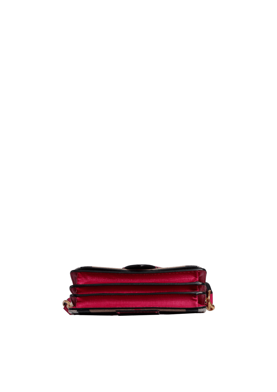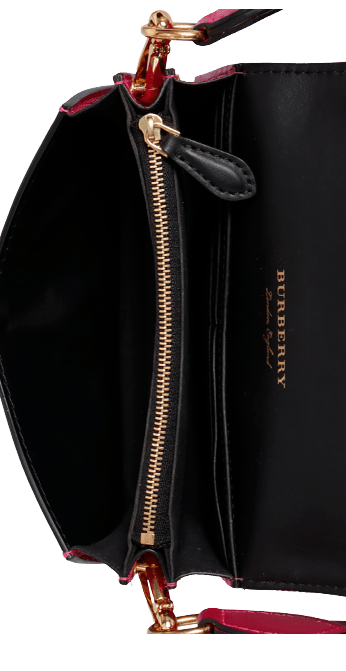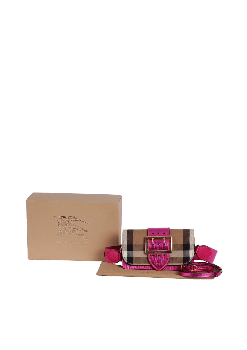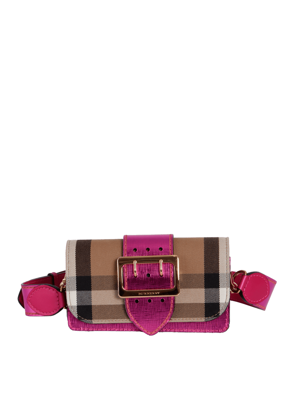 - Canvas House Check com detalhes em couro calfskin rosa metalizado com acabamento Embossed;