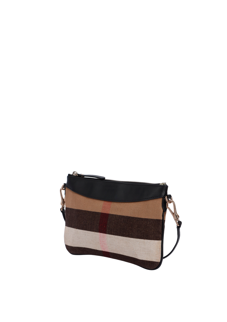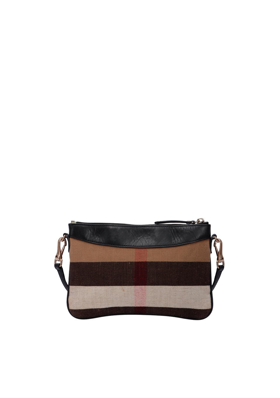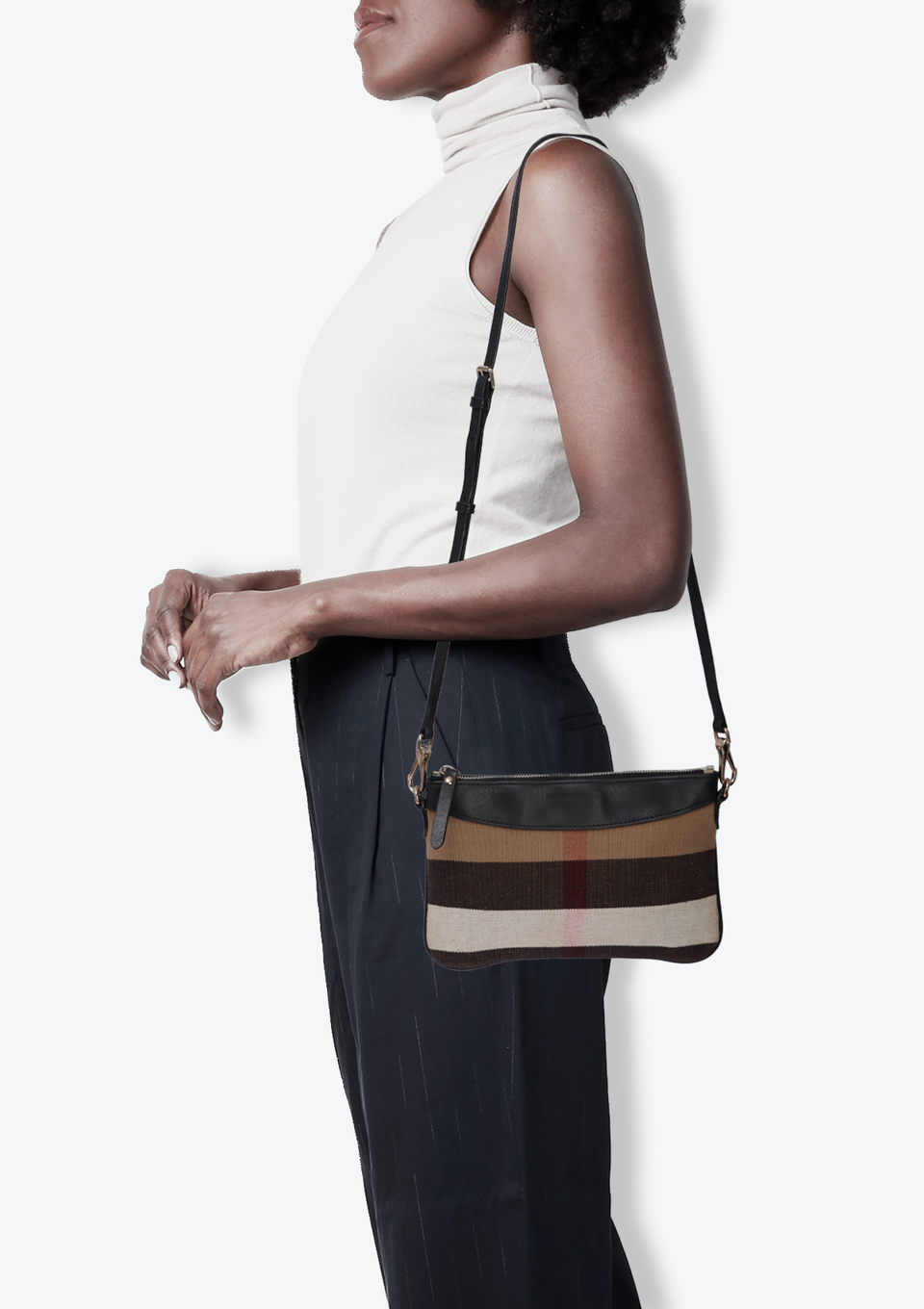 Descrição do Material: Canvas Haymarket Check com detalhes em couro calfskin preto