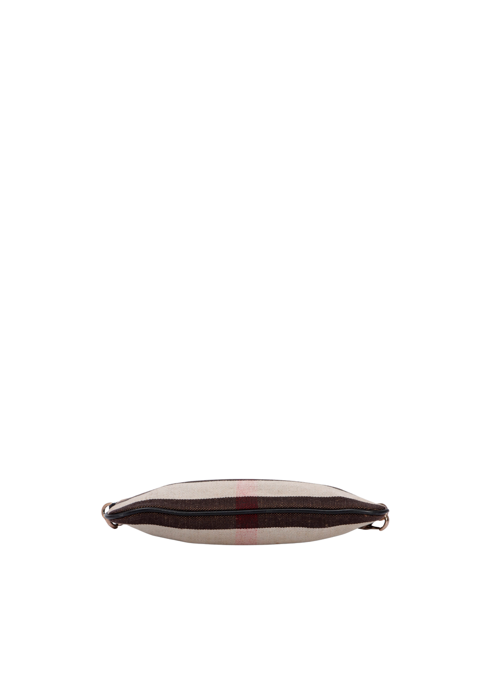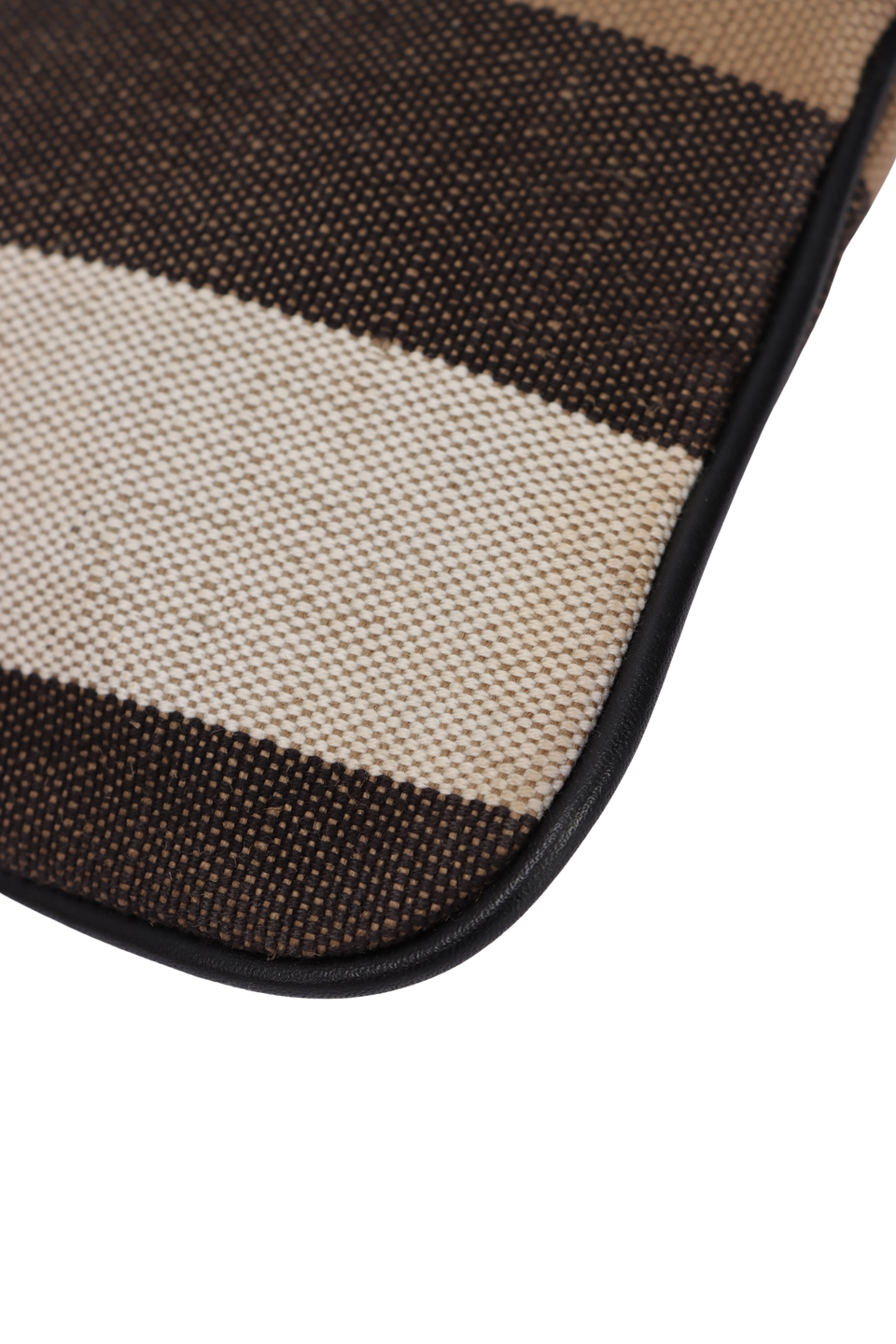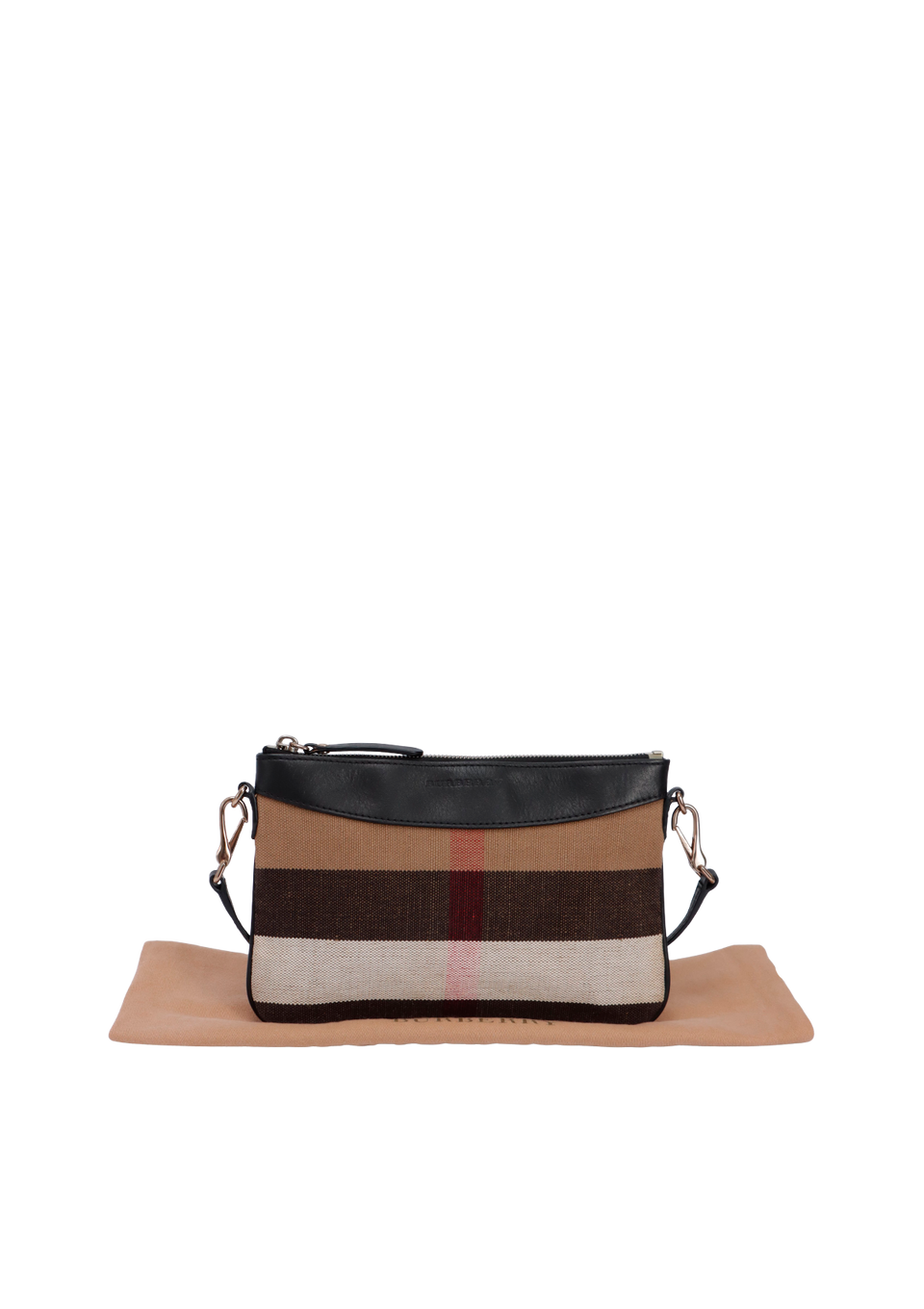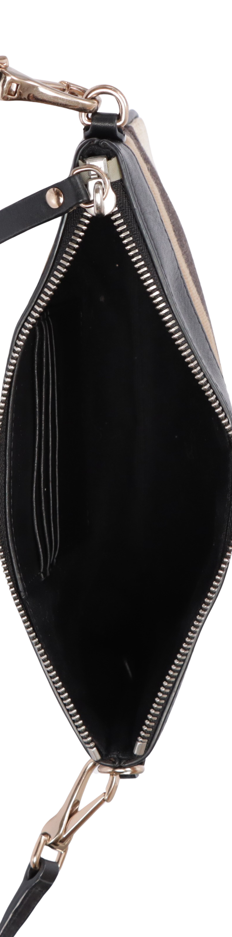 Descrição do Material: Canvas Haymarket Check com detalhes em couro calfskin preto