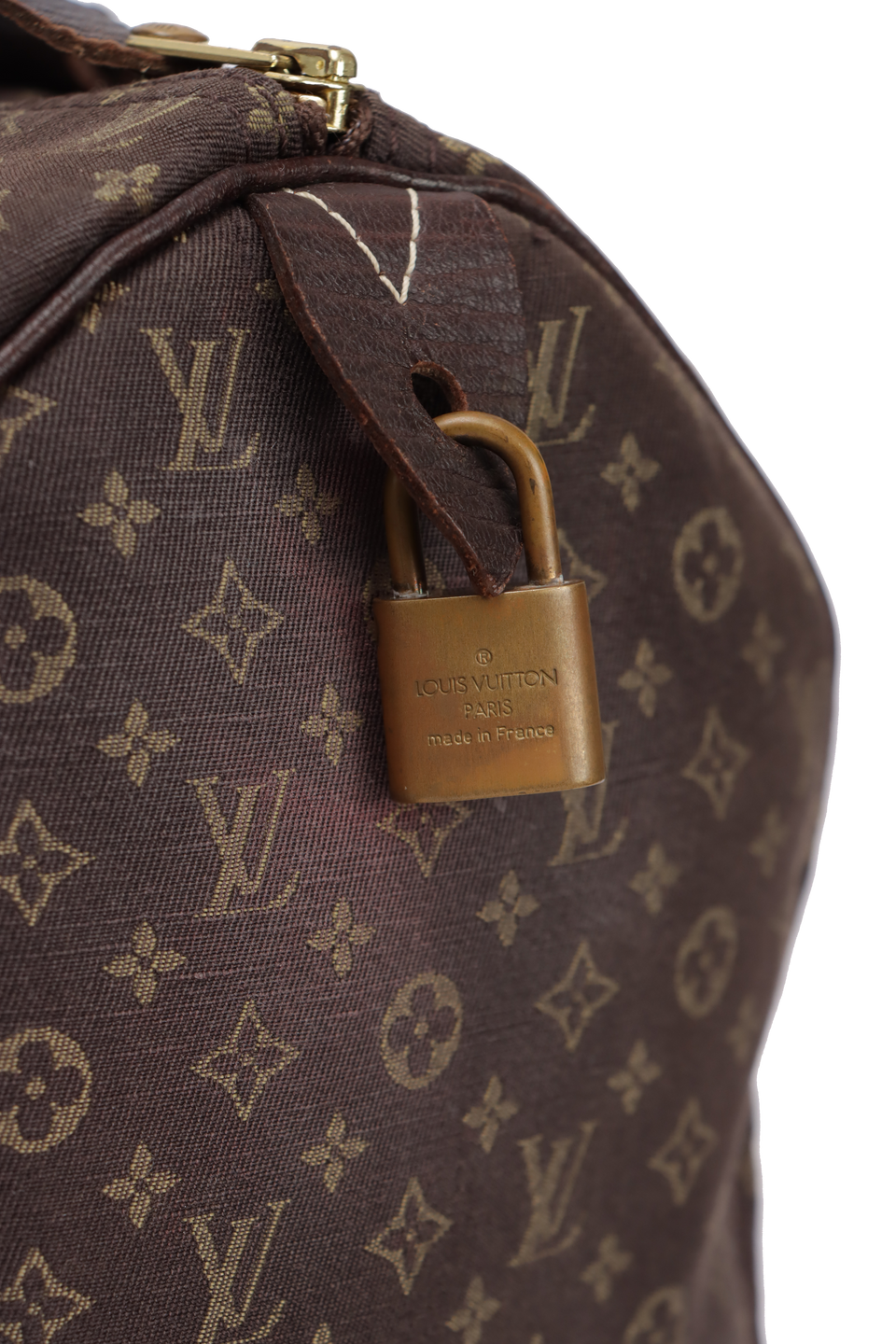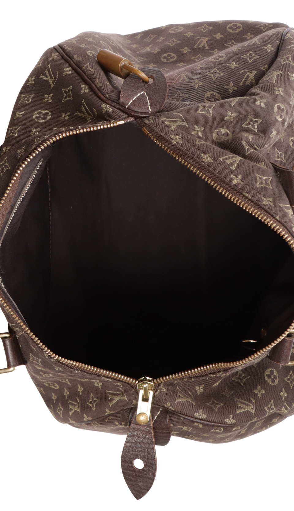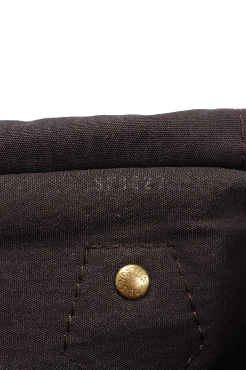 Regular. Apresenta severas deformidades pela estrutura, especialmente na lateral direita e do lado esquerdo na parte frontal, notáveis manchas de uso e fissuras no canvas, principalmente na lateral direita e cantos da base, consideráveis marcas de uso e desgastes nos detalhes em couro das alças, extremidades superiores e cantos da base, severas oxidações, descolorações e marcas de uso nas ferragens dos detalhes das alças, no puxador do cursor e no cadeado, notáveis desgastes nas selagens dos acabamentos superiores da frente e de trás e leves manchas de uso pelo forro.
