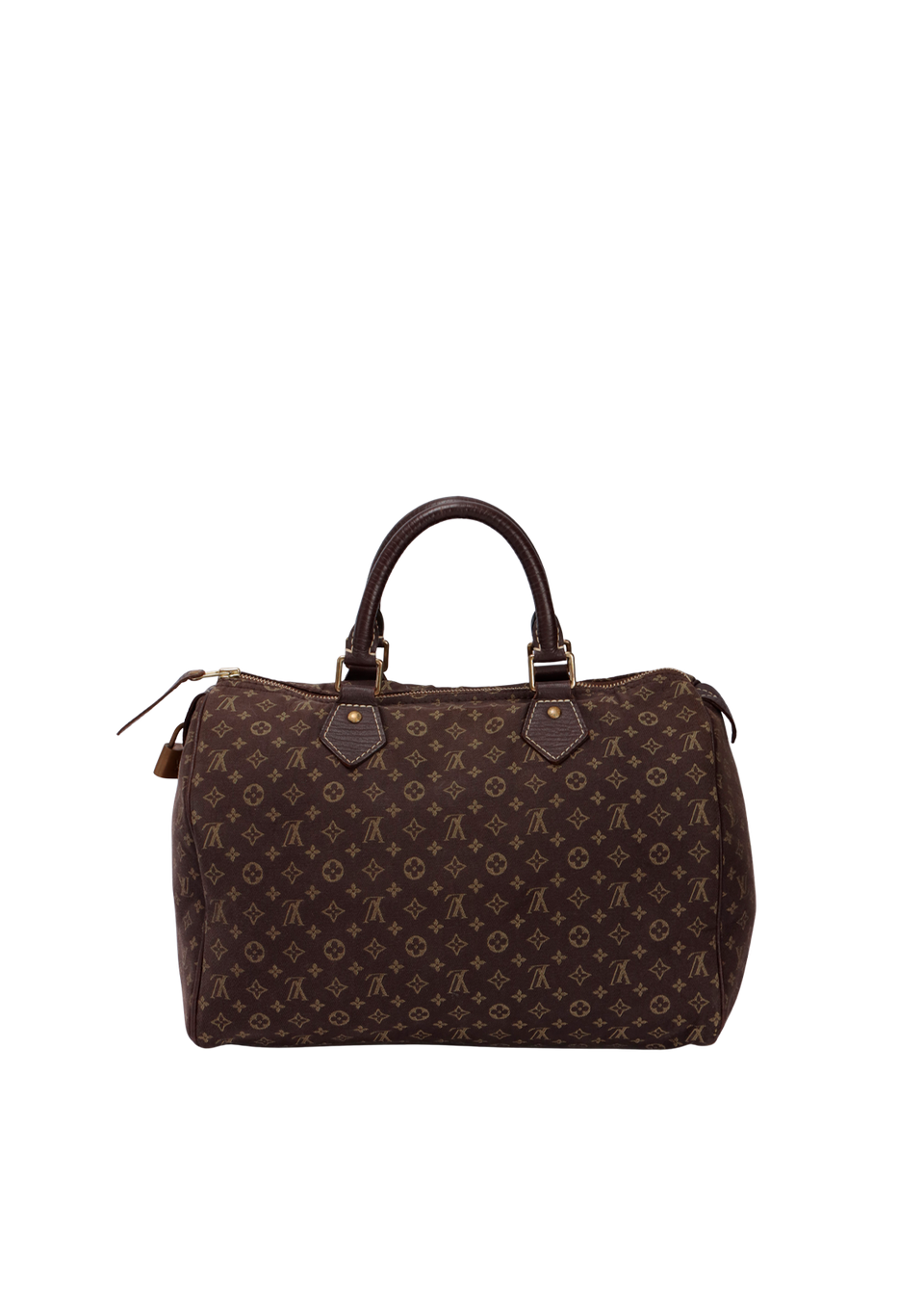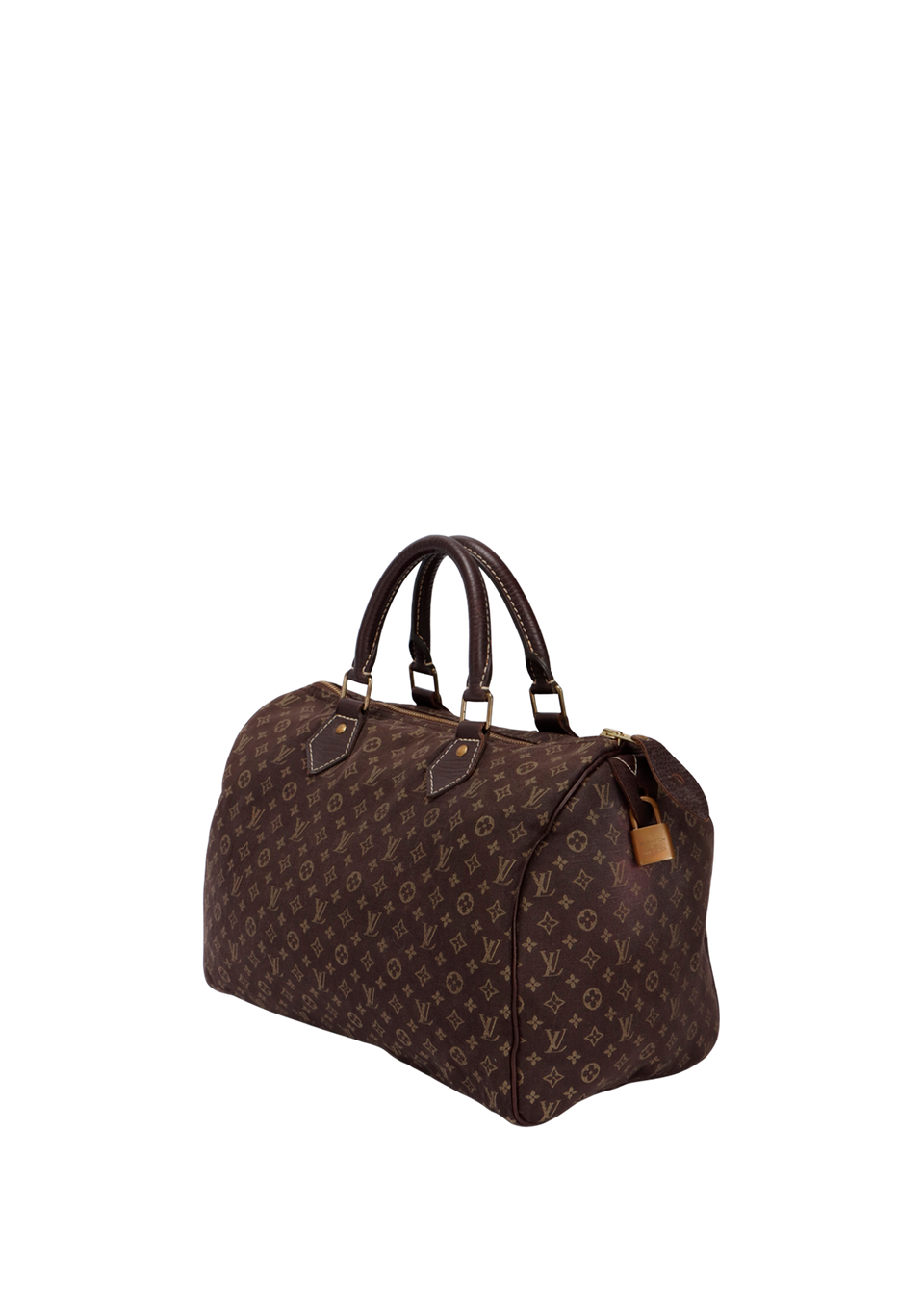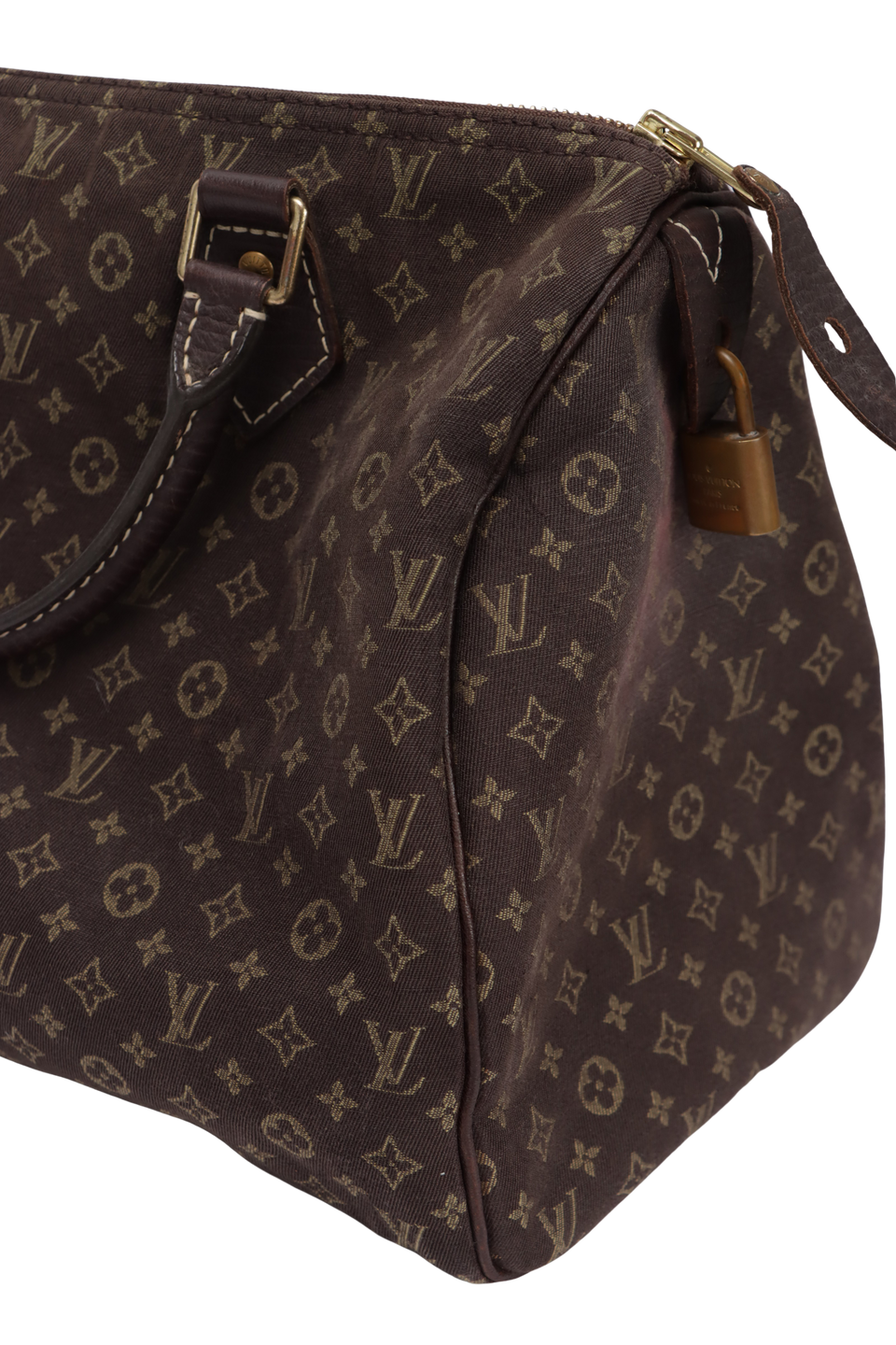 Regular. Apresenta severas deformidades pela estrutura, especialmente na lateral direita e do lado esquerdo na parte frontal, notáveis manchas de uso e fissuras no canvas, principalmente na lateral direita e cantos da base, consideráveis marcas de uso e desgastes nos detalhes em couro das alças, extremidades superiores e cantos da base, severas oxidações, descolorações e marcas de uso nas ferragens dos detalhes das alças, no puxador do cursor e no cadeado, notáveis desgastes nas selagens dos acabamentos superiores da frente e de trás e leves manchas de uso pelo forro.