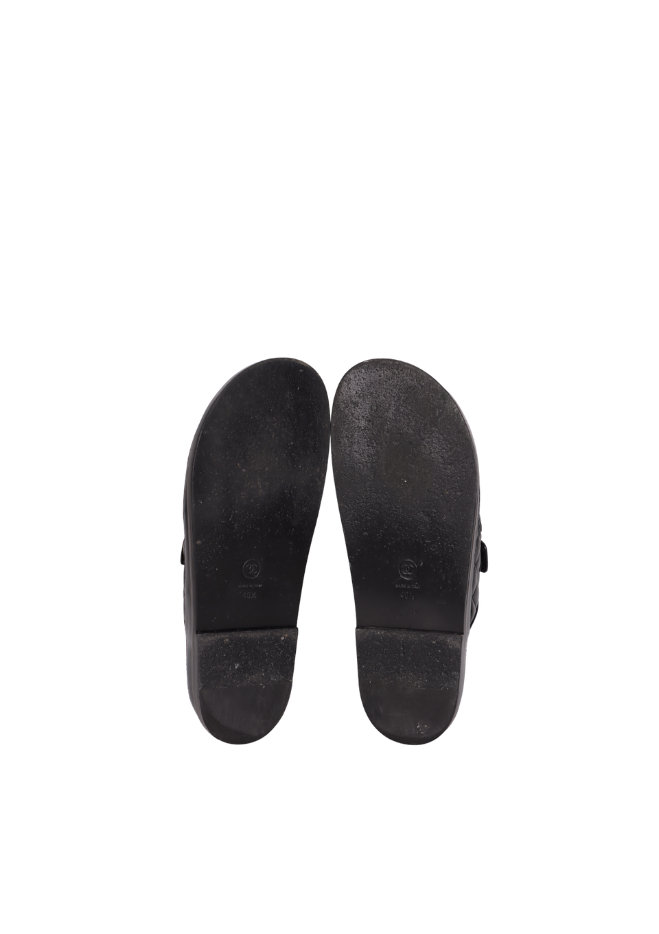 Muito bom, com aparência de seminovo. Apresenta levíssimos desgastes, manchas e marcas de uso pelo couro das palmilhas, especialmente nas parte de trás de ambos os pés, mínimas marcas de uso nas ferragens dos detalhes das logos e nos detalhes das tiras de fechamento, levíssimos desgastes pelo couro, principalmente na parte superior da tia frontal de ambos os pés e sola minimamente usada.