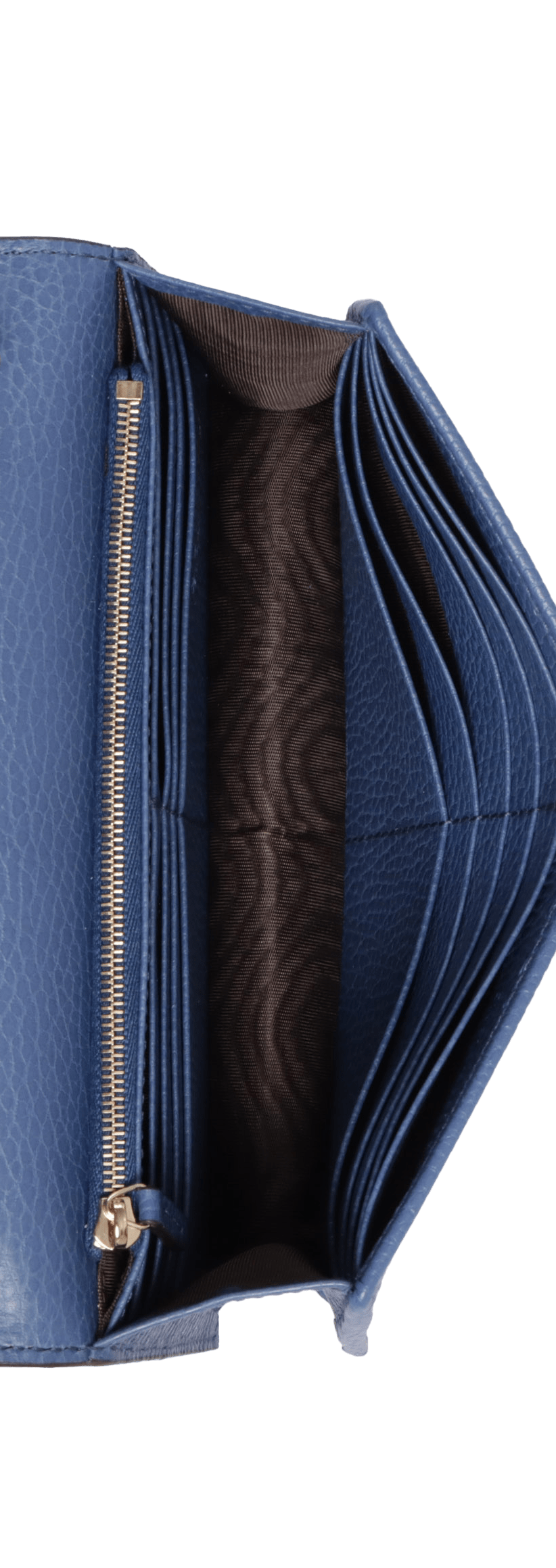 - Compartimento único com um bolso interno fechado por cursor e dezoito porta-cartões internos;