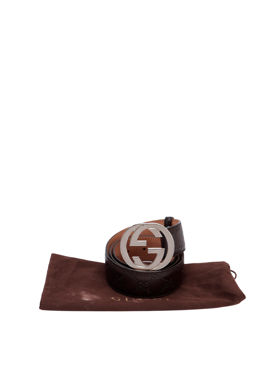Descrição do Material: Couro calfskin marrom com acabamento Guccissima