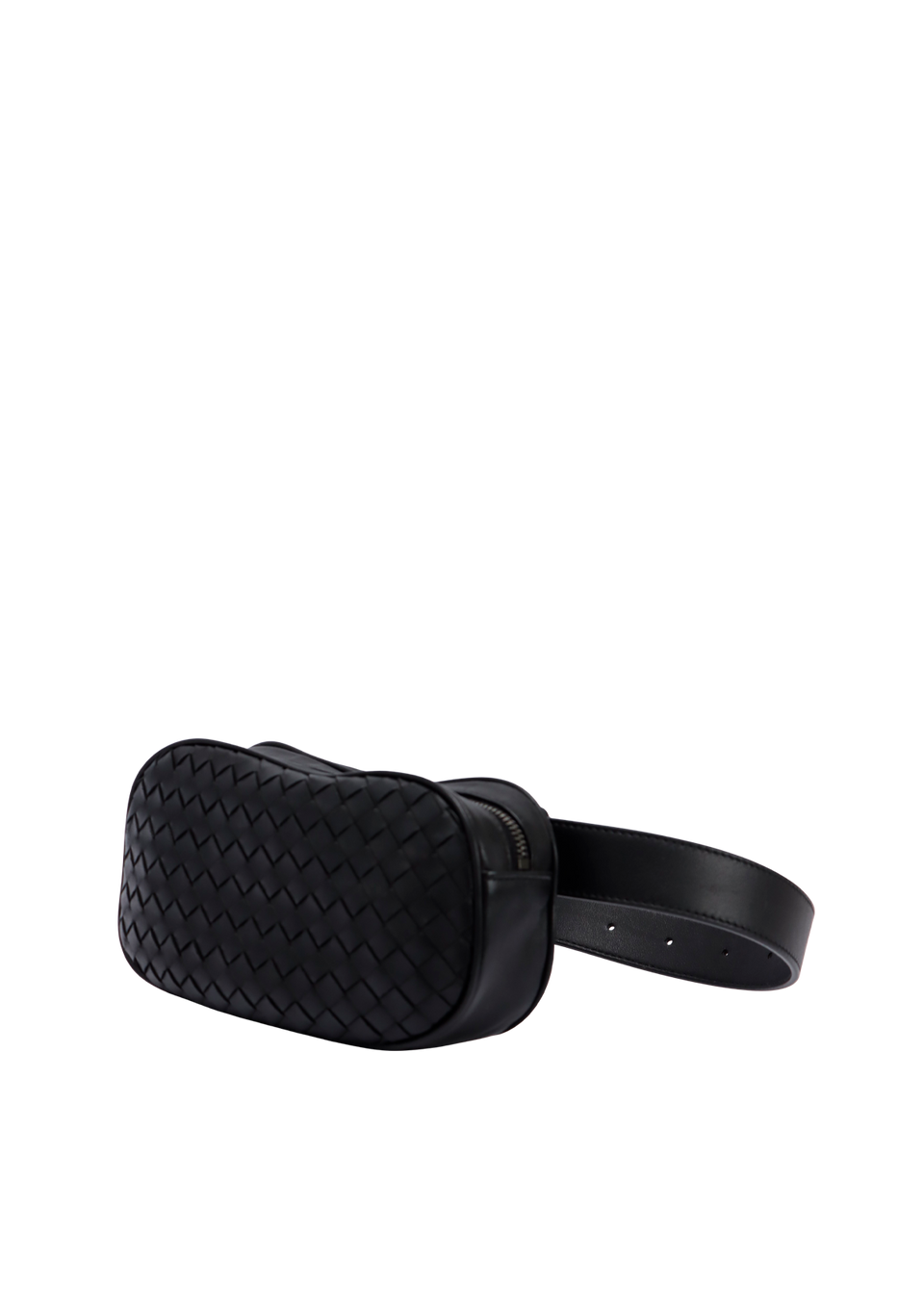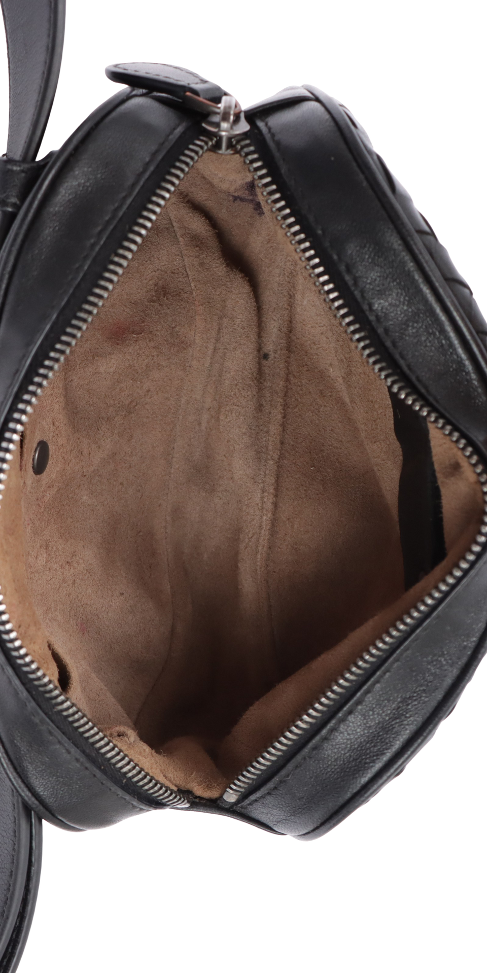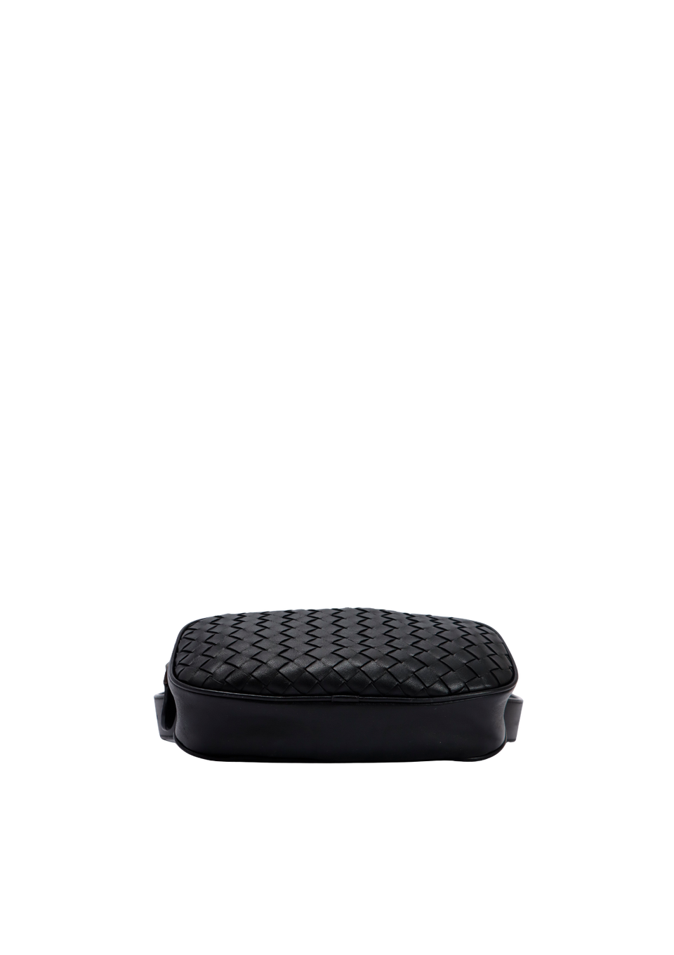 Descrição do Material: Couro lambskin preto com acabamento Intrecciato