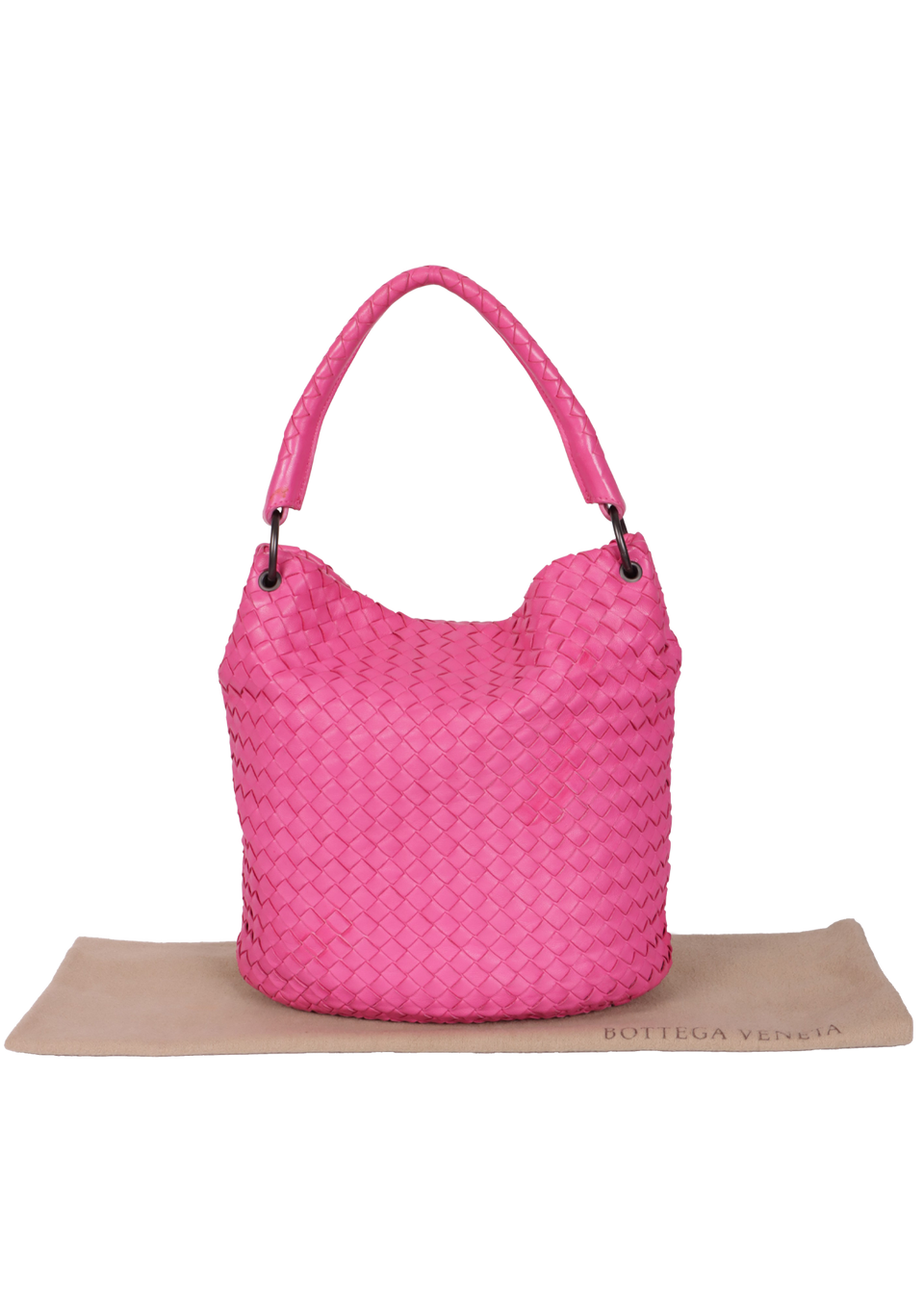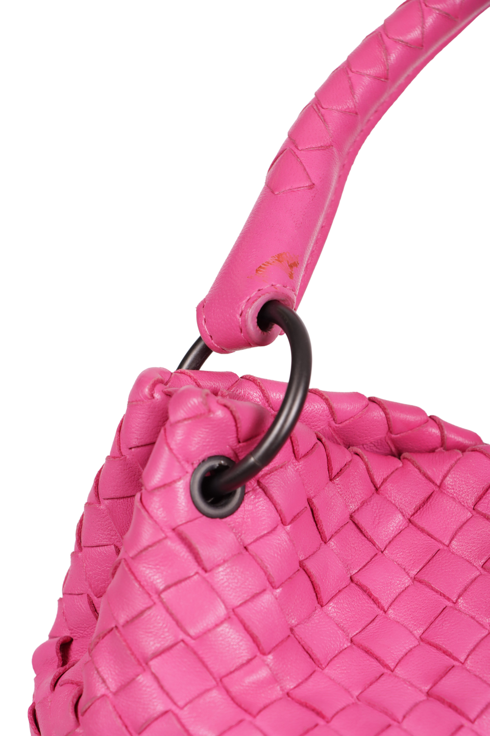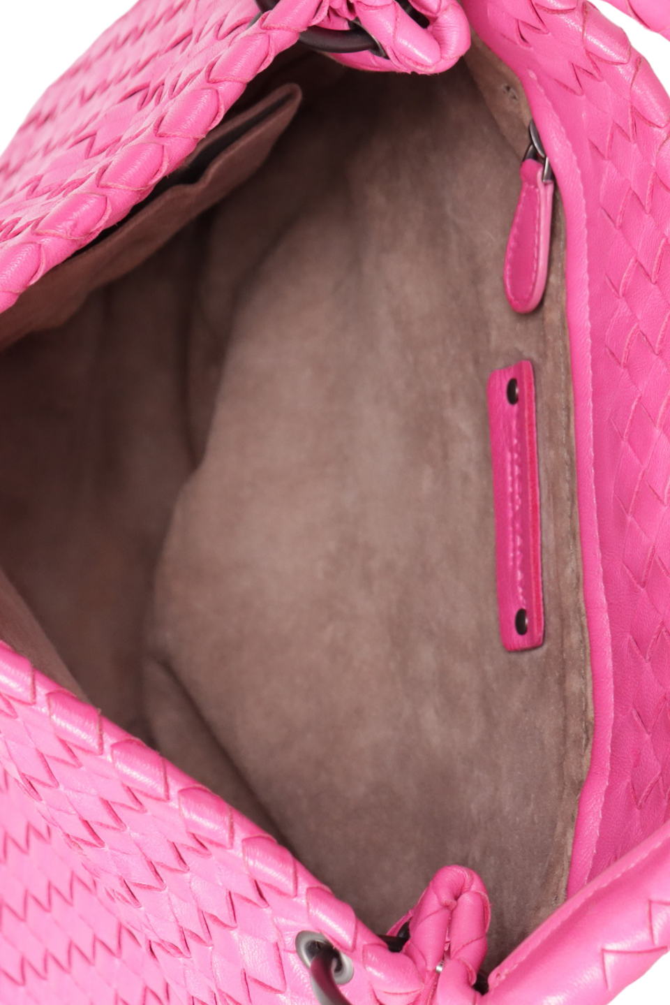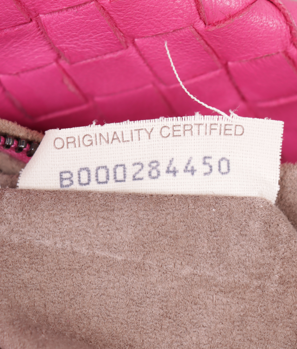 Descrição do Material: Couro calfskin rosa com acabamento Intrecciato