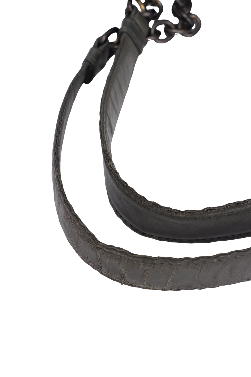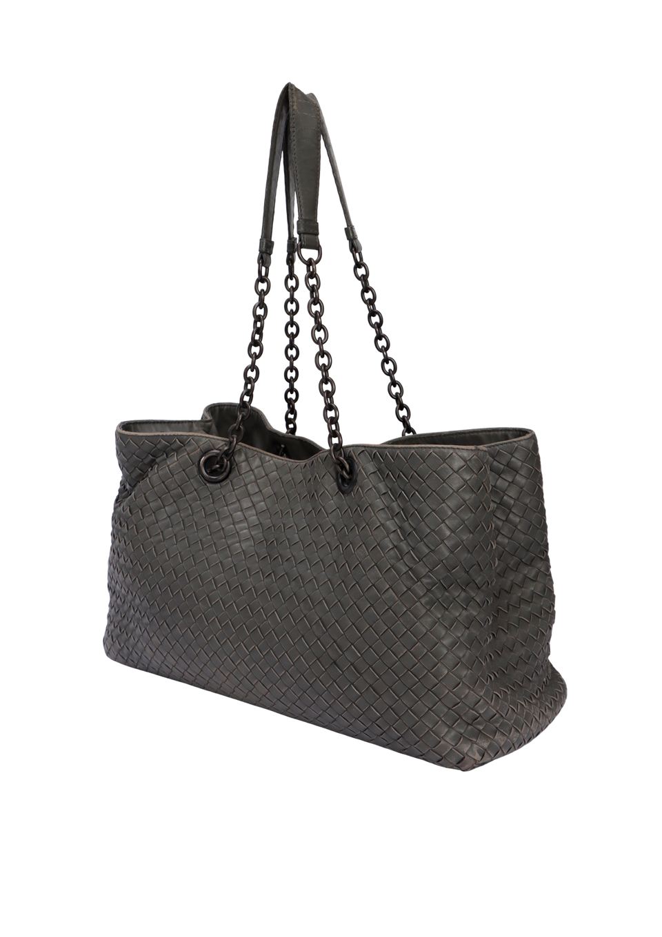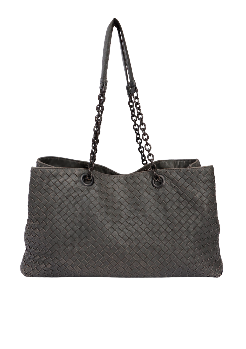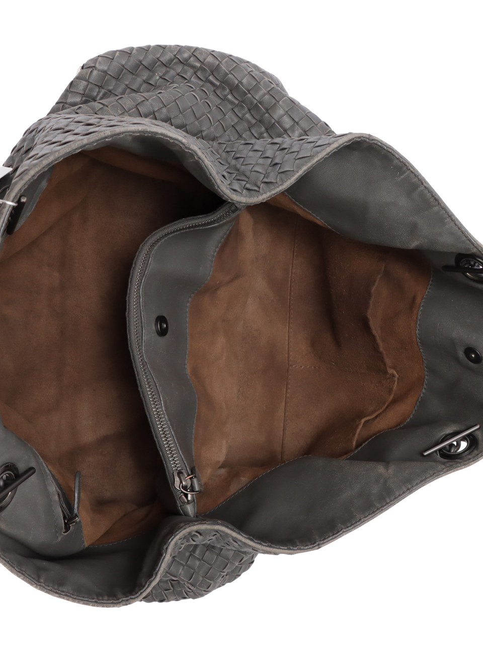 Descrição do Material: Couro calfskin cinza com acabamento intrecciato