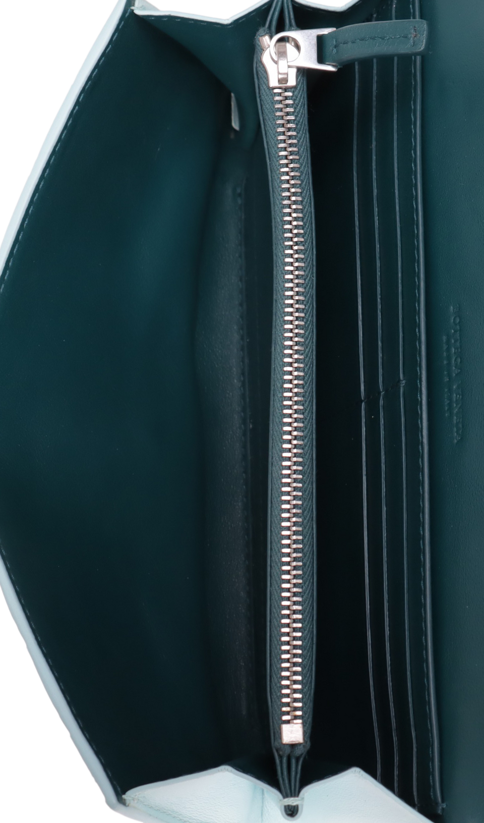 Descrição do Material: Couro lambskin azul com acabamento Intrecciato