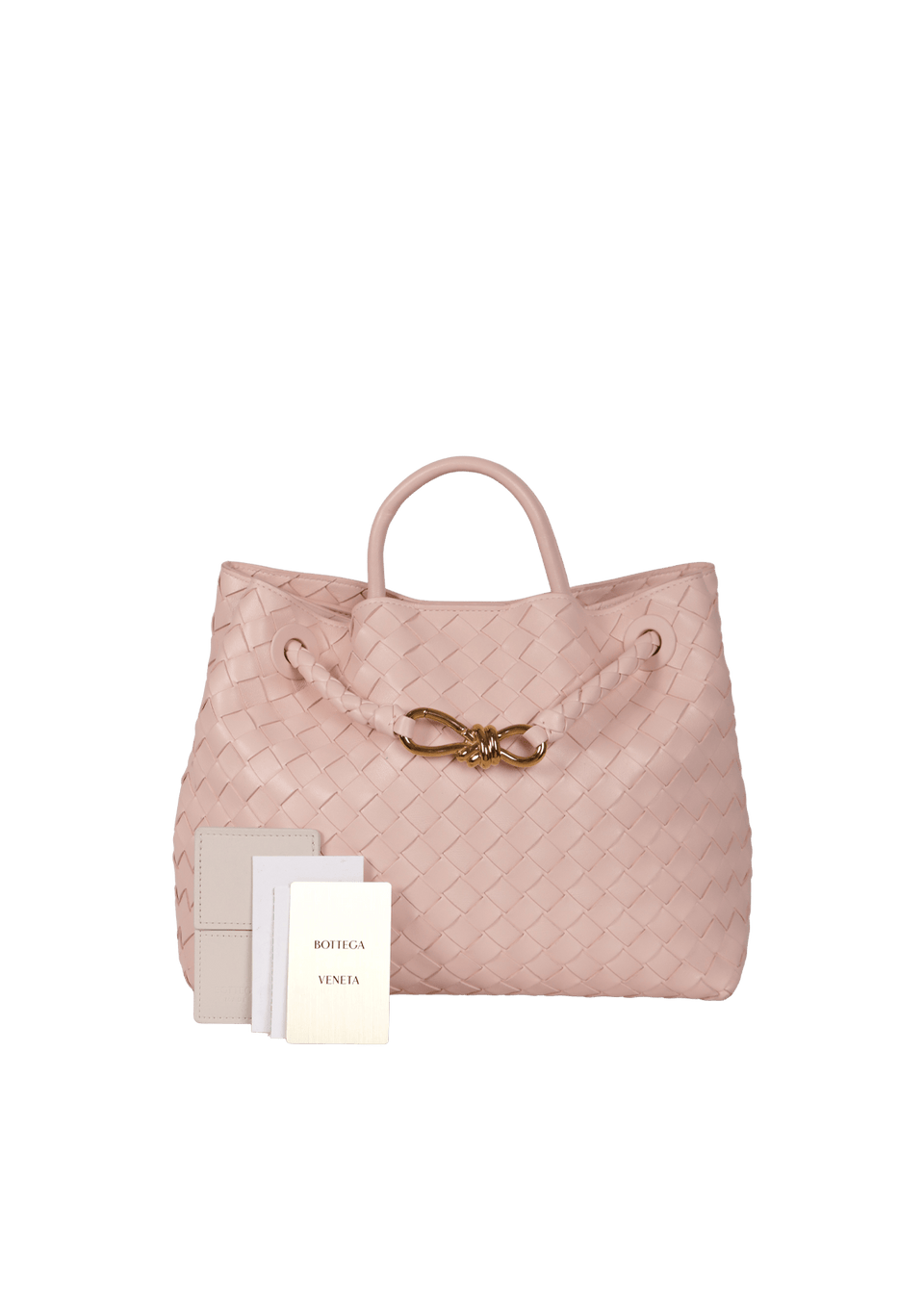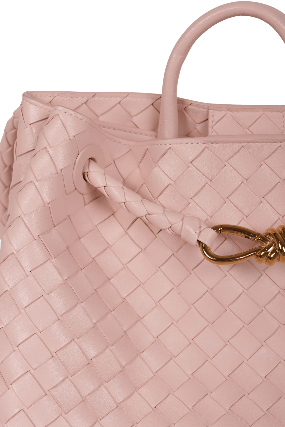 Descrição do Material: Couro calfskin rosa com acabamento Intrecciato