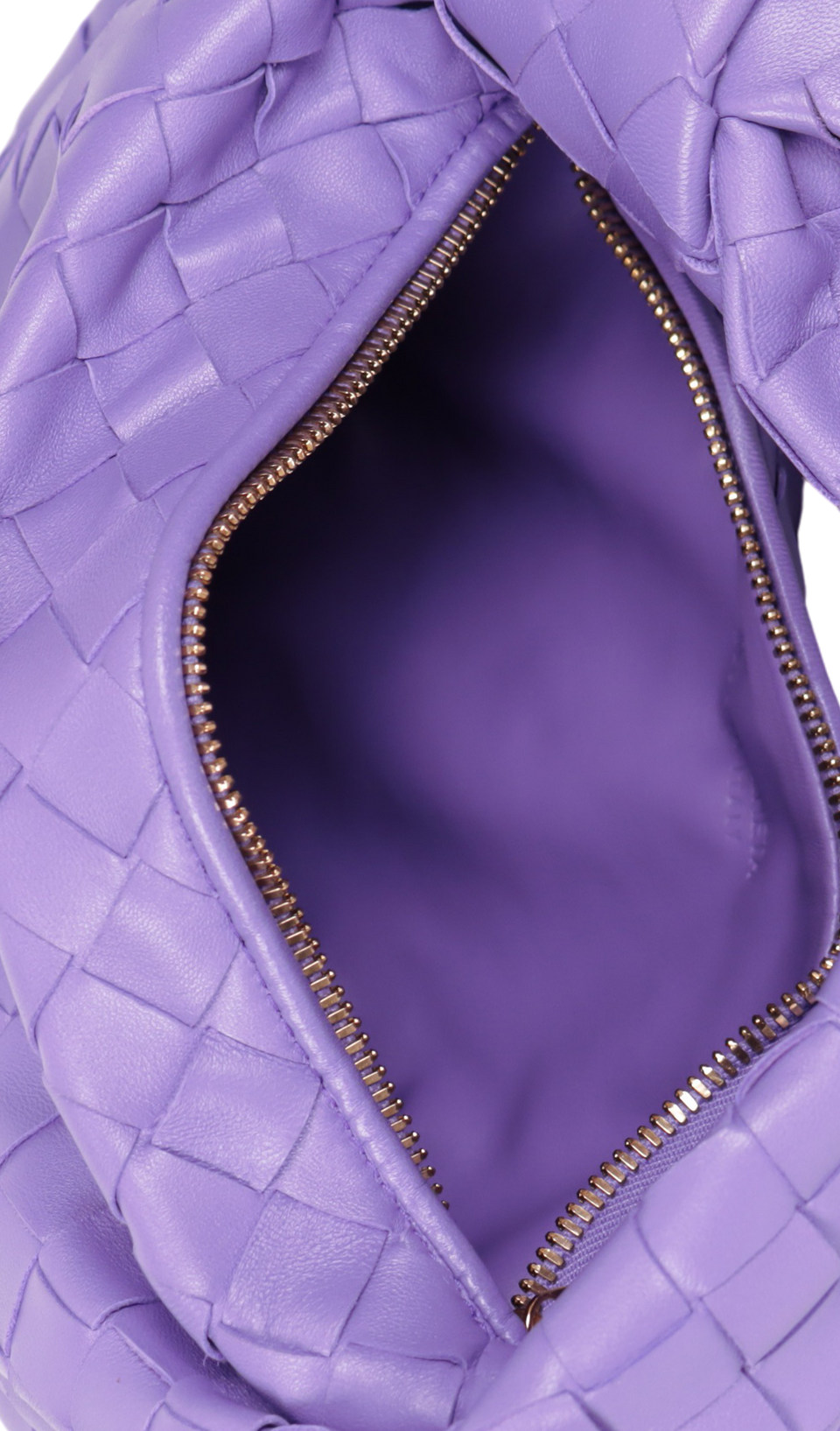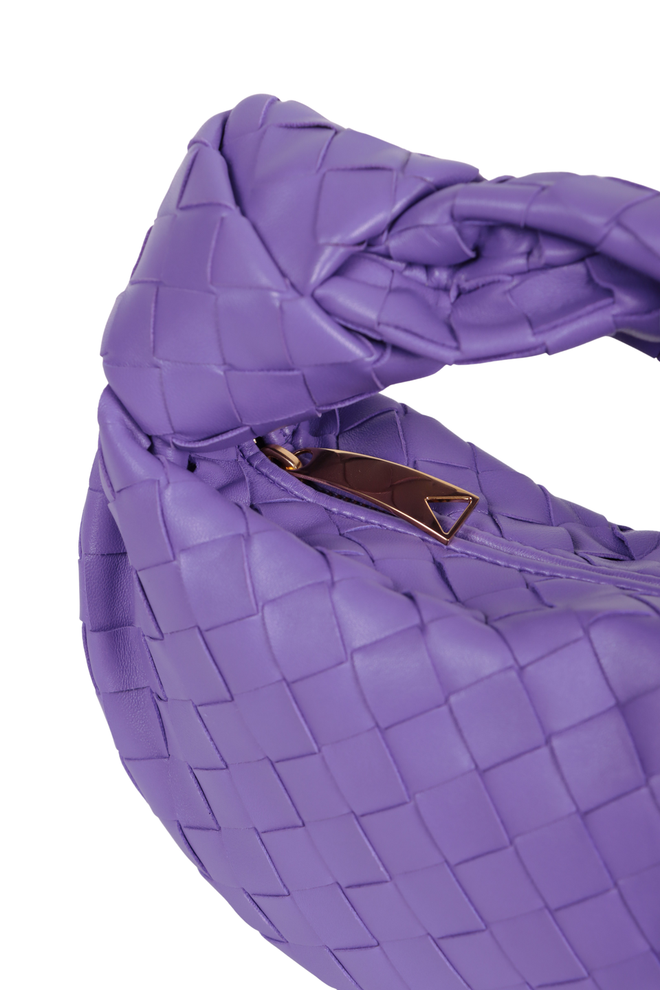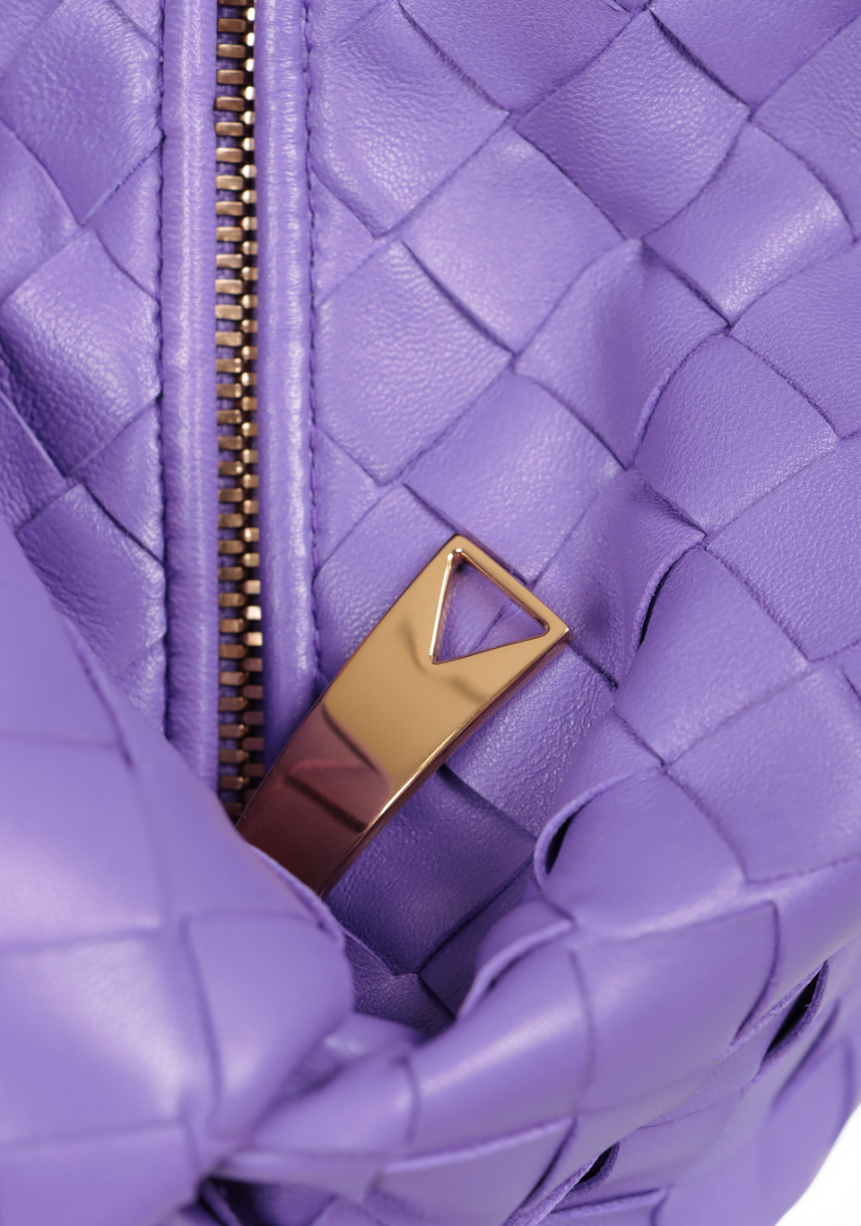 Descrição do Material: Couro lambskin roxo com acabamento Intrecciato