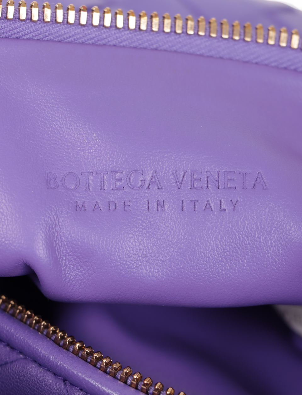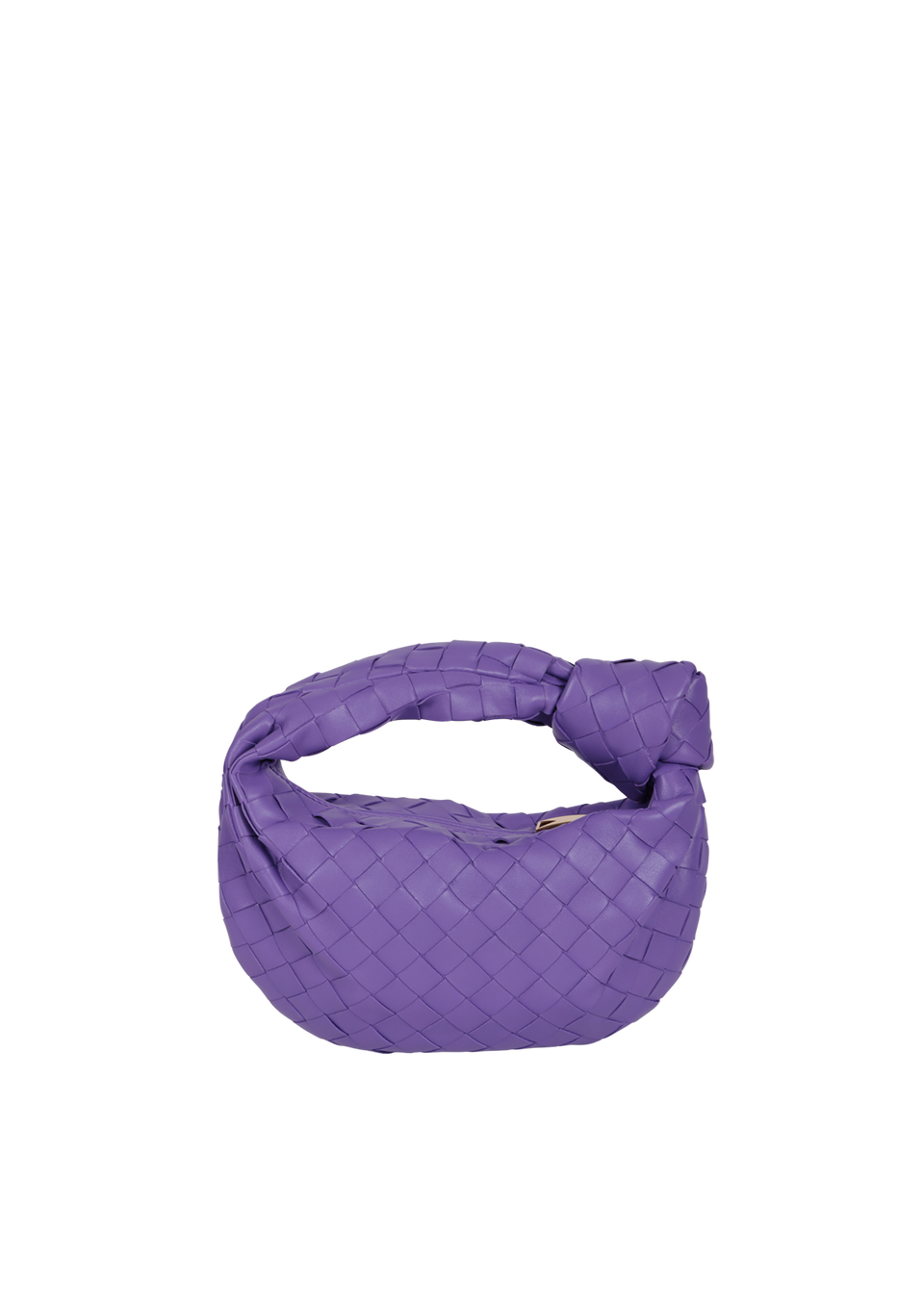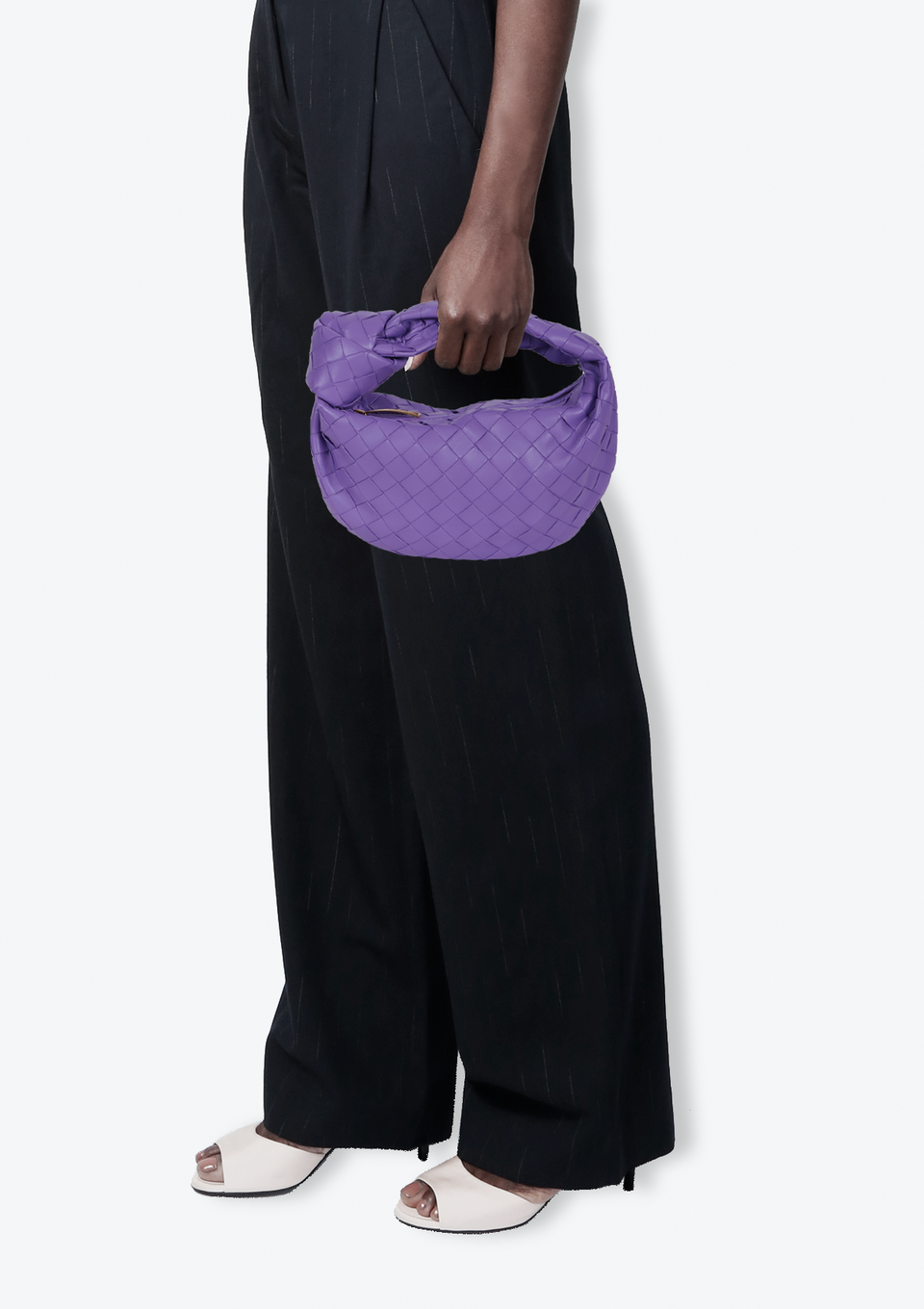Descrição do Material: Couro lambskin roxo com acabamento Intrecciato