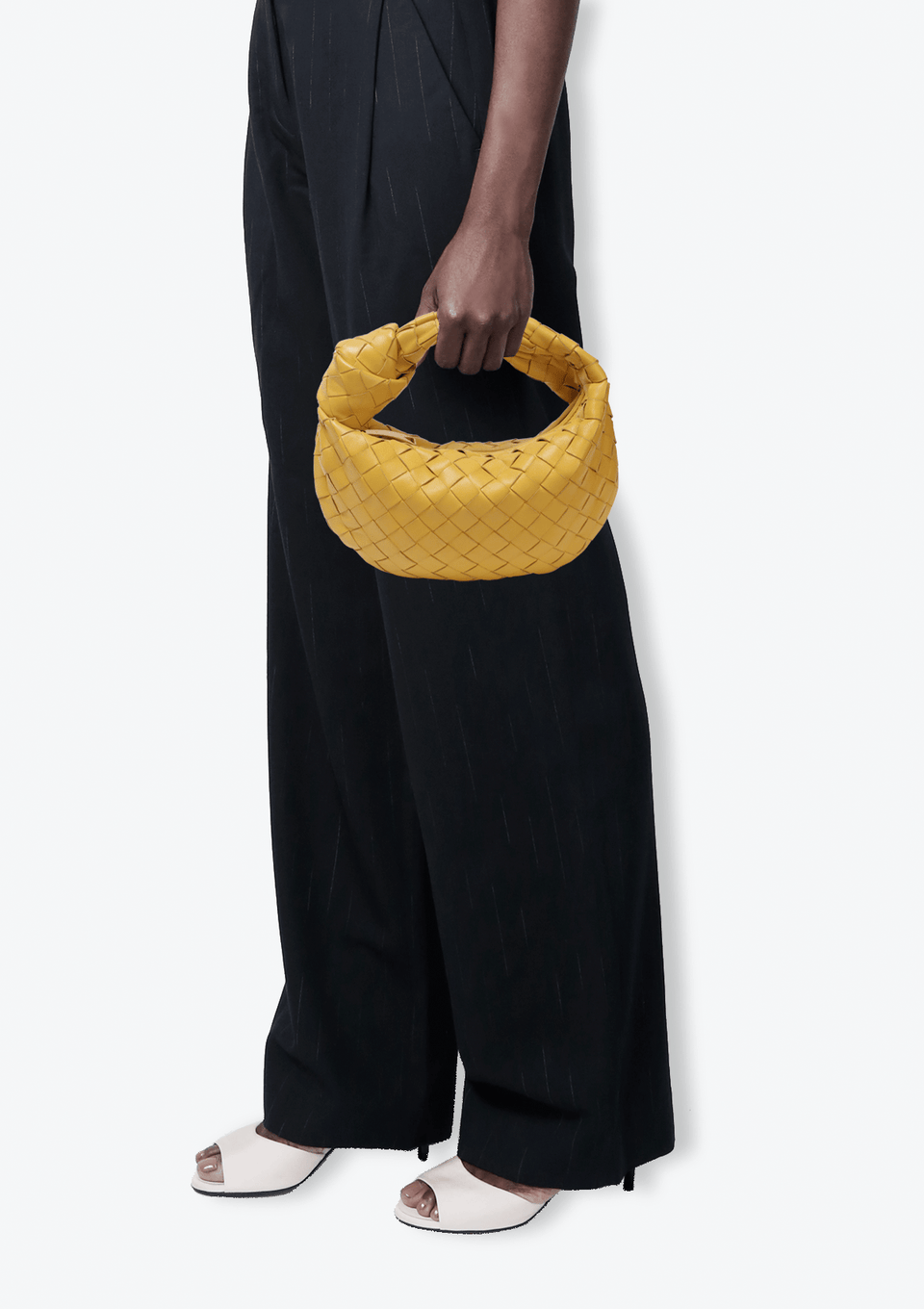 Descrição do Material: Couro lambskin amarelo com acabamento intrecciato