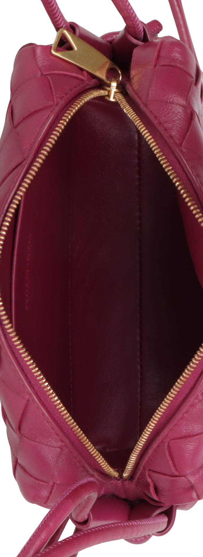 Descrição do Material: Couro calfskin roxo com acabamento Intrecciato