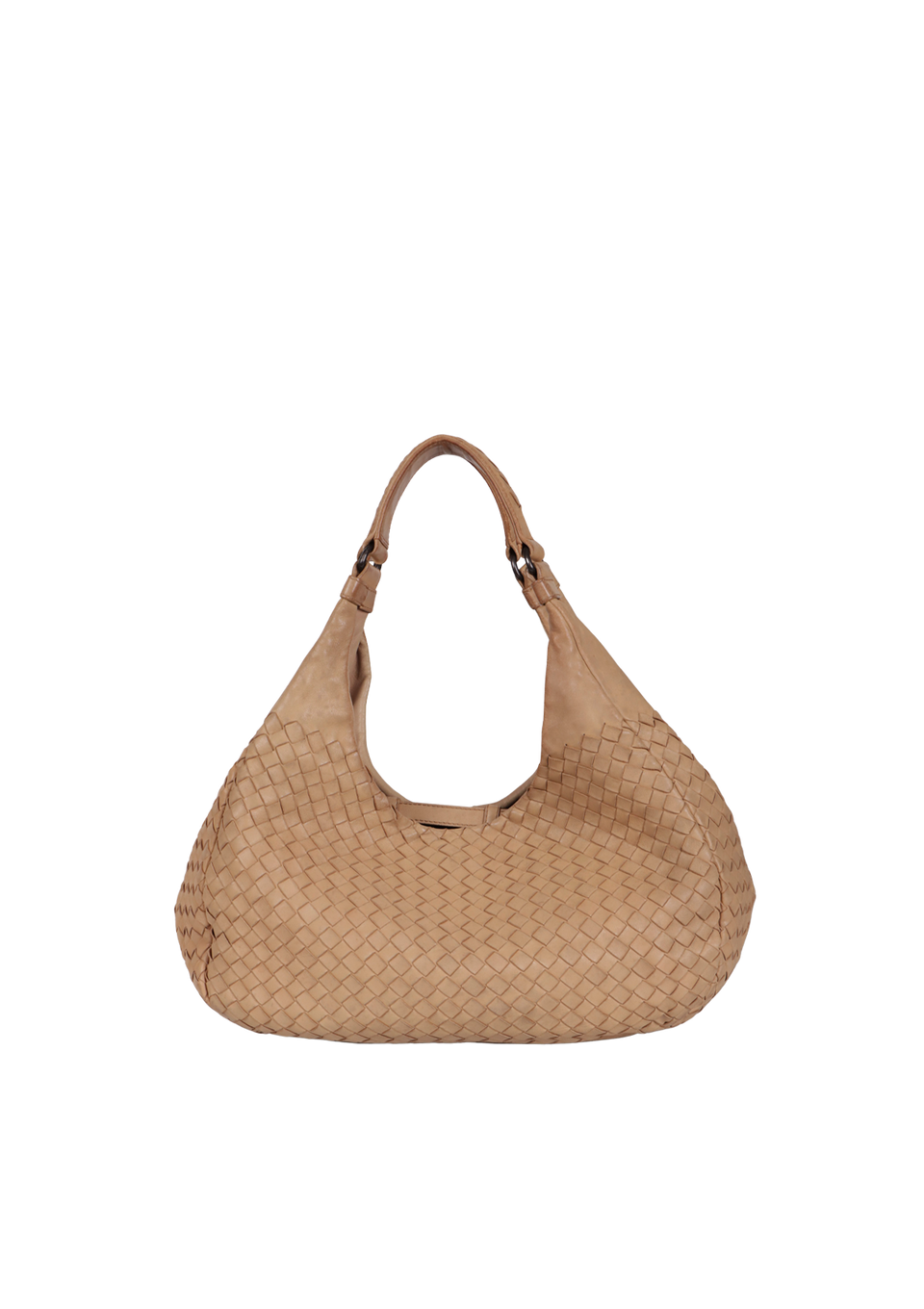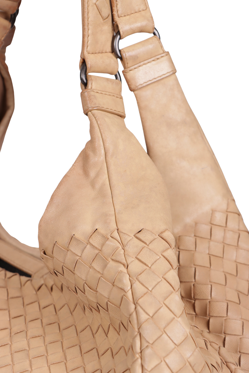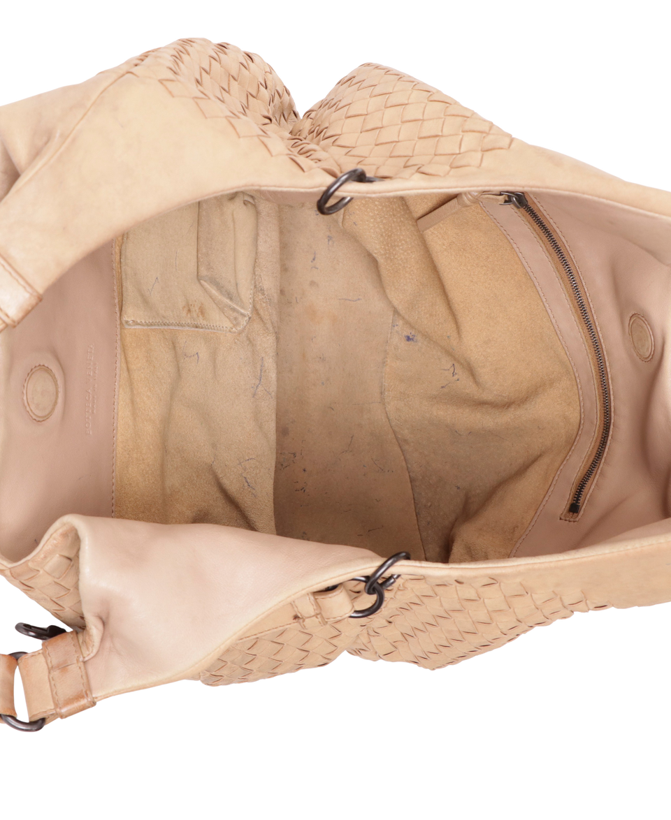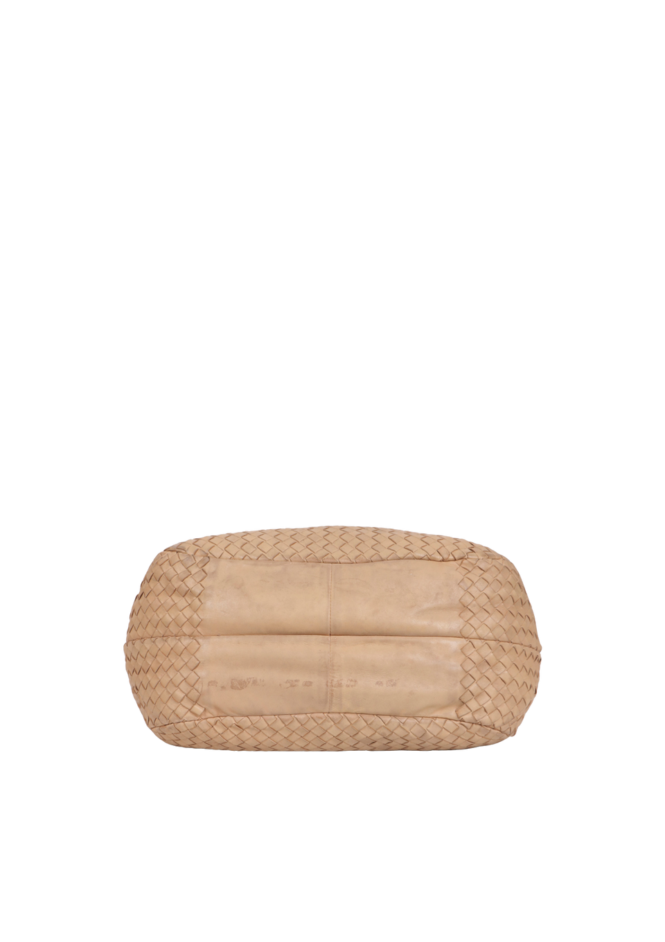 Descrição do Material: Couro calfskin bege com acabamento Intrecciato