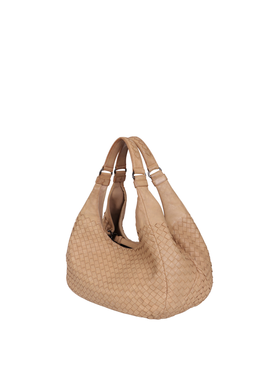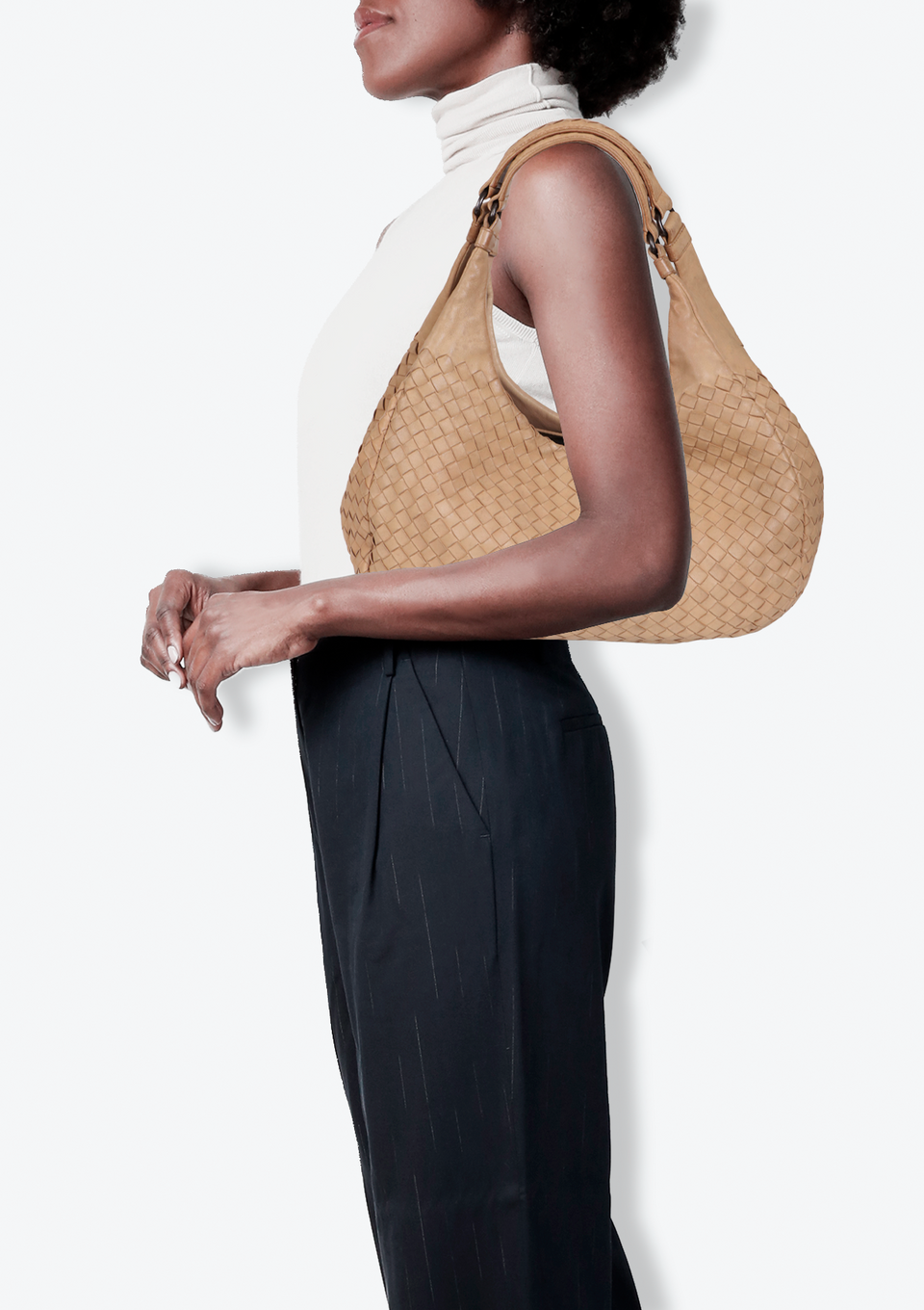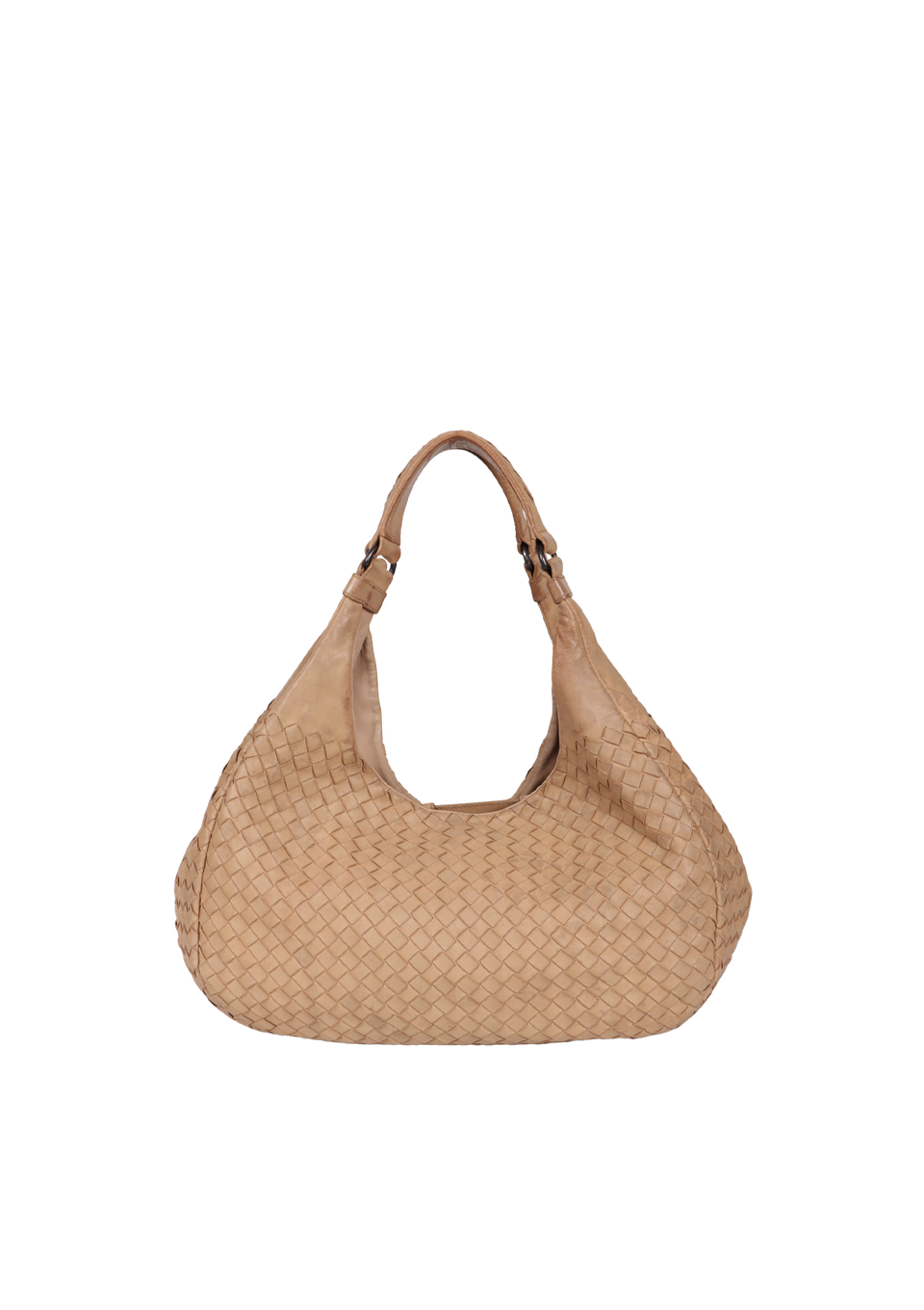 Descrição do Material: Couro calfskin bege com acabamento Intrecciato