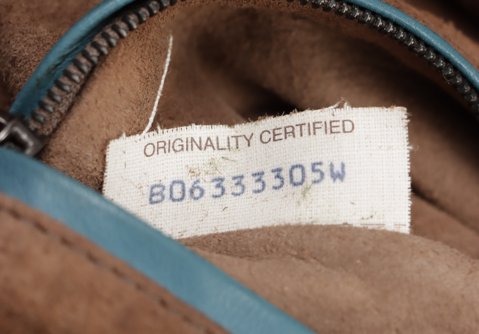 Descrição do Material: Couro calfskin azul com acabamento Intrecciato