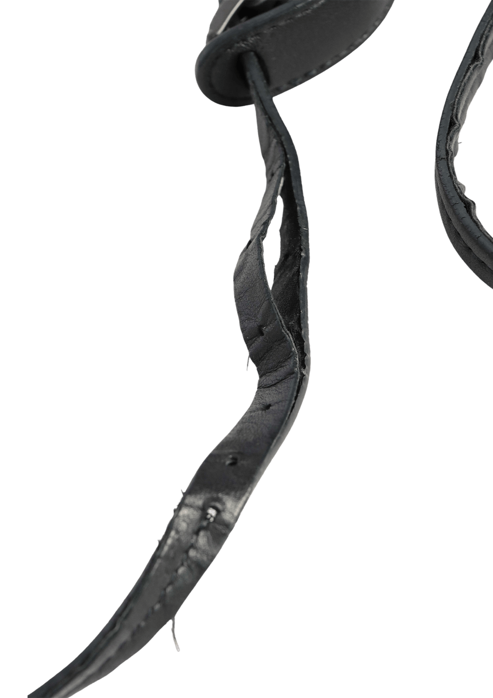 Condição: Regular. Apresenta descolamentos nas selagens da alça, desgastes no couro da alça e no couro externo (principalmente nas extremidades), manchas e enrijecimento no forro e desgastes e oxidações nas ferragens.