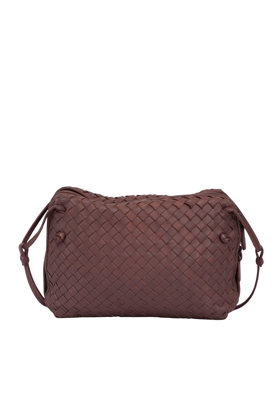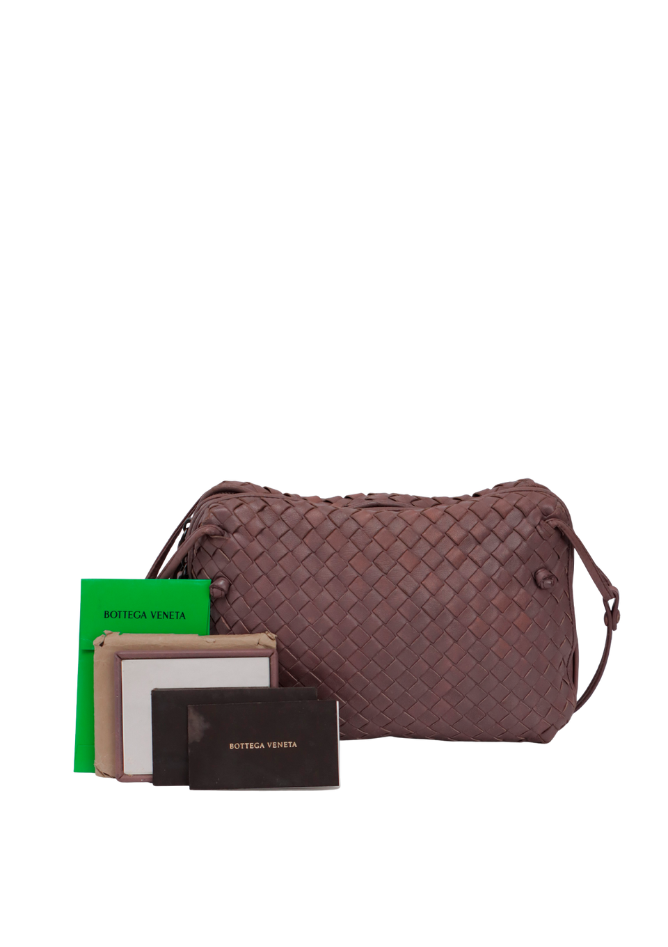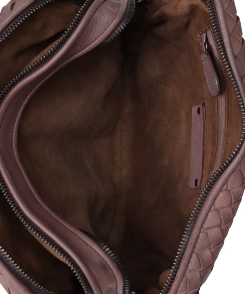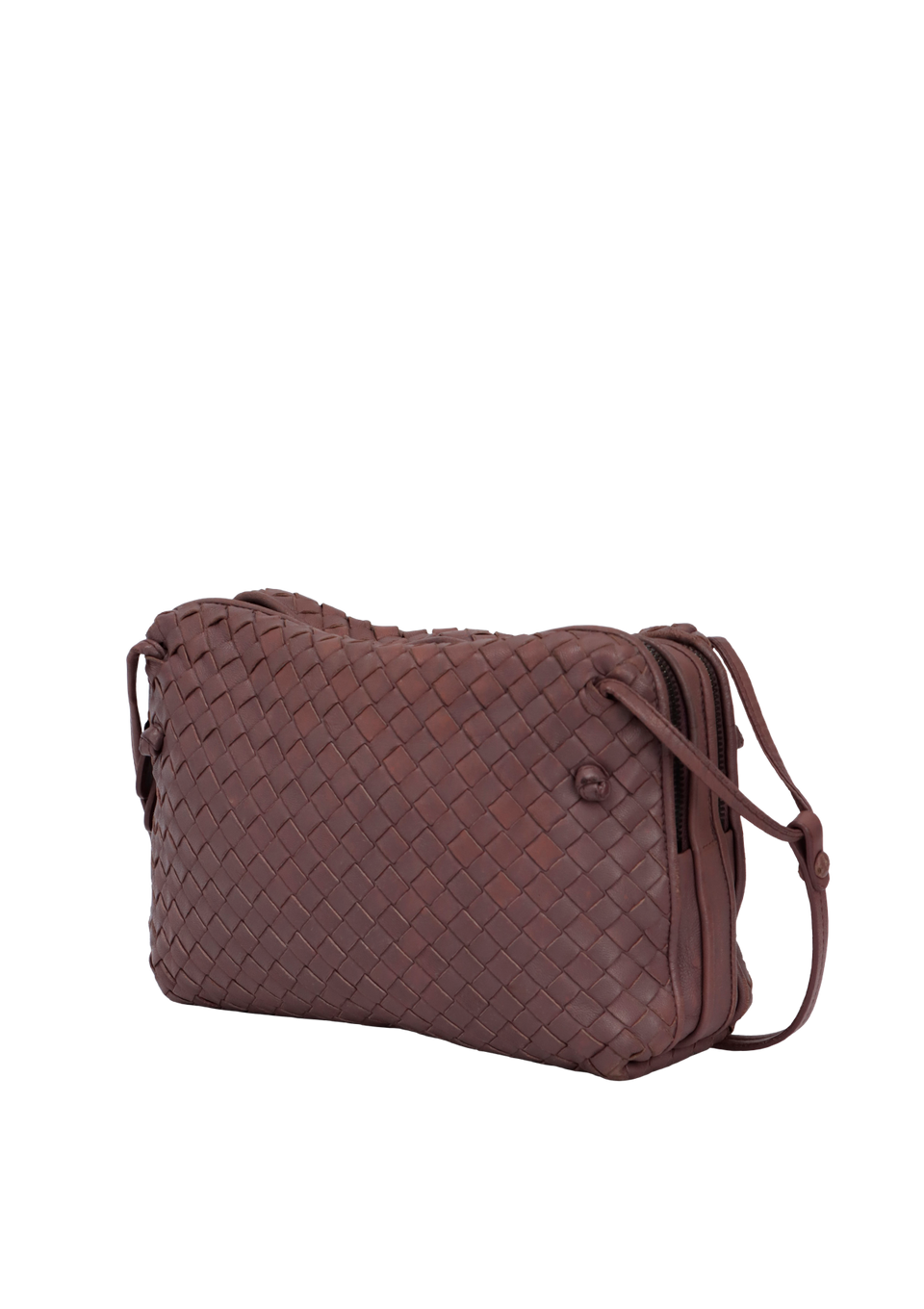 Descrição do Material: Couro lambskin roxo com acabamento Intrecciato