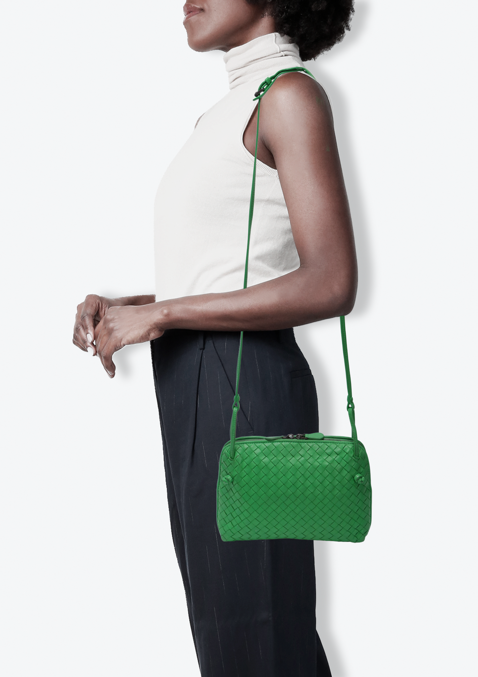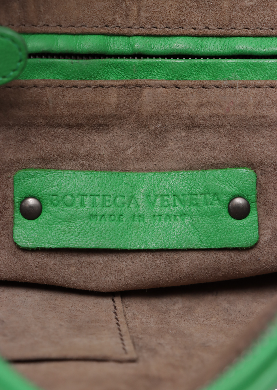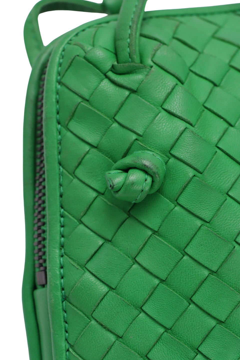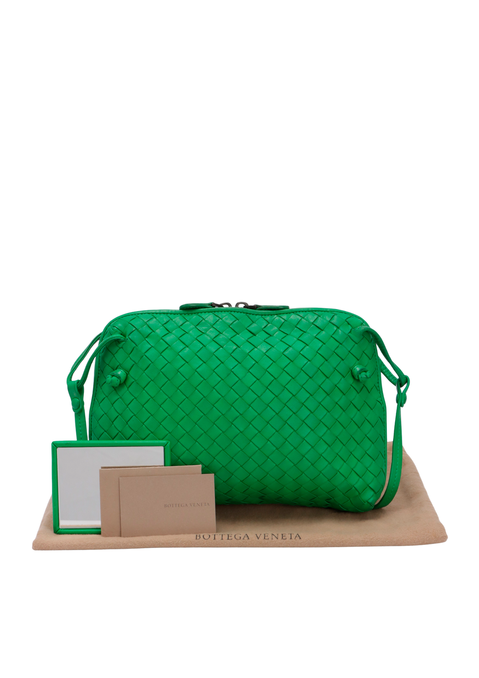Descrição do Material: Couro lambskin verde com acabamento Intrecciato