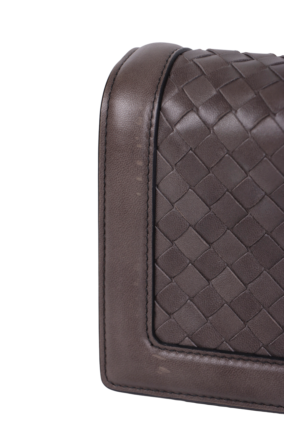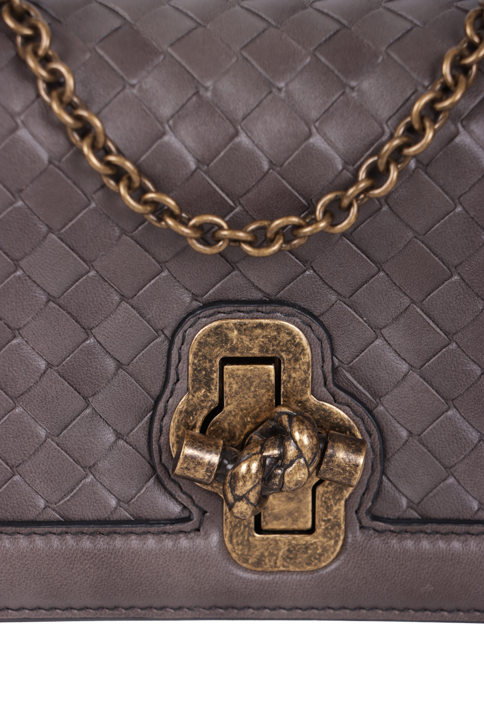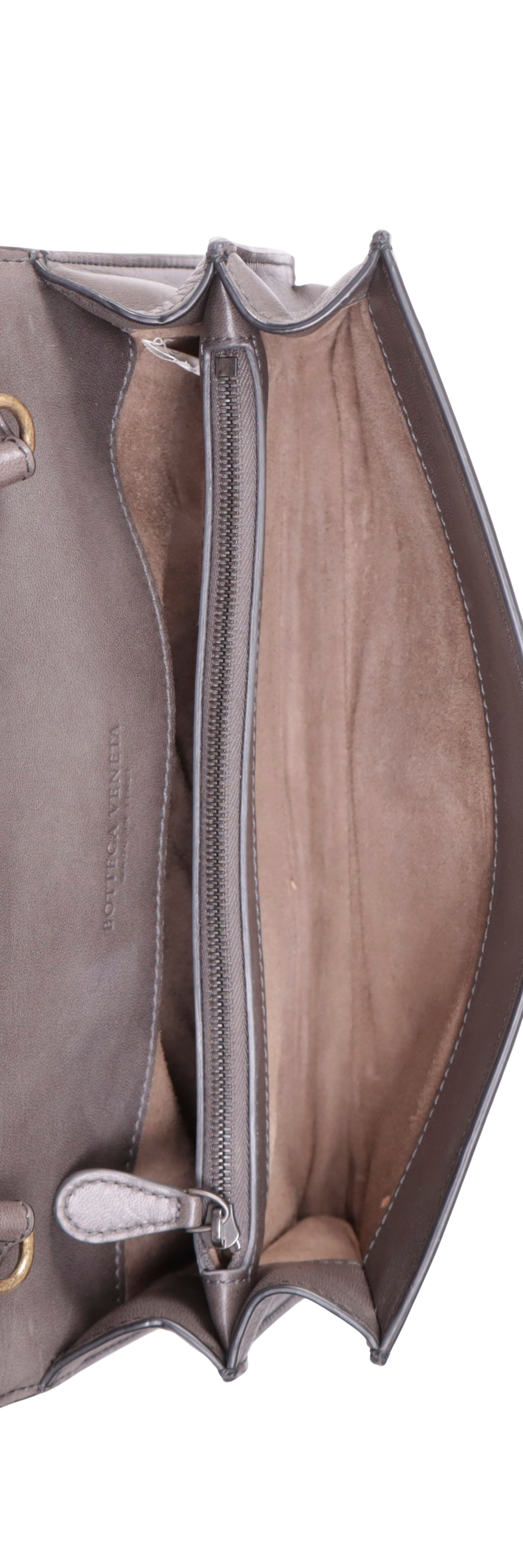 Descrição do Material: Couro calfskin cinza com acabamento Intrecciato