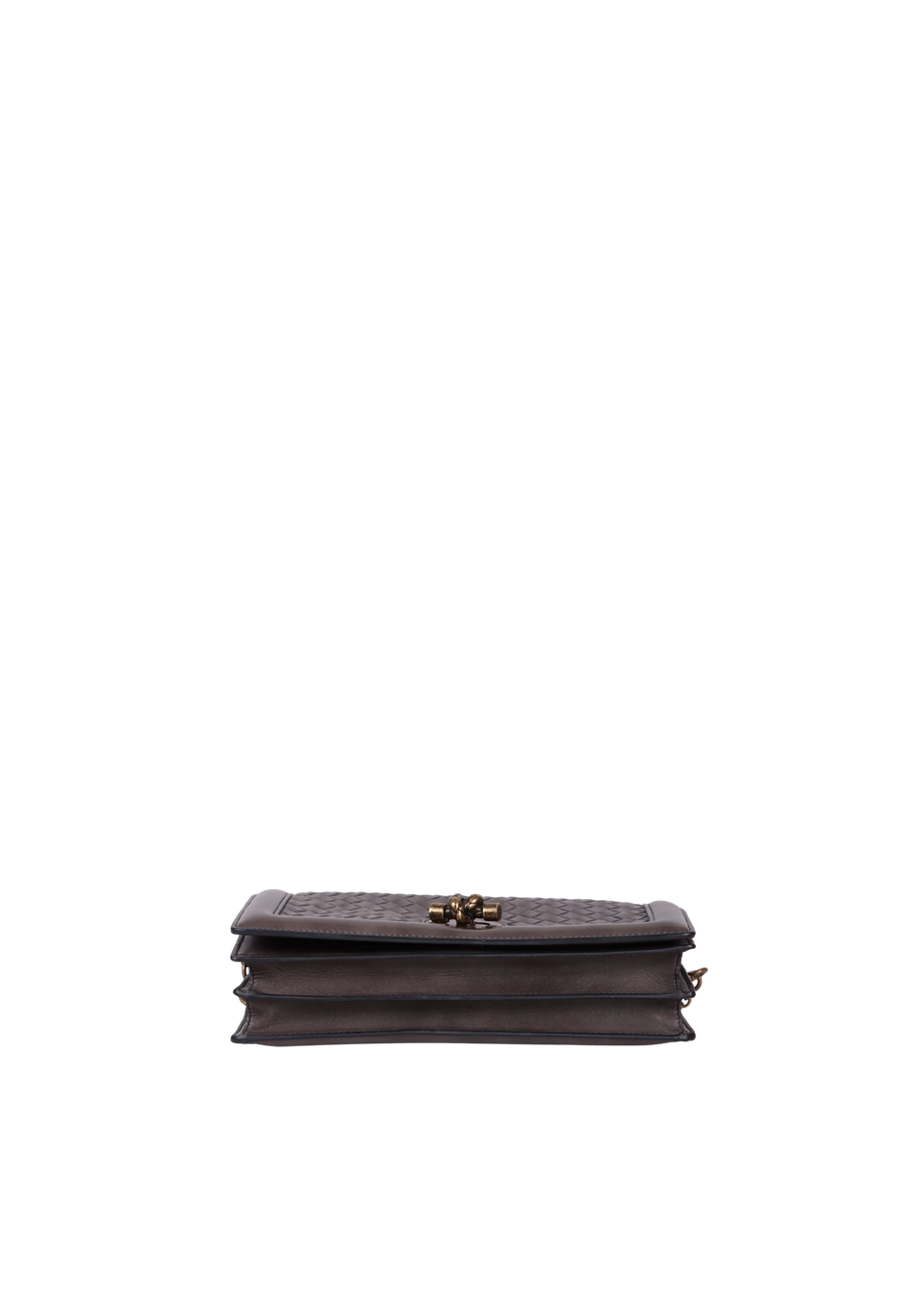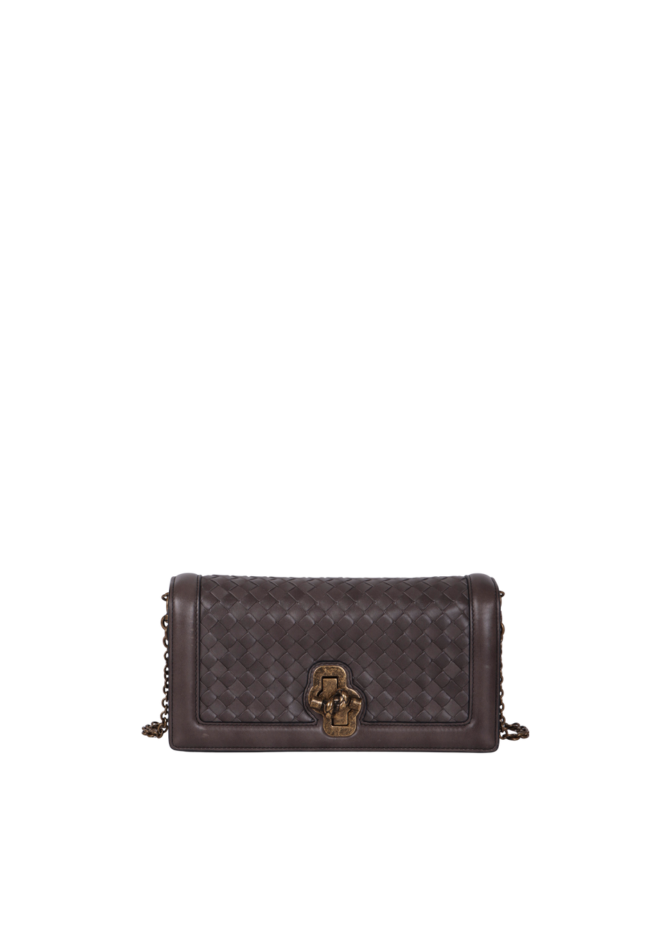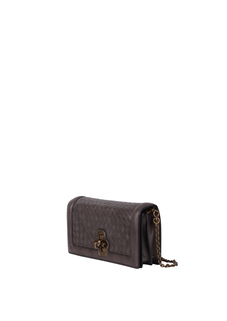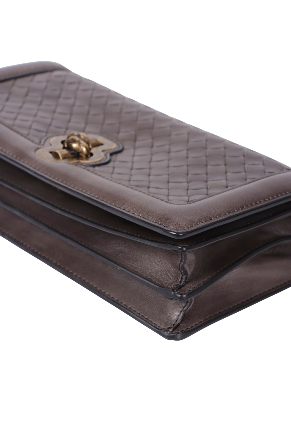 Descrição do Material: Couro calfskin cinza com acabamento Intrecciato