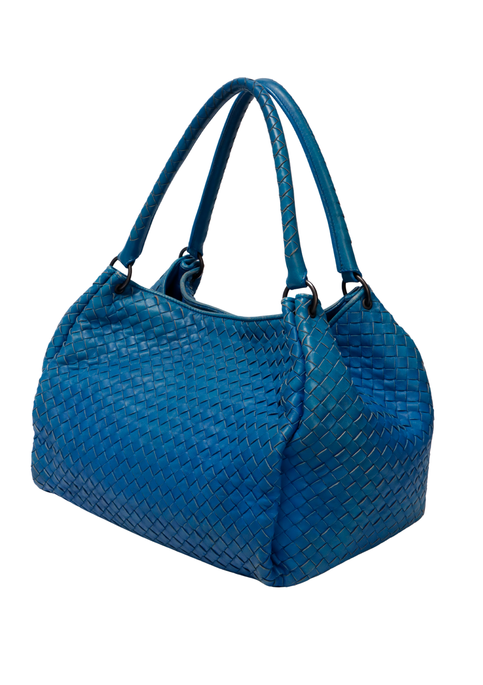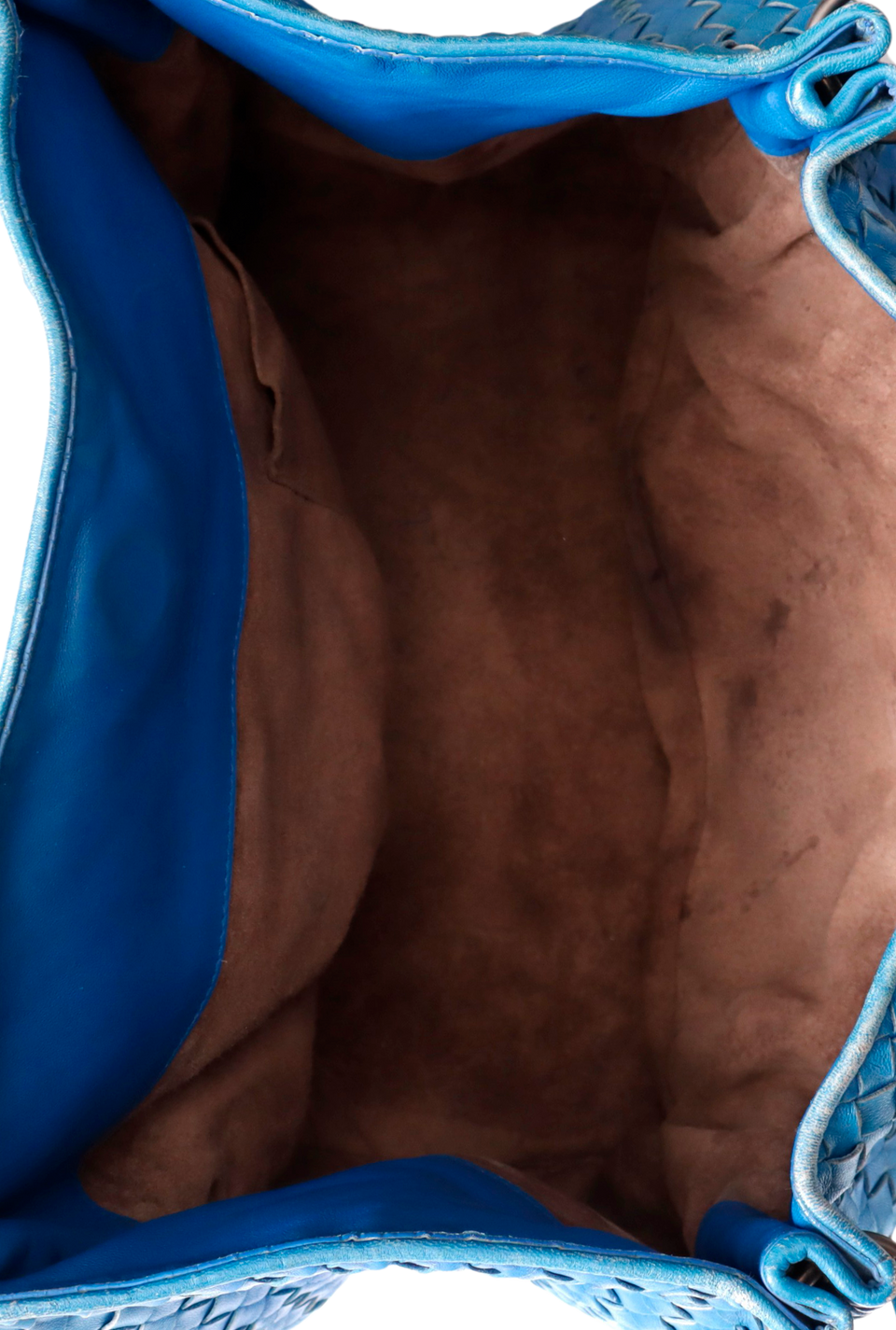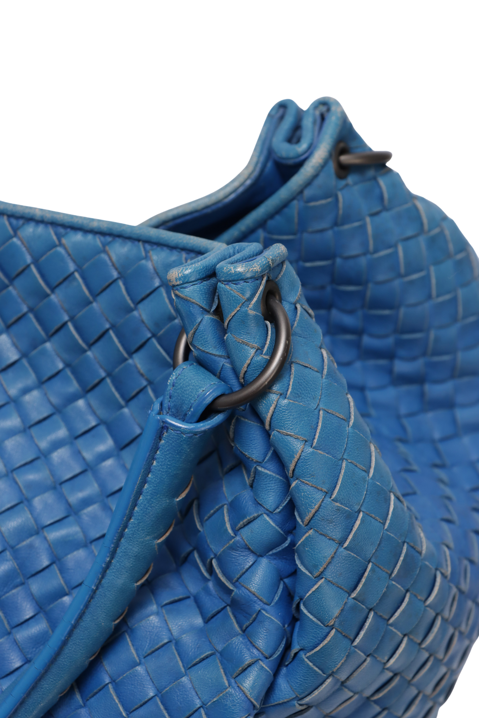 Descrição do Material: Couro lambskin azul com acabamento Intrecciato