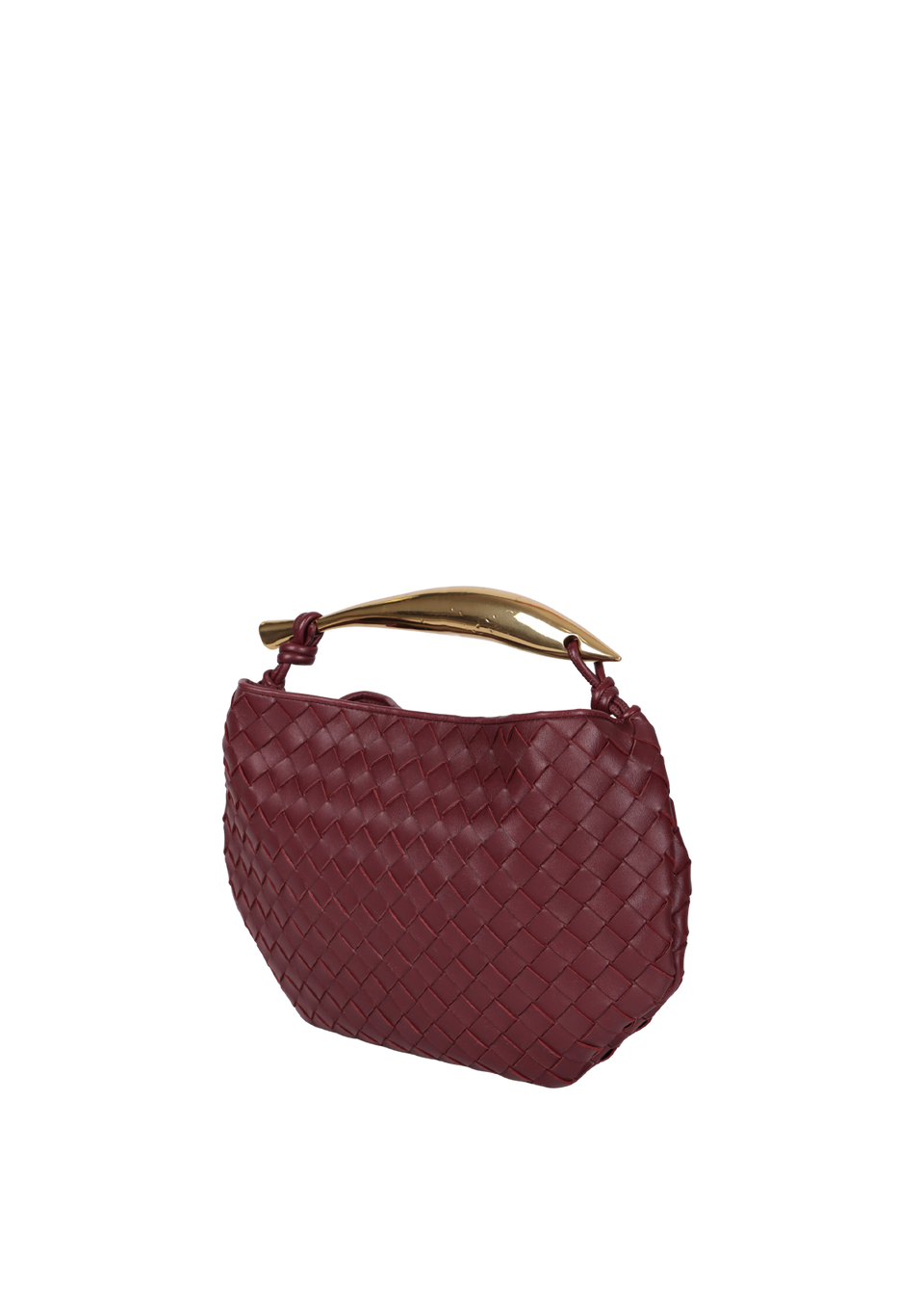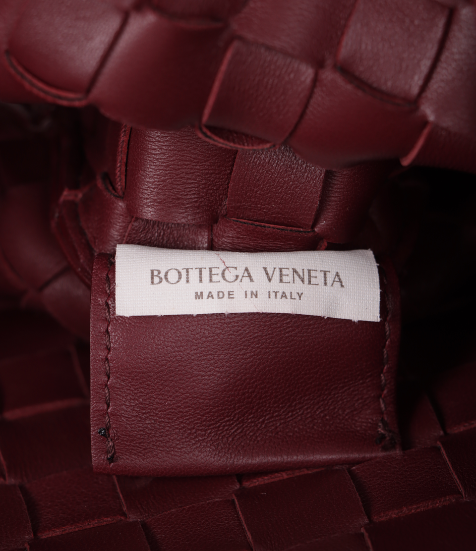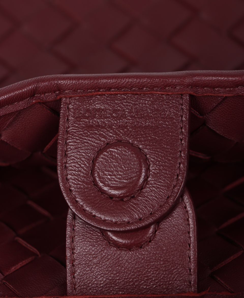 Descrição do Material: Couro lambskin bordô com acabamento Intrecciato