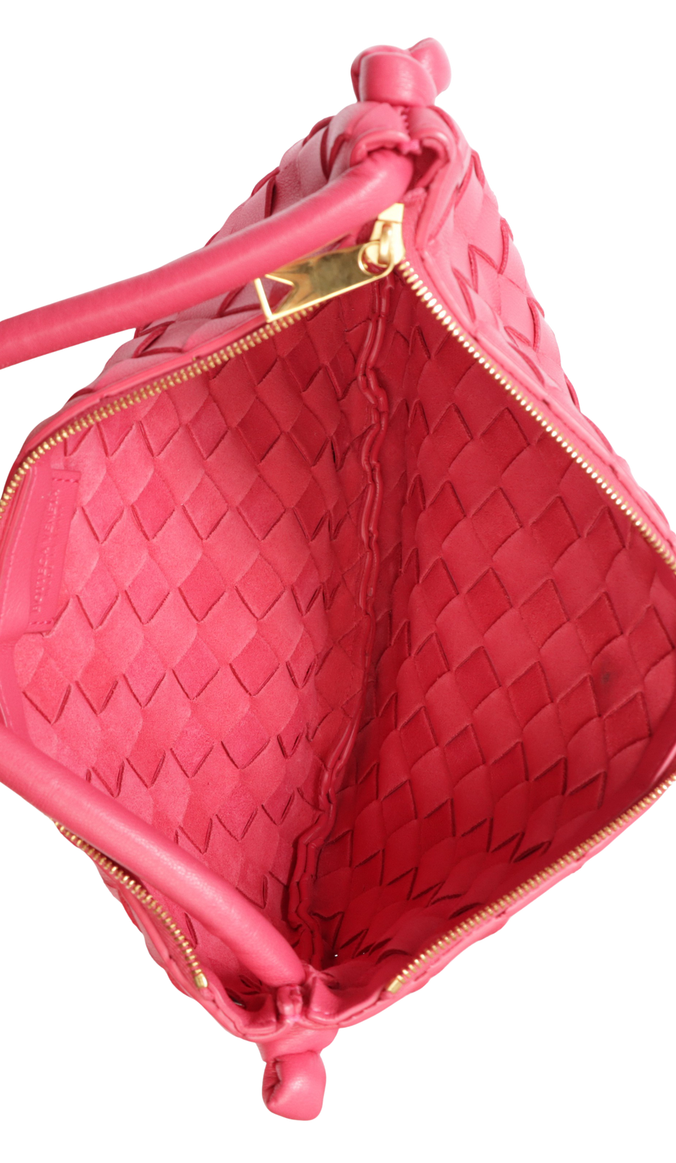 Descrição do Material: Couro lambskin rosa com acabamento Intrecciato
