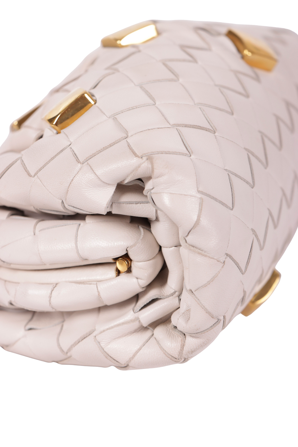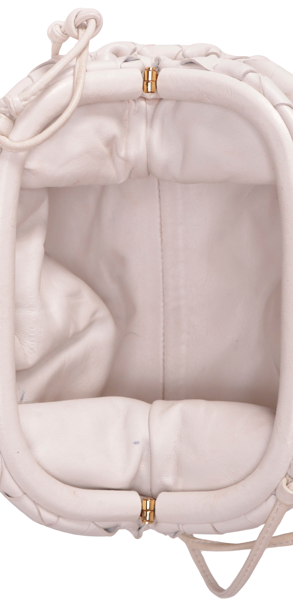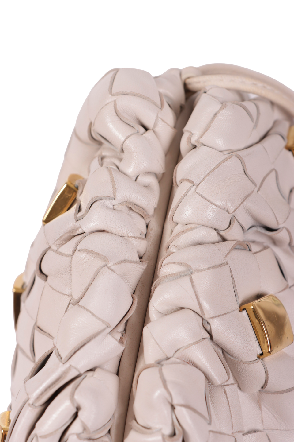 Descrição do Material: Couro calfskin branco com acabamento Intrecciato