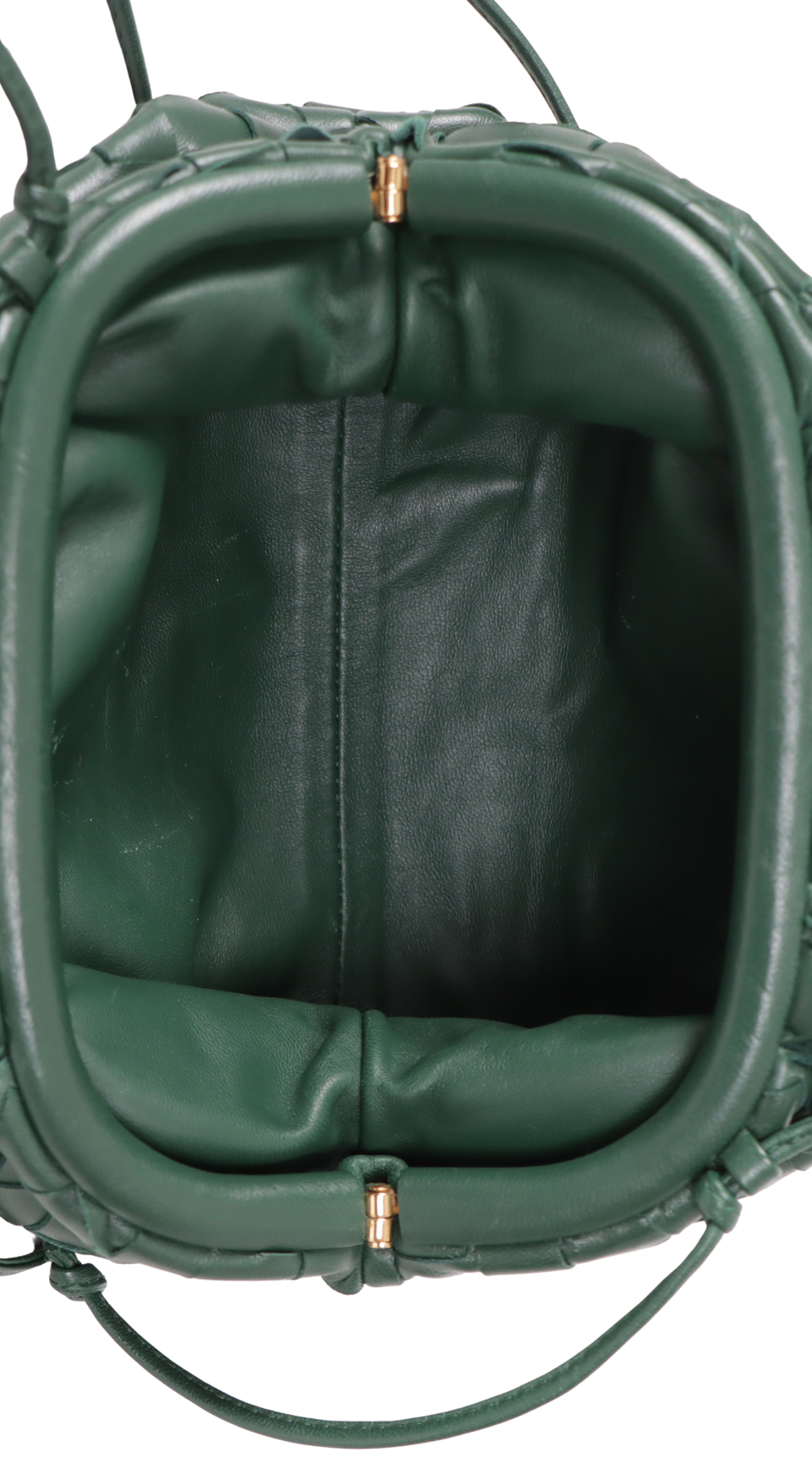 Descrição do Material: Couro lambskin verde com acabamento Intrecciato
