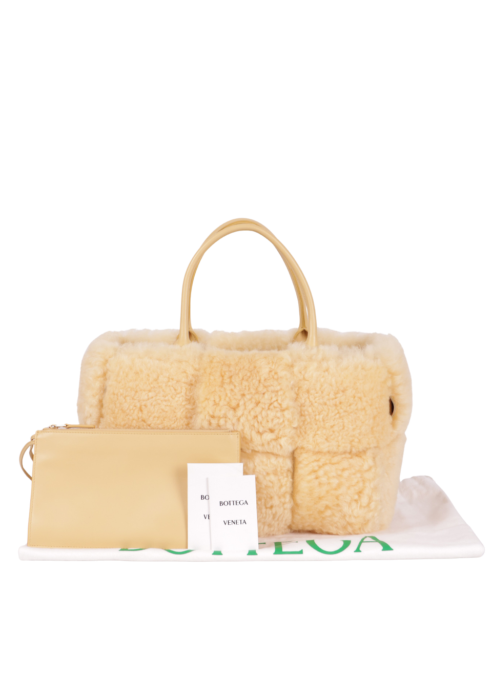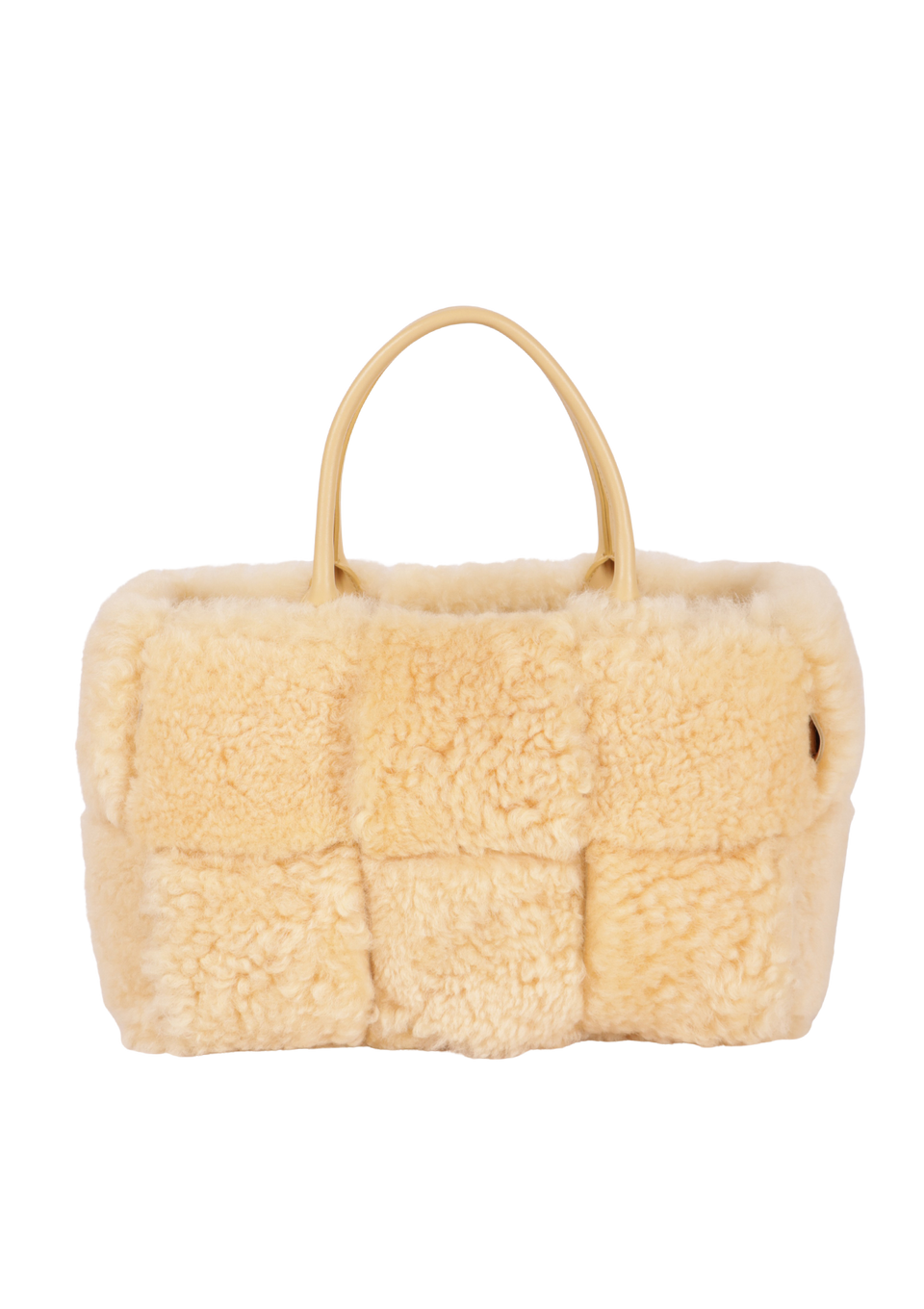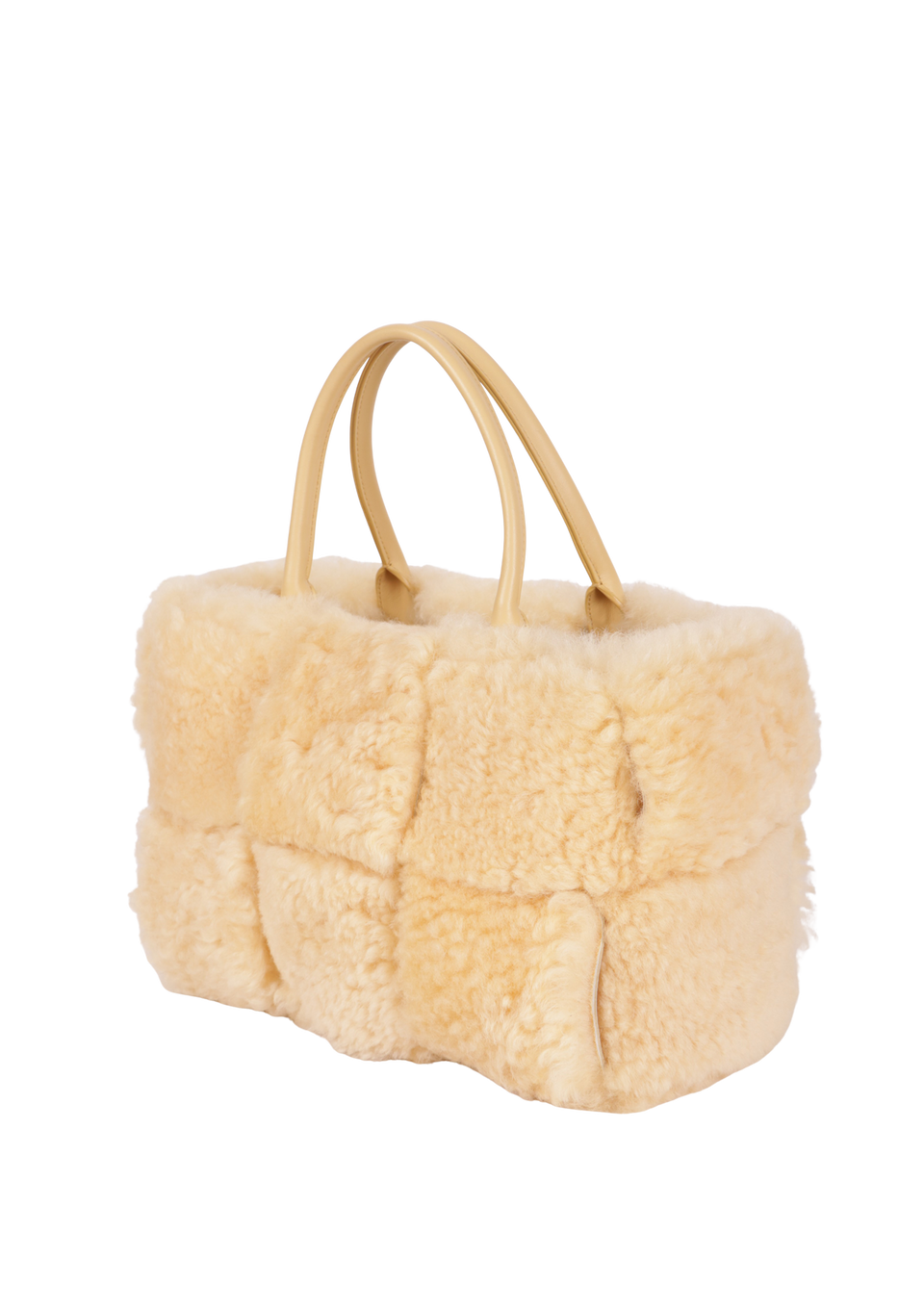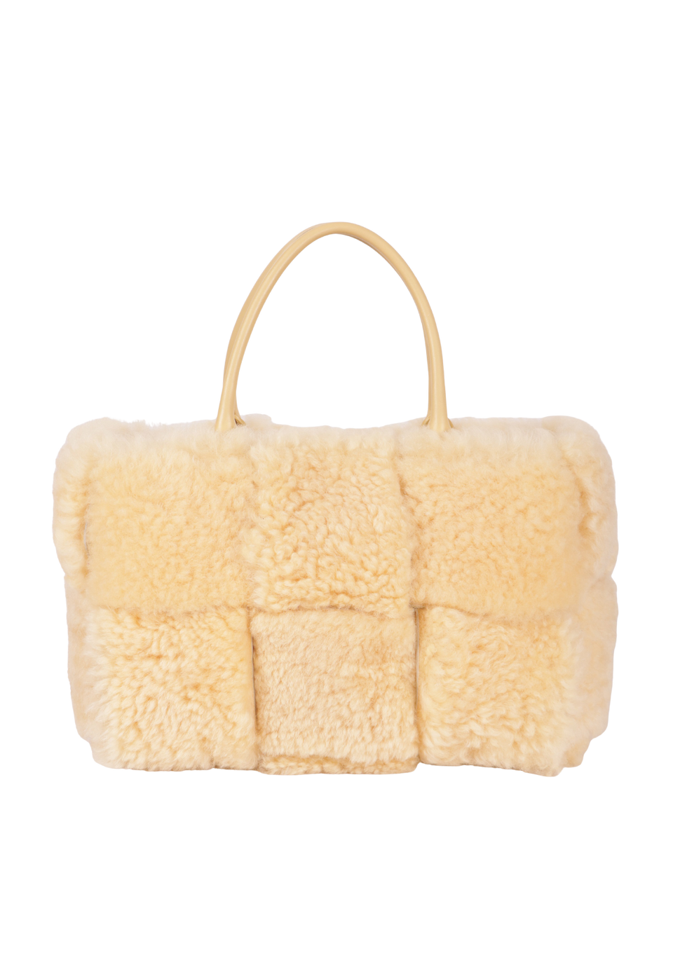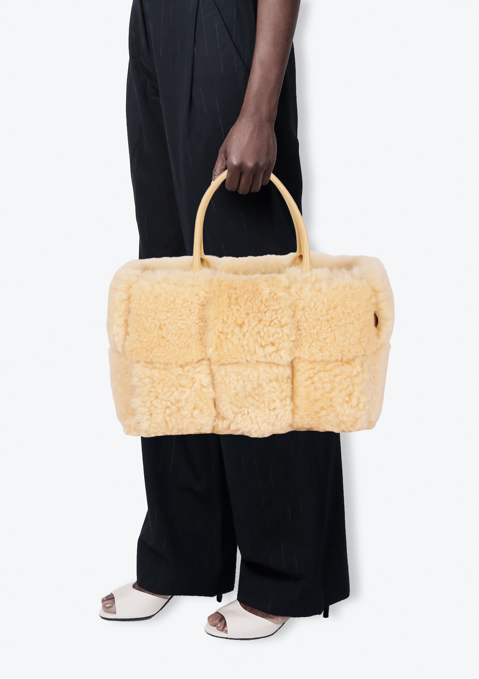 Descrição do Material: Couro calfskin amarelo revestido por pelos de bezerro com acabamento Intreccio