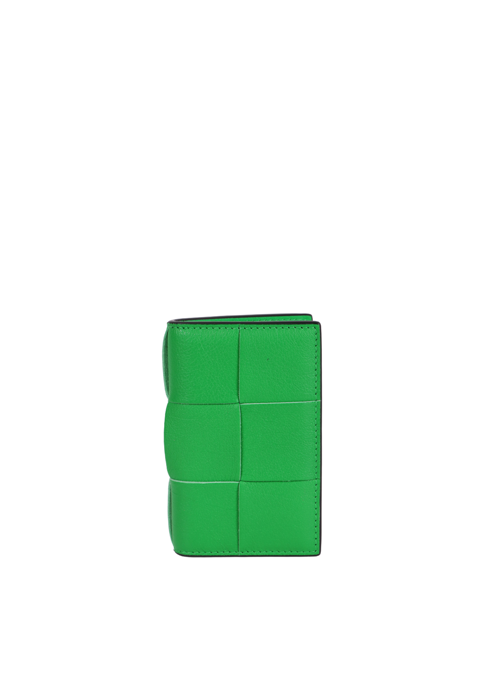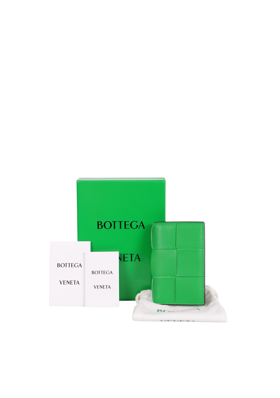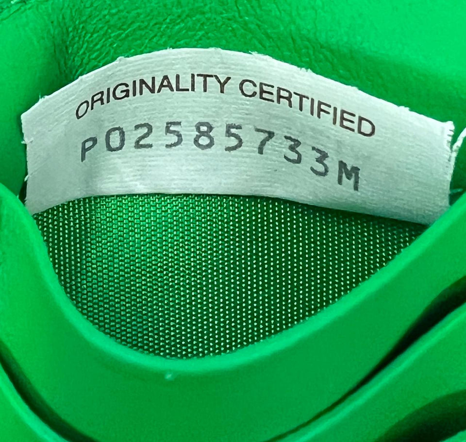 Descrição do Material: Couro calfskin verde com acabamento Intreccio