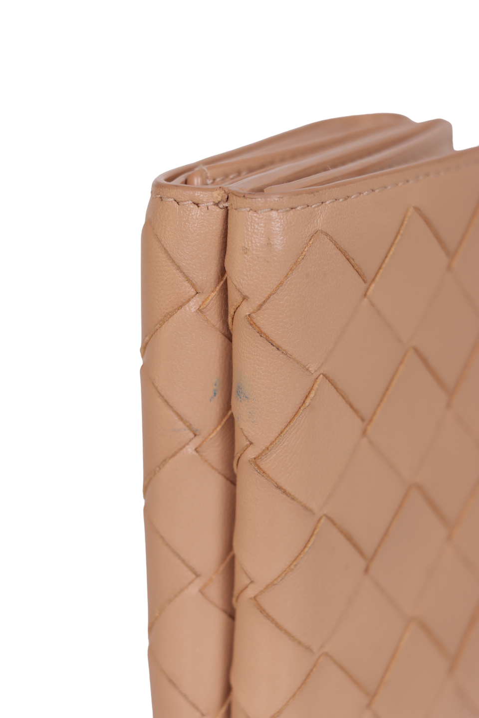 Descrição do Material: Couro calfskin bege com acabamento Intrecciato