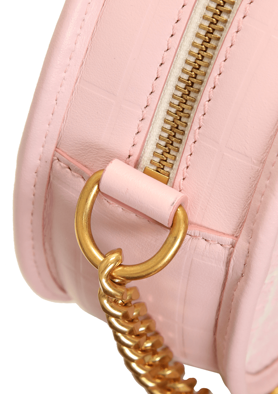 - Couro e jacquard rosa e branco;