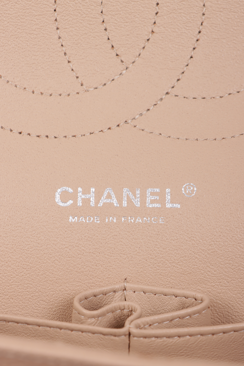Descrição do Material: Couro calfskin bege com acabamento matelassê e caviar