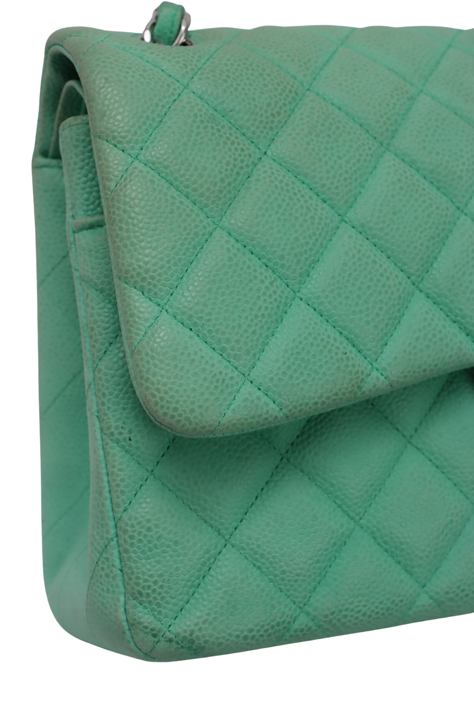 Descrição do Material: Couro calfskin verde com acabamento matelassê e caviar