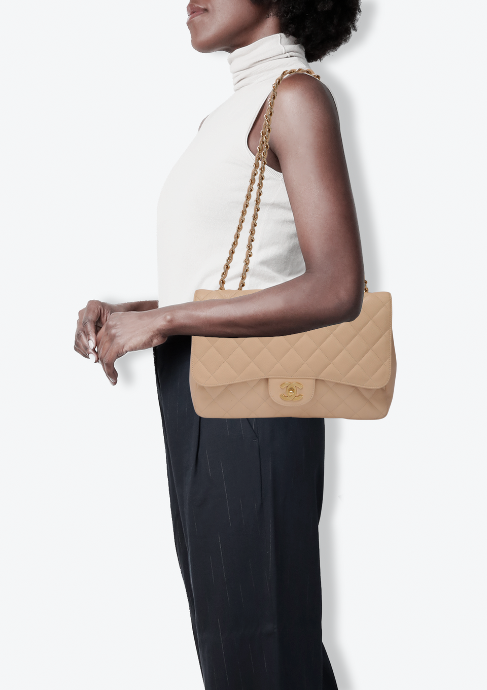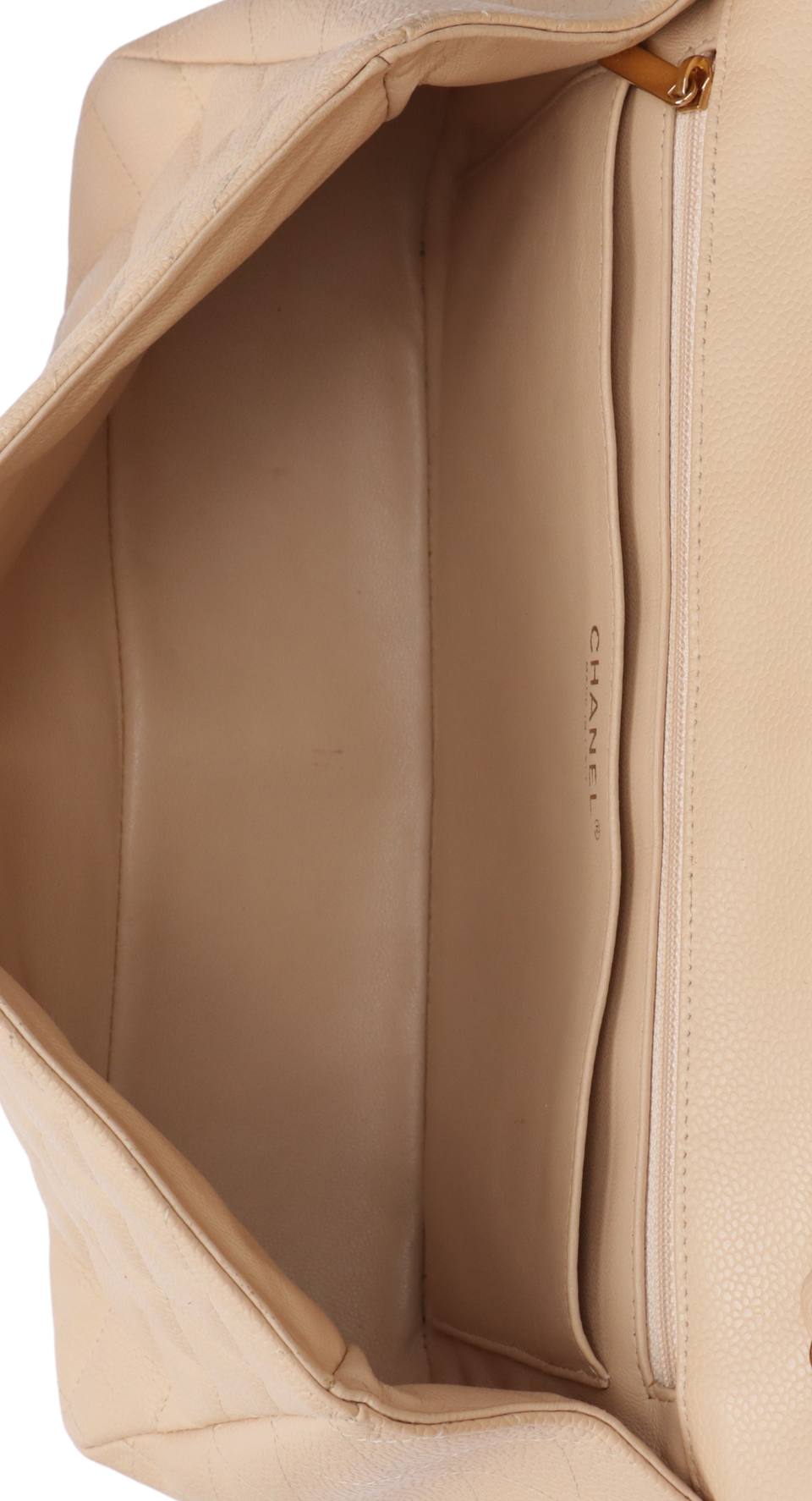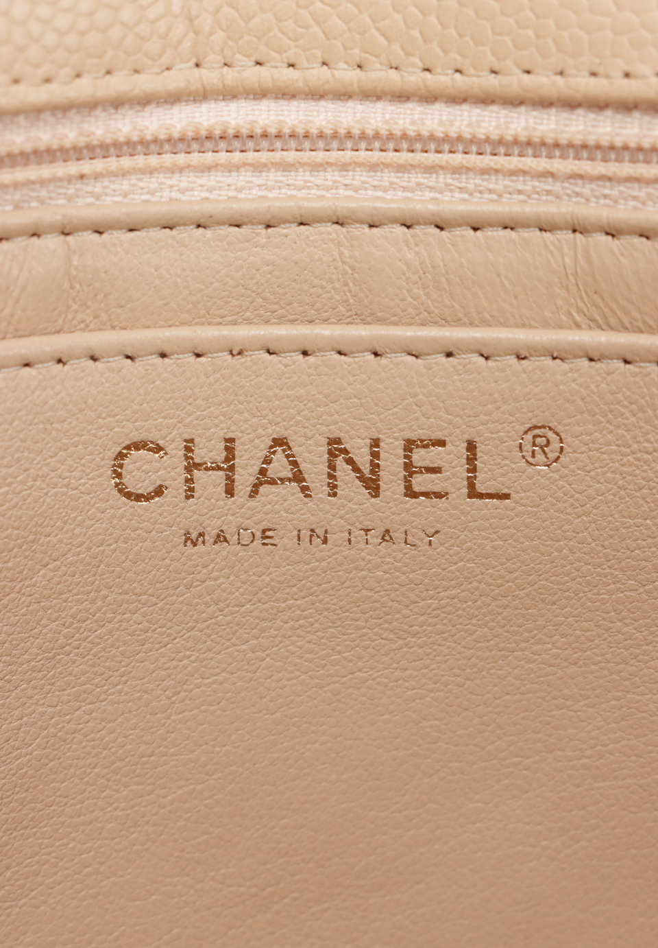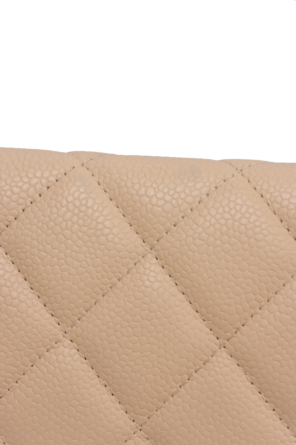 Descrição do Material: Couro calfskin bege com acabamento caviar e matelassê