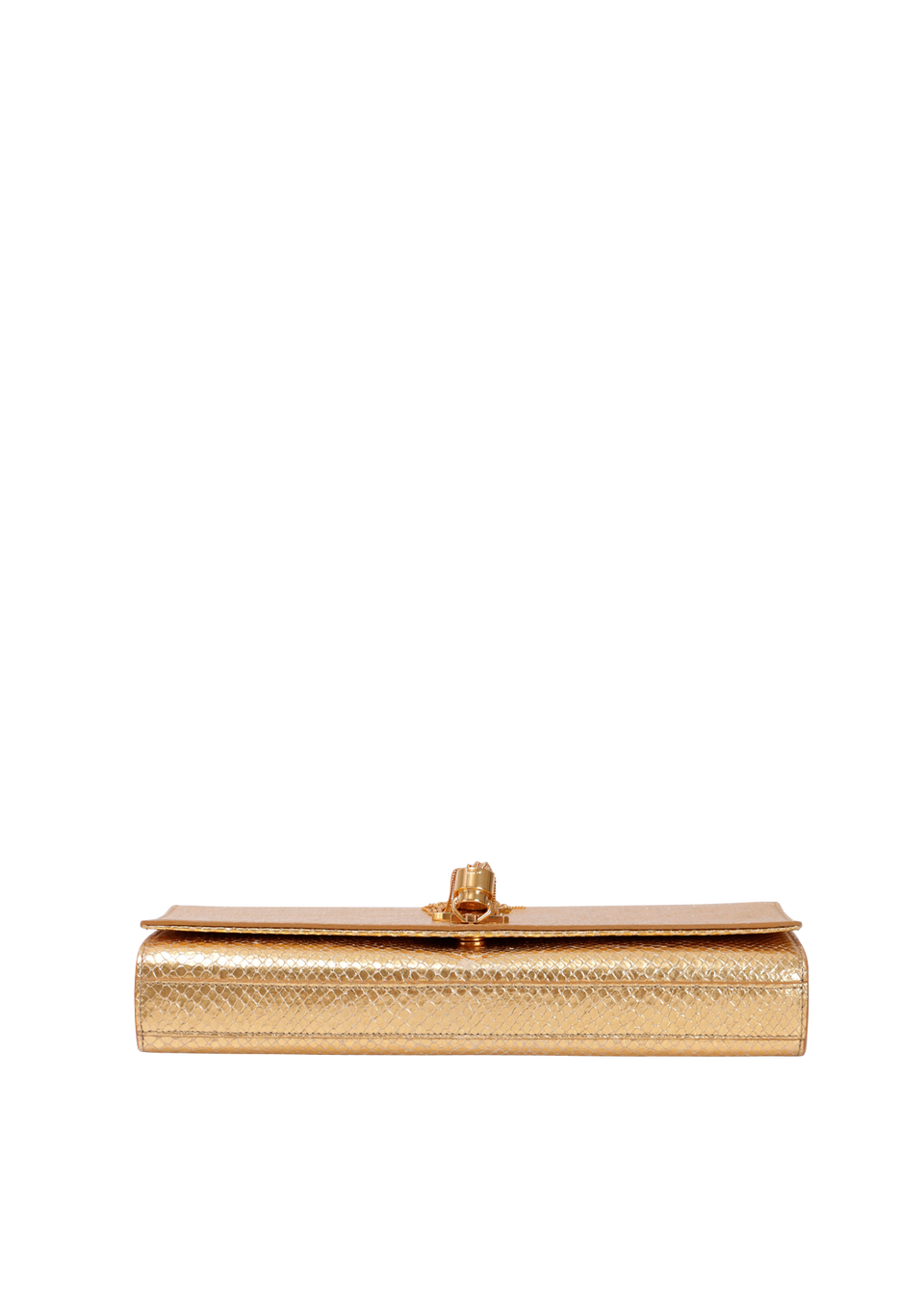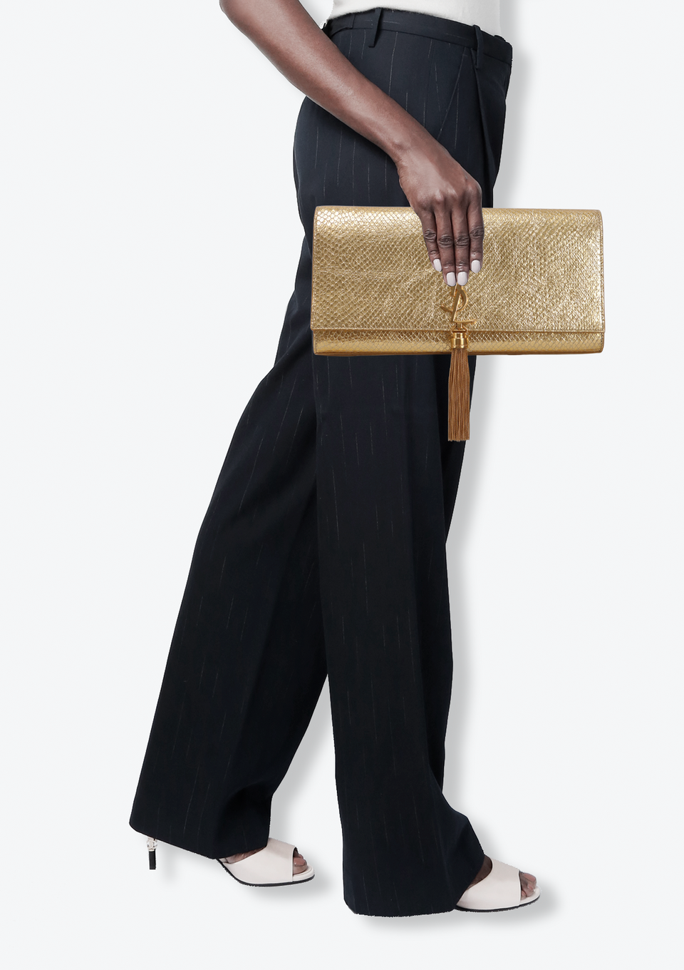 Descrição do Material: Couro calfskin bege com textura de pele de python