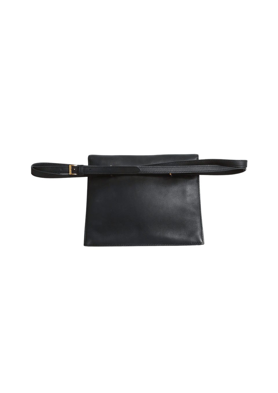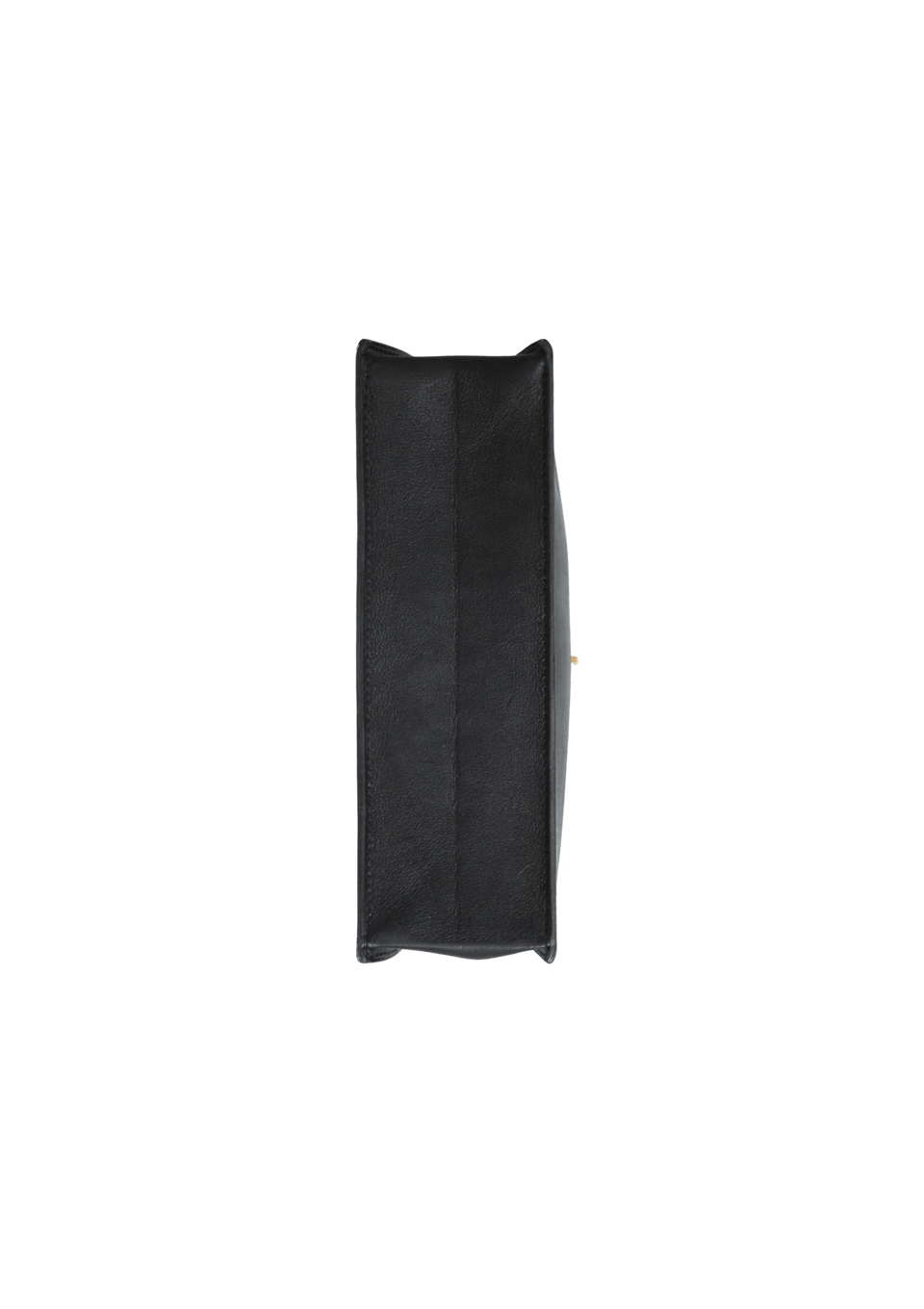Condição: Bom, com aparência de usado. Apresenta leves manchas esbranquiçadas pelo couro, principalmente na parte superior da aba no canto inferior frontal do lado esquerdo, base e parte interna, pequena deformação na estrutura da peça na parte inferior, principalmente atrás e na alça, desgastes nos acabamentos das extremidades, principalmente nos cantos da base, leves marcas de uso nas ferragens e couro levemente ressecado.