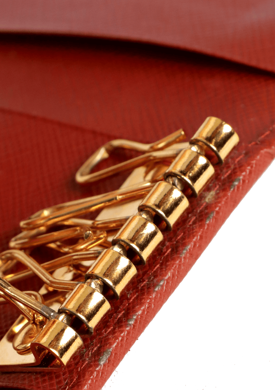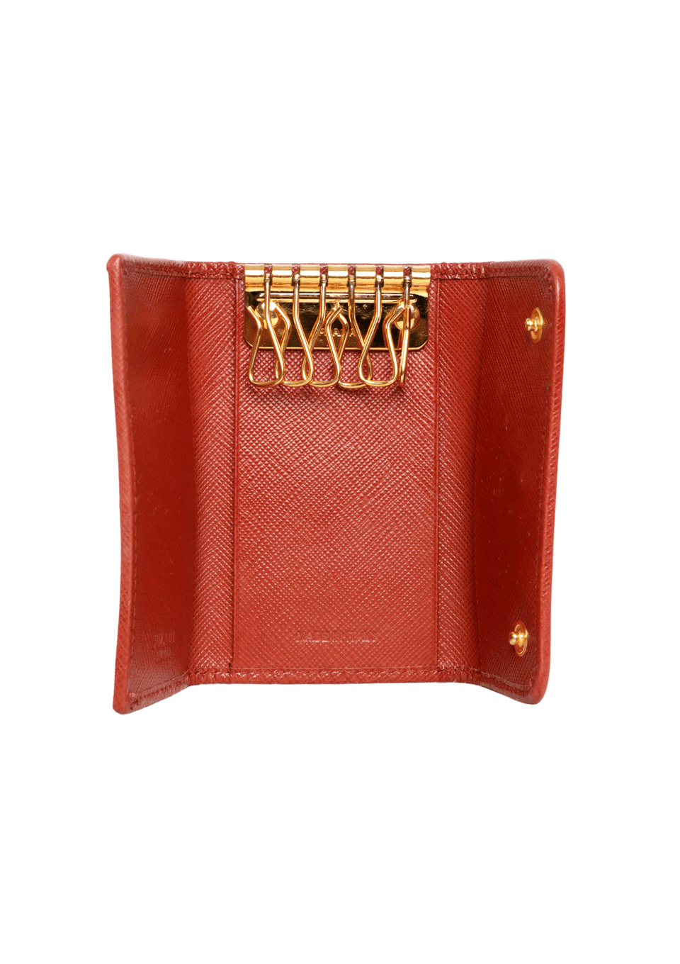 - Compartimento único com dois bolsos internos abertos e seis ganchos para chaves;