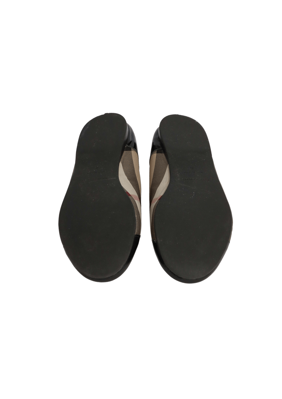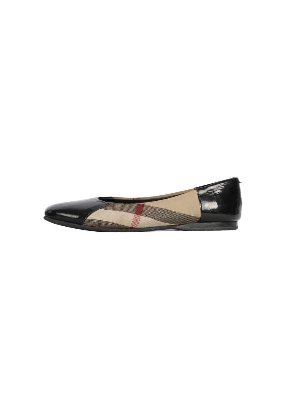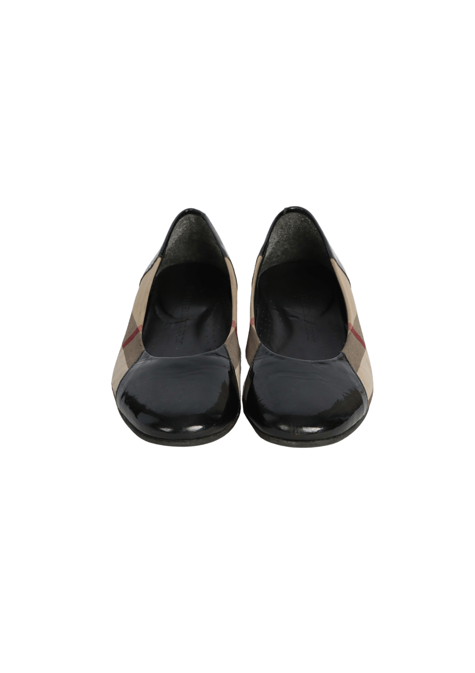 - Couro envernizado preto e canvas Nova Check bege, preto, vermelho e branco.