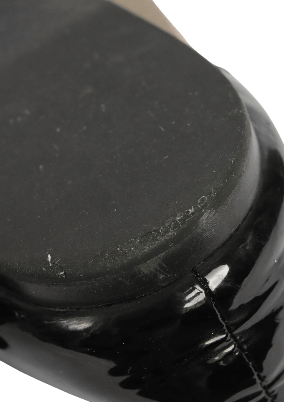 Condição: Produto bom, com aparência de usado. Apresenta desgastes e sinais de uso nas solas, riscos, manchas e fissuras (dobras) no couro envernizado, manchas no canvas, pequenas marcas de uso e descolamentos nas palmilhas e marcas de uso no couro da parte interna.