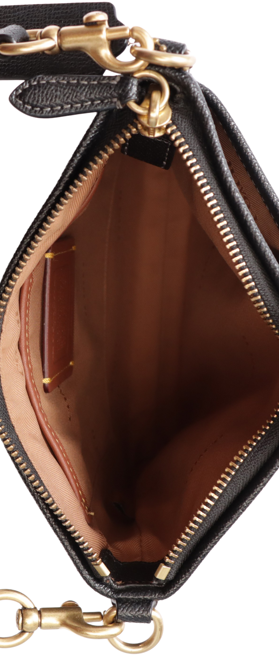 Bom, com aparência de usado. Apresenta leves deformidades pela estrutura, principalmente na parte inferior do lado direito frontal, pequenas manchas esbranquiçadas e desgastes pelo couro na parte superior frontal e cantos da base, leves descolorações e marcas de uso nas ferragens e levíssimas manchas esbranquiçadas pelo forro.