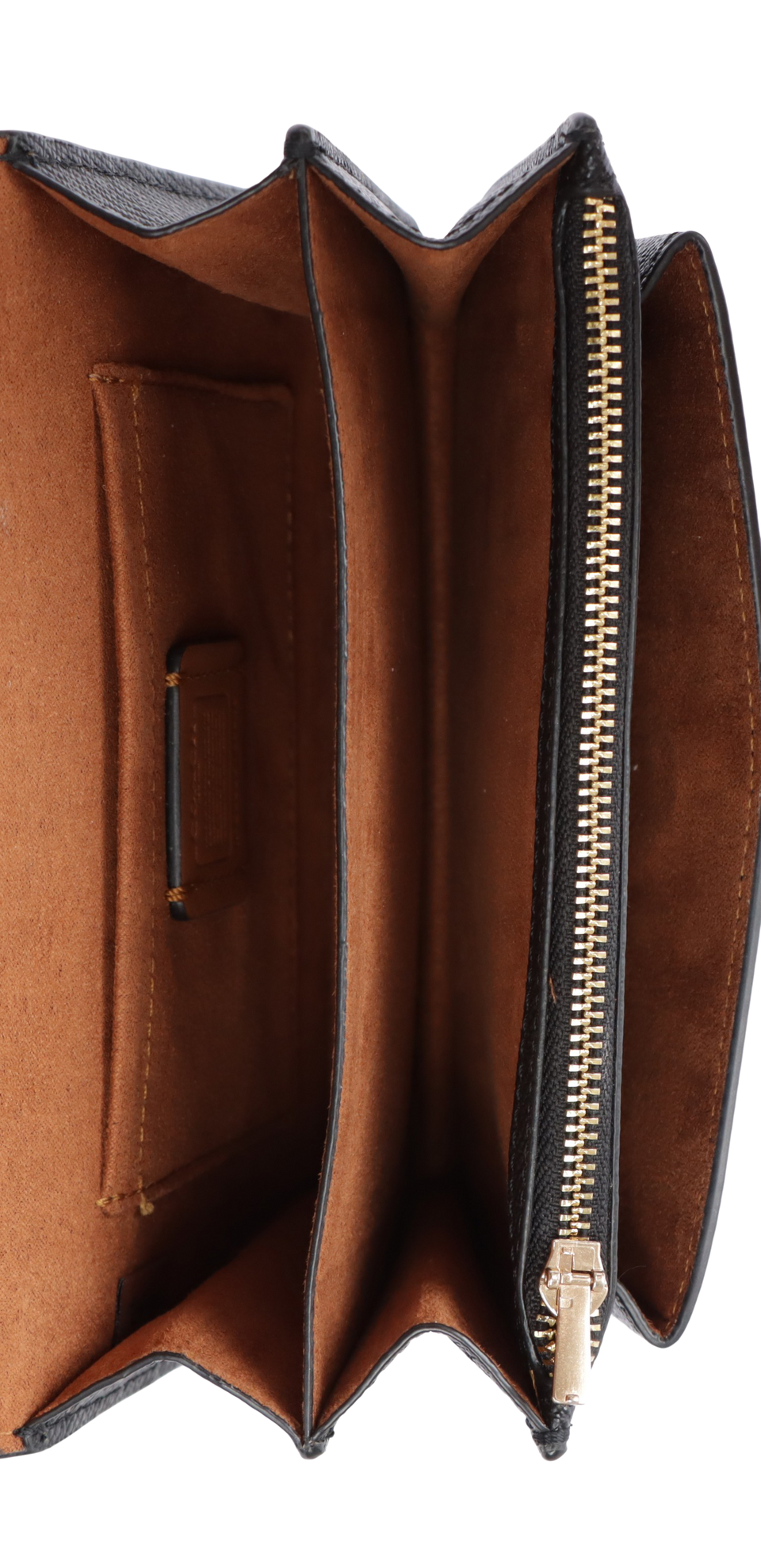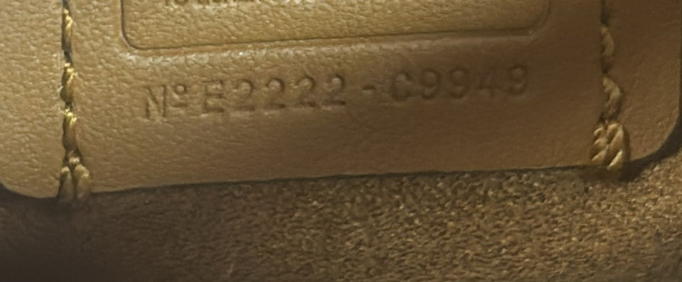 Bom, com aparência de usado. Apresenta leves marcas de uso e descolorações nas ferragens, especialmente na logomarca frontal e nos detalhes superiores, pequenas manchas esbranquiçadas nas selagens da base na parte frontal, leve deformidade pela estrutura da tira de couro da alça e pequenas manchas de uso pelo forro.