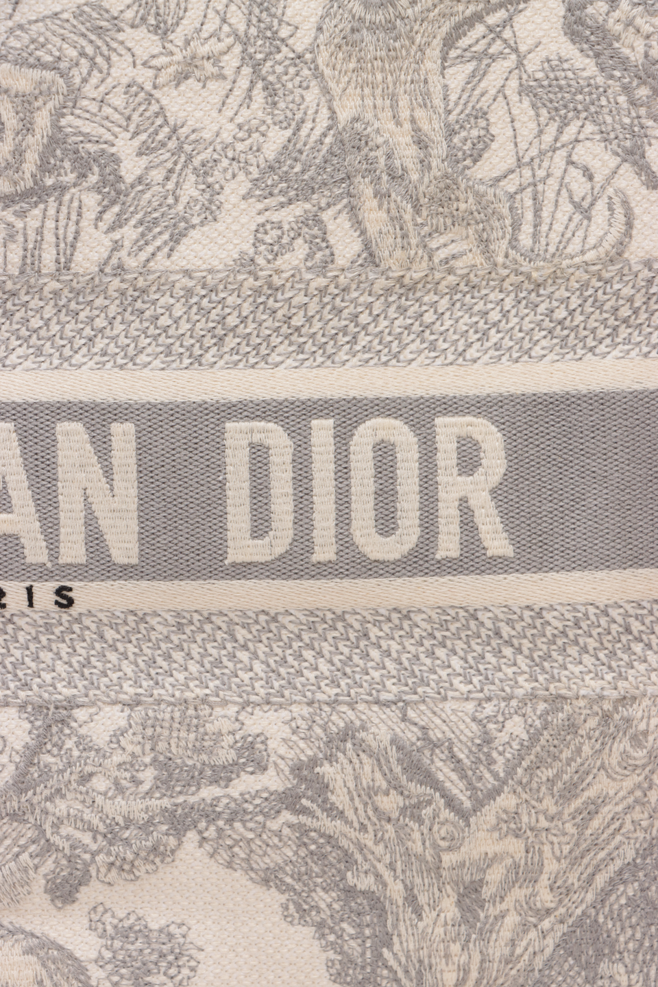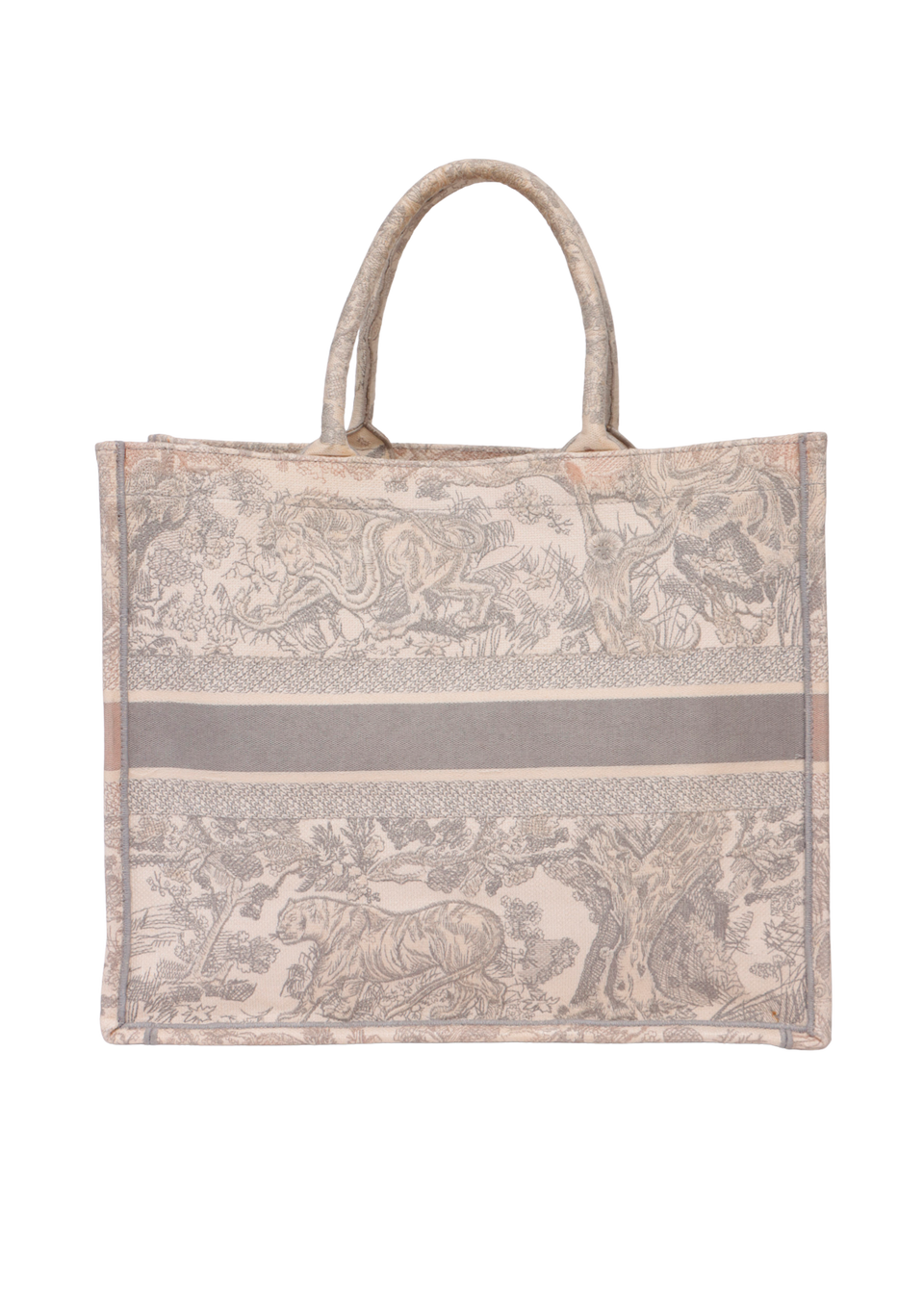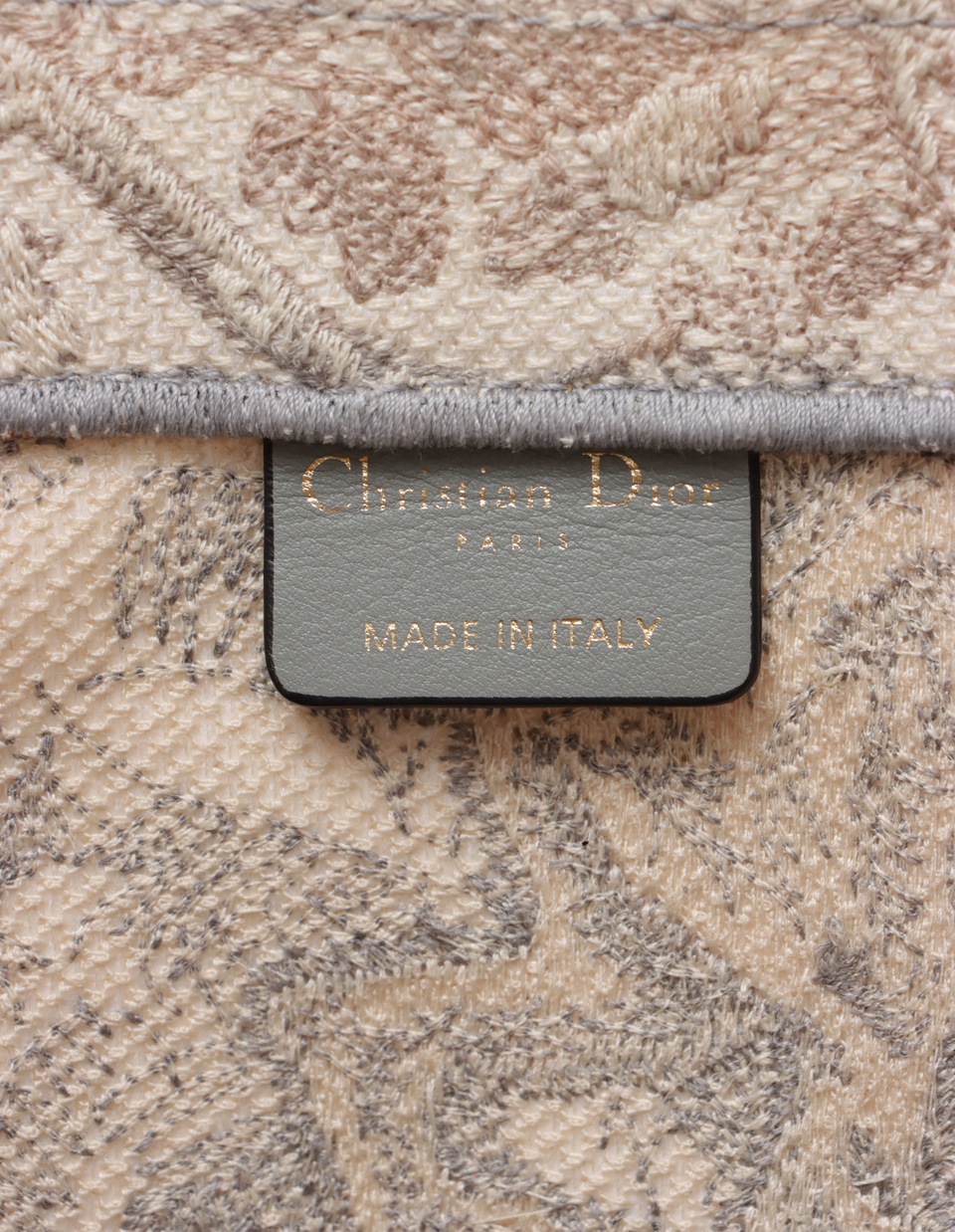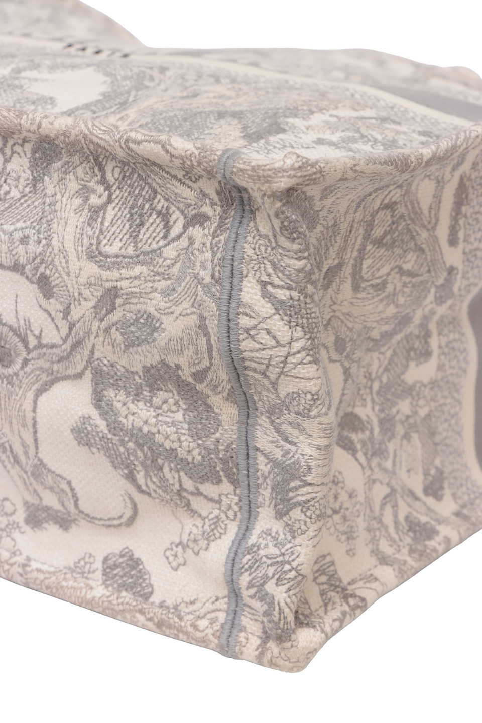 Descrição do Material: Canvas Toile De Jouy bege e cinza com detalhes em couro calfskin cinza
