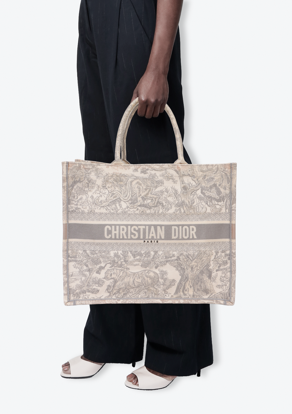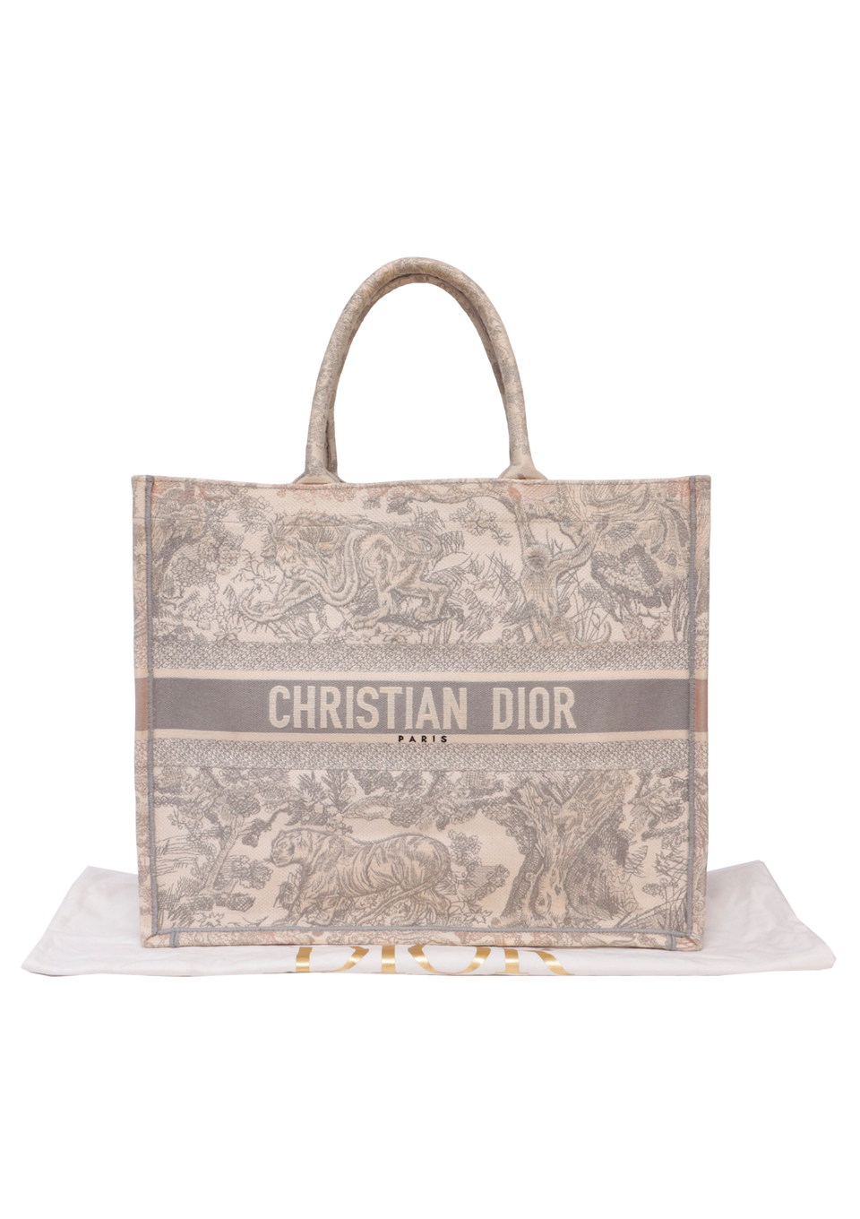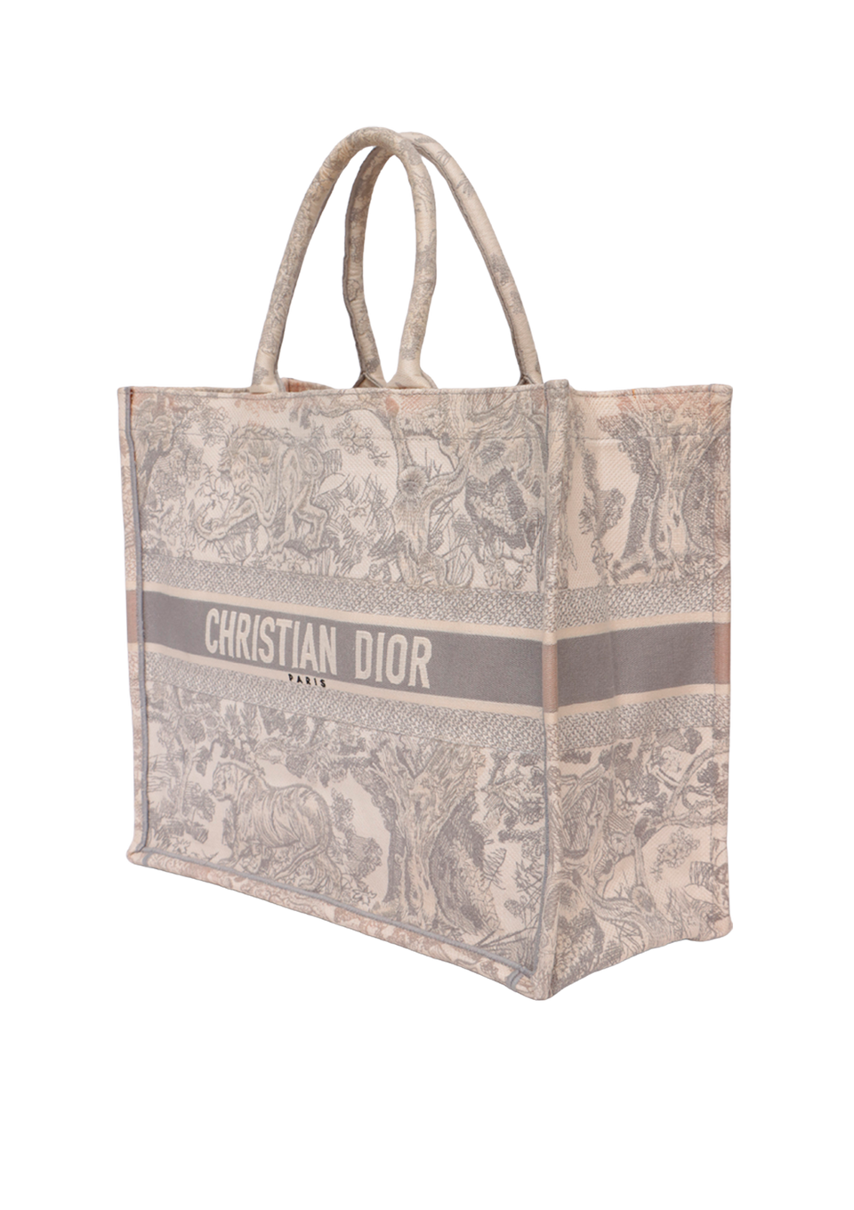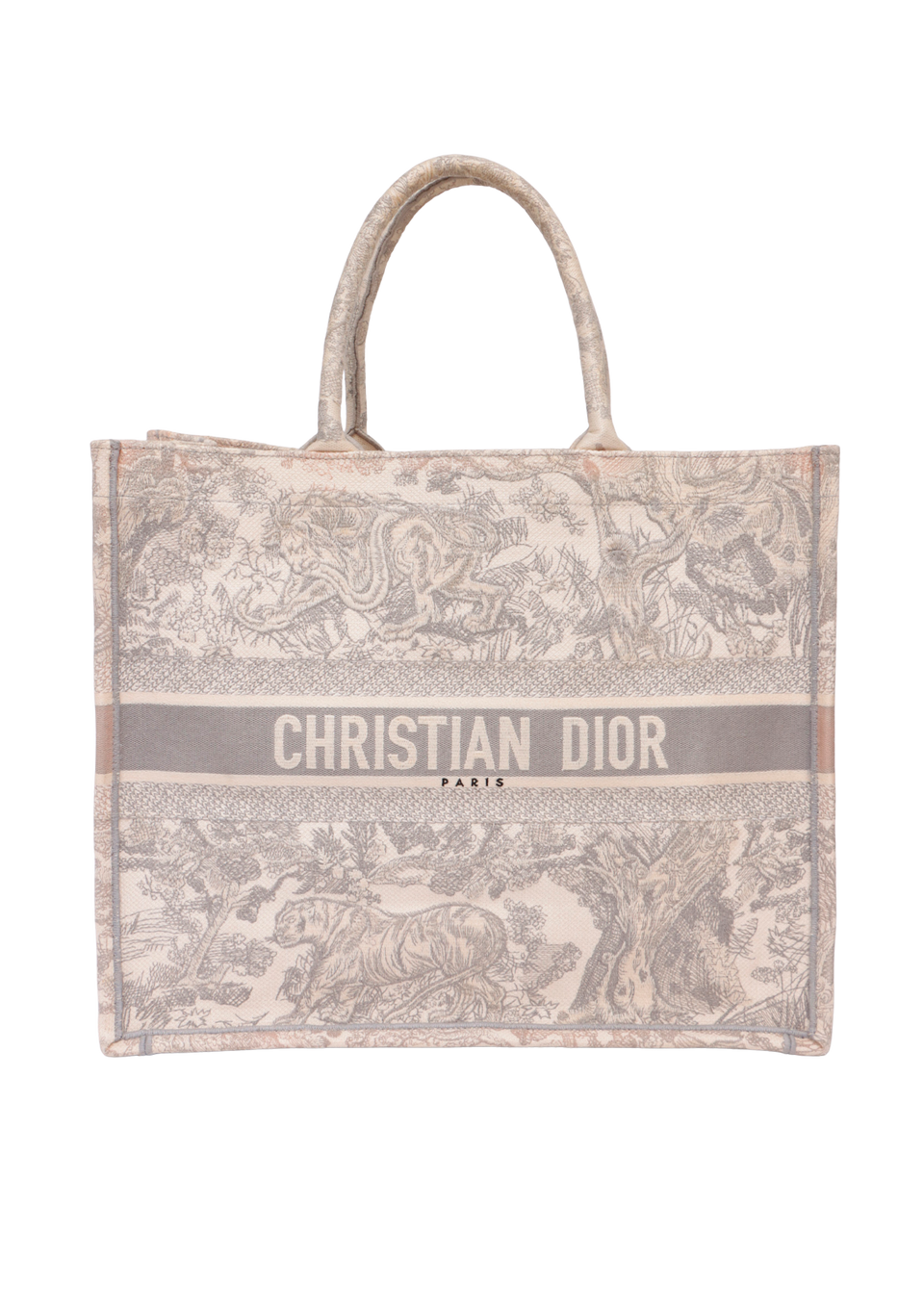 Descrição do Material: Canvas Toile De Jouy bege e cinza com detalhes em couro calfskin cinza